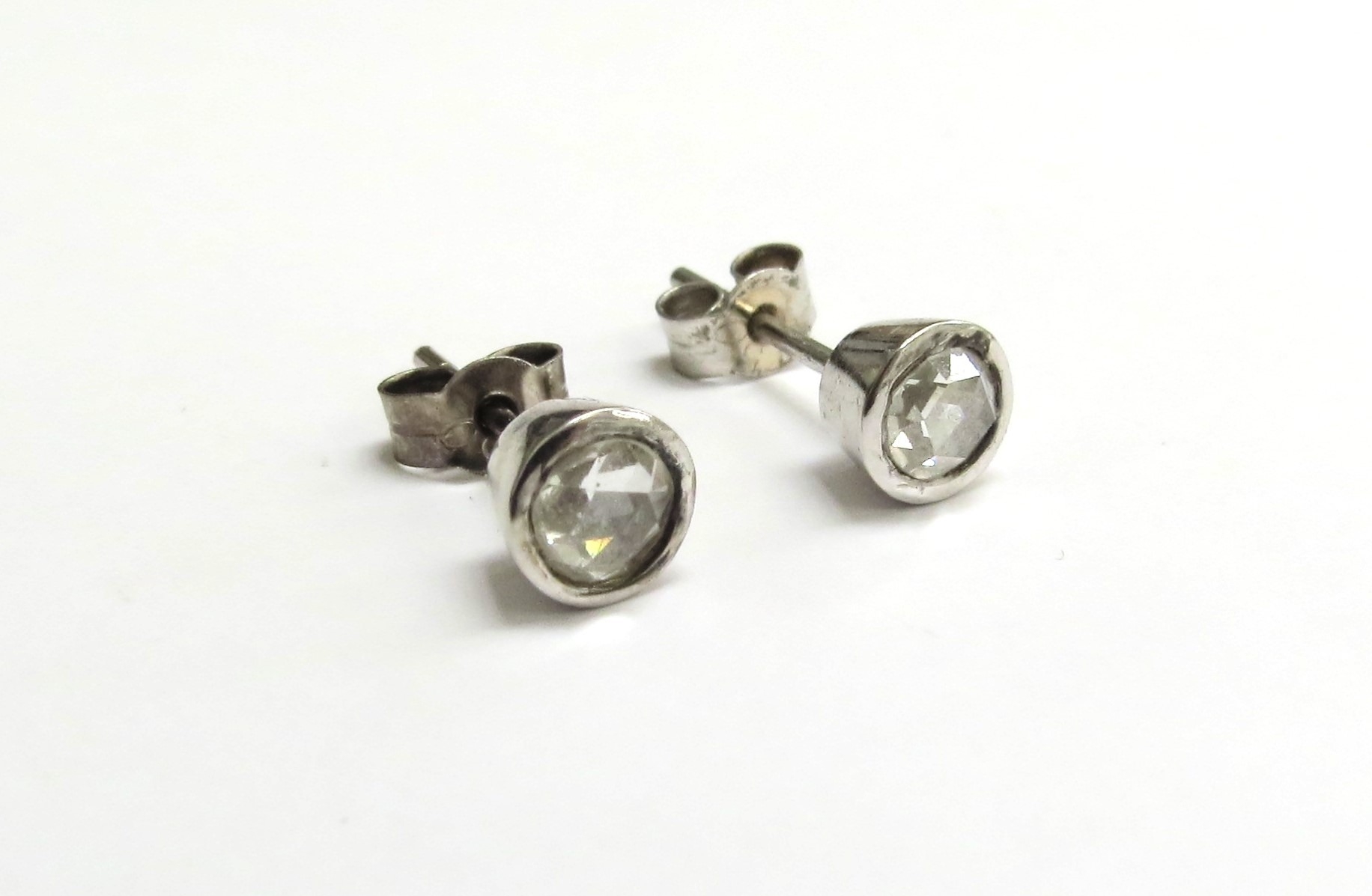 A pair of 18ct white gold rose cut diamond stud earrings, 0.30ct approx each diamond