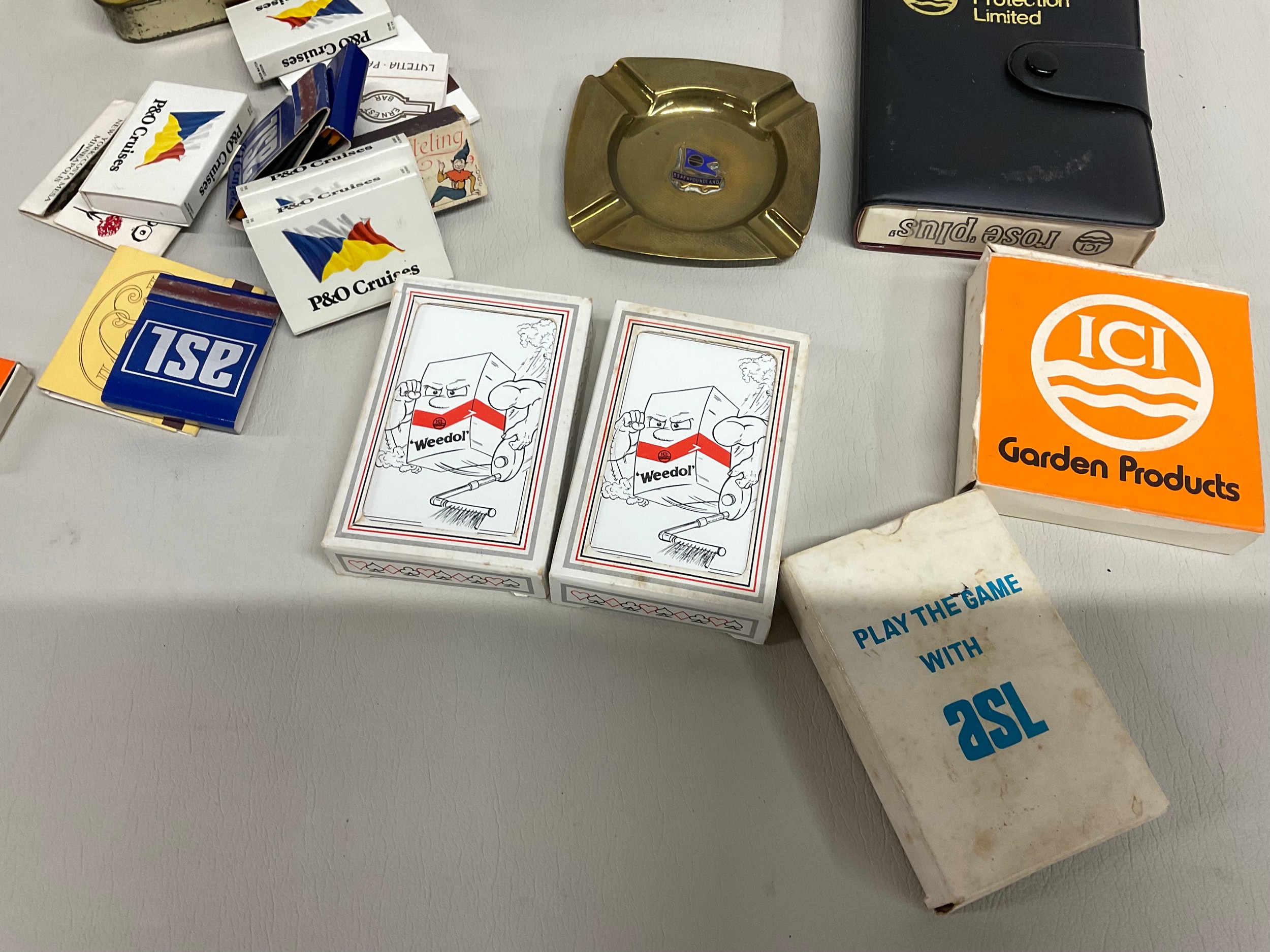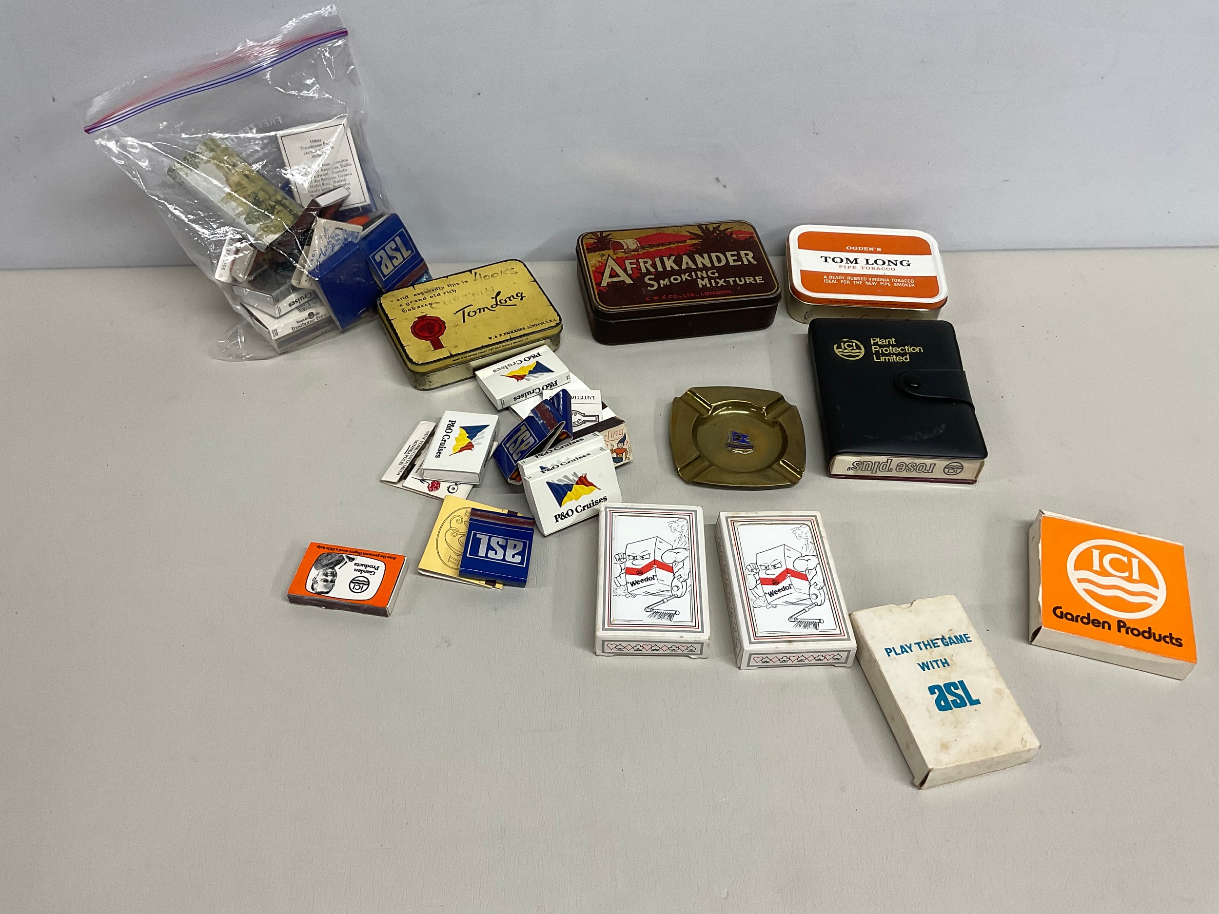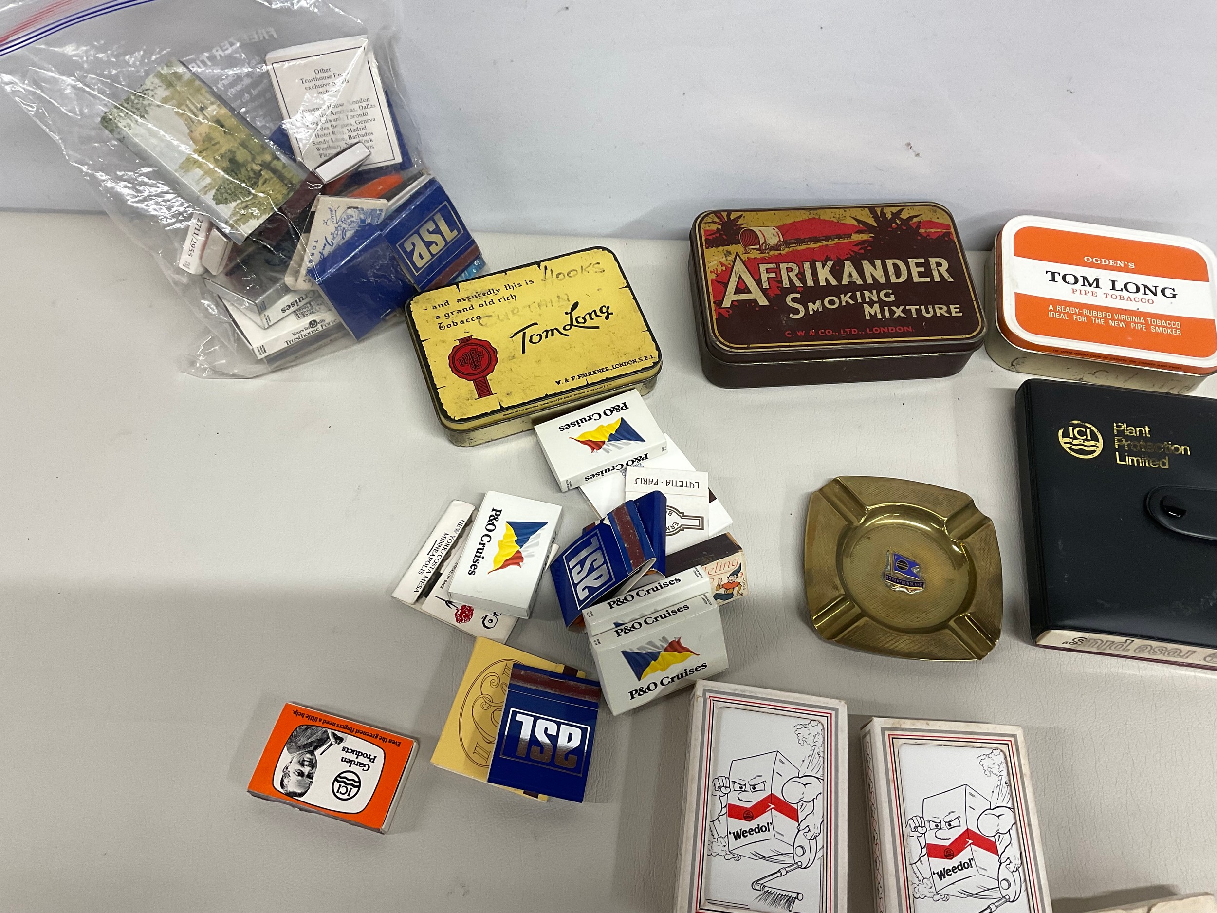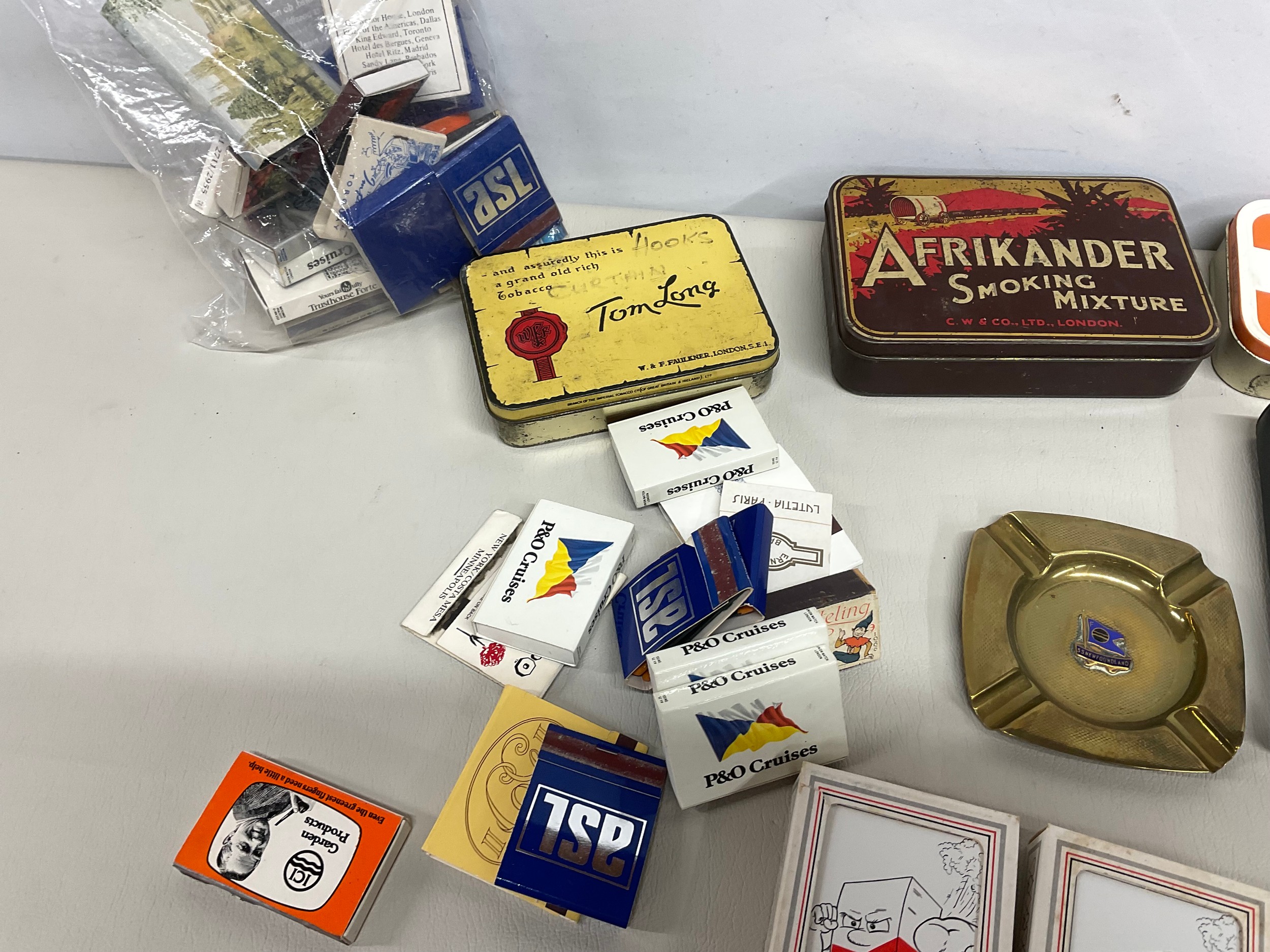 COLLECTION OF VINTAGE MATCH BOXES PLAYING CARDS AND TOBACCO TINS