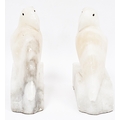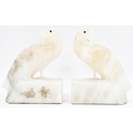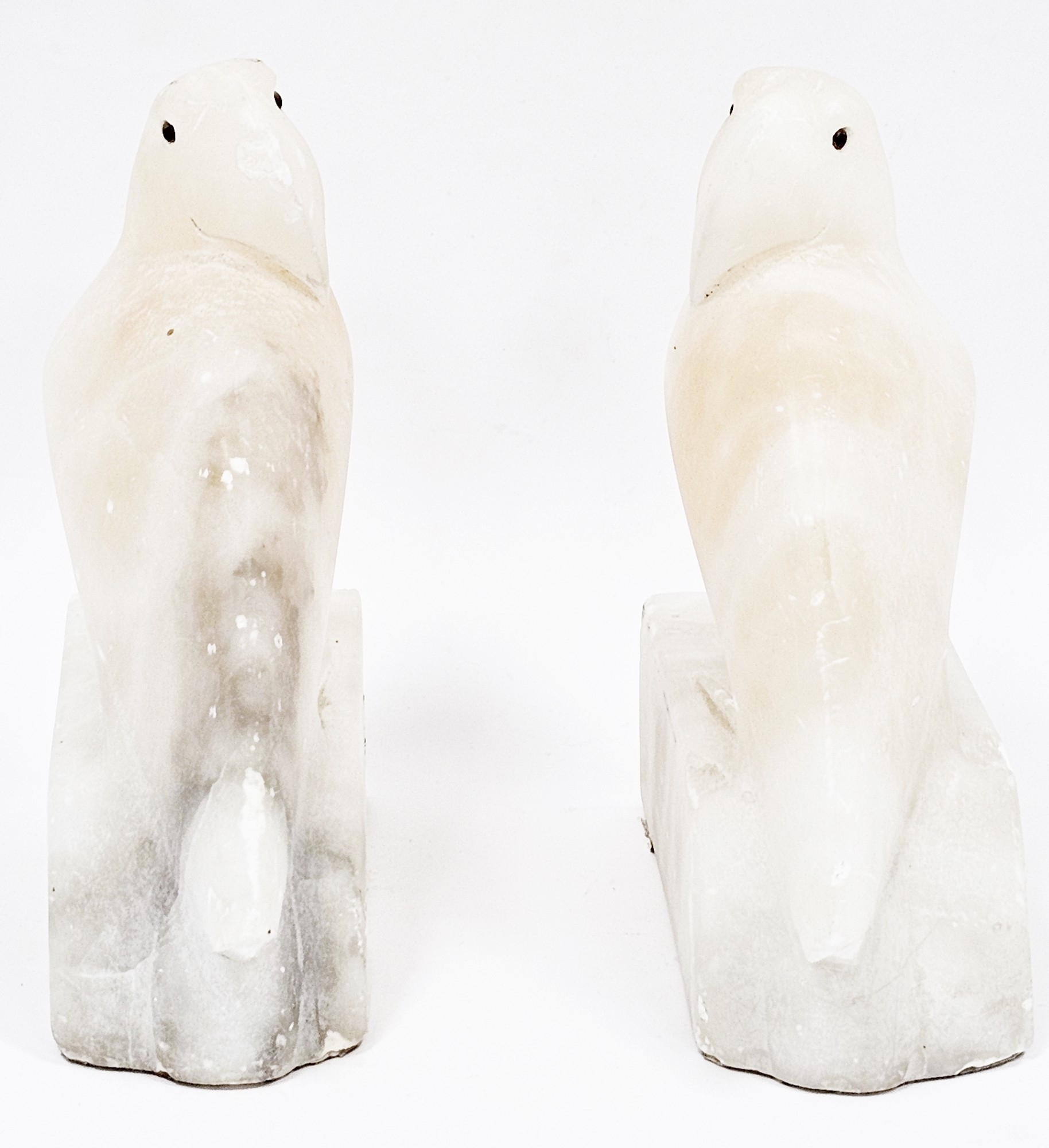 Pair of Art Deco pink tinted alabaster bookends in the form of parakeets, 15cm high