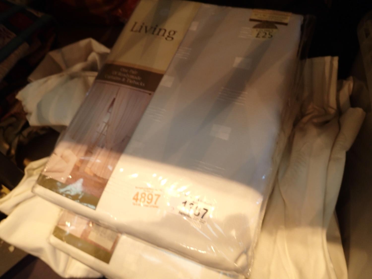 Three pair of curtains two wrapped 90 x 90 and another pair 70 inch drop. Not available for in-house P&P, contact Paul O'Hea at Mailboxes on 01925 659133