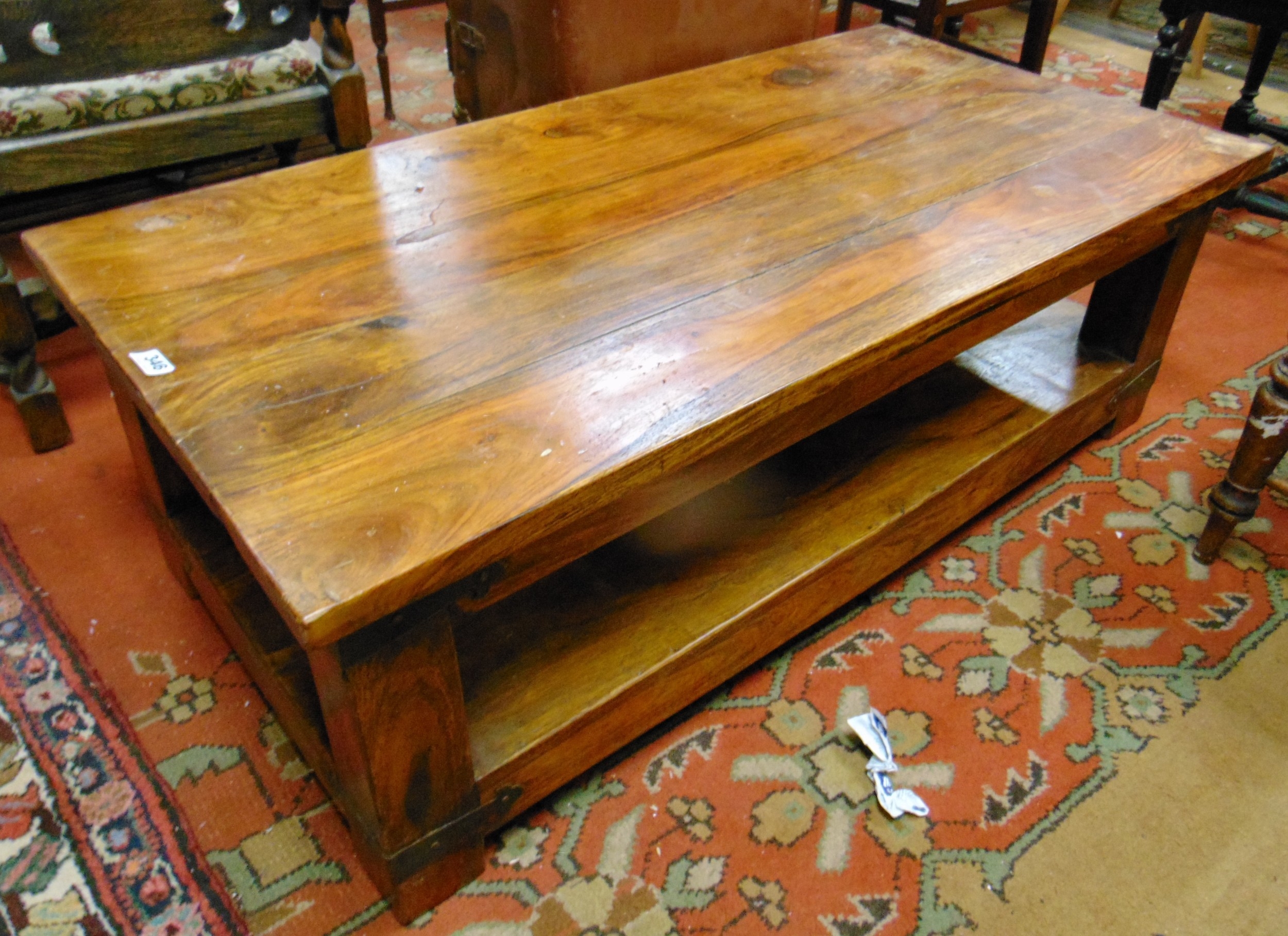 Mango wood coffee table, of stout construction, 16 x 47 x 24" deep.