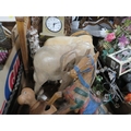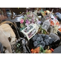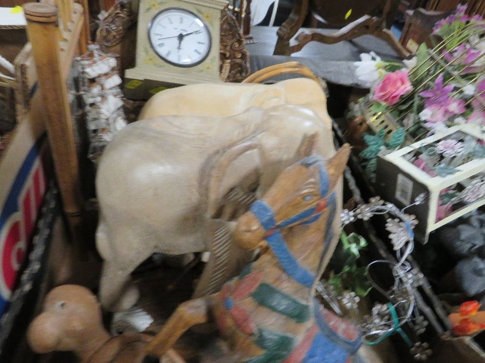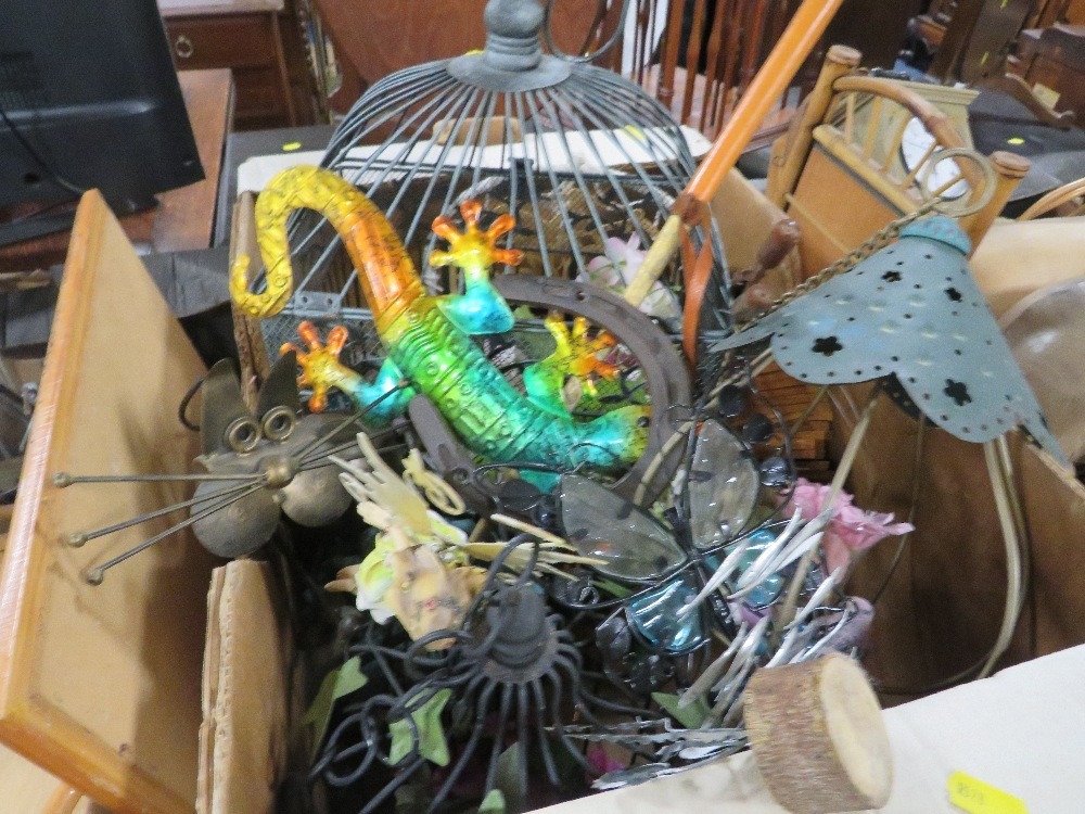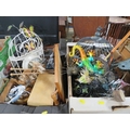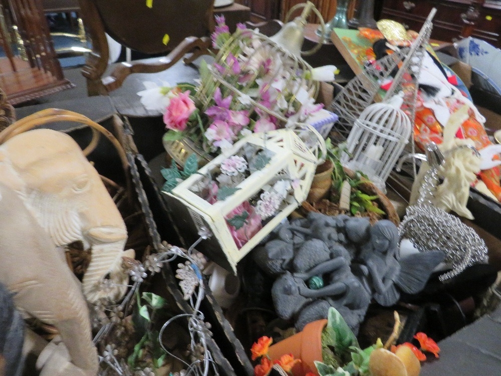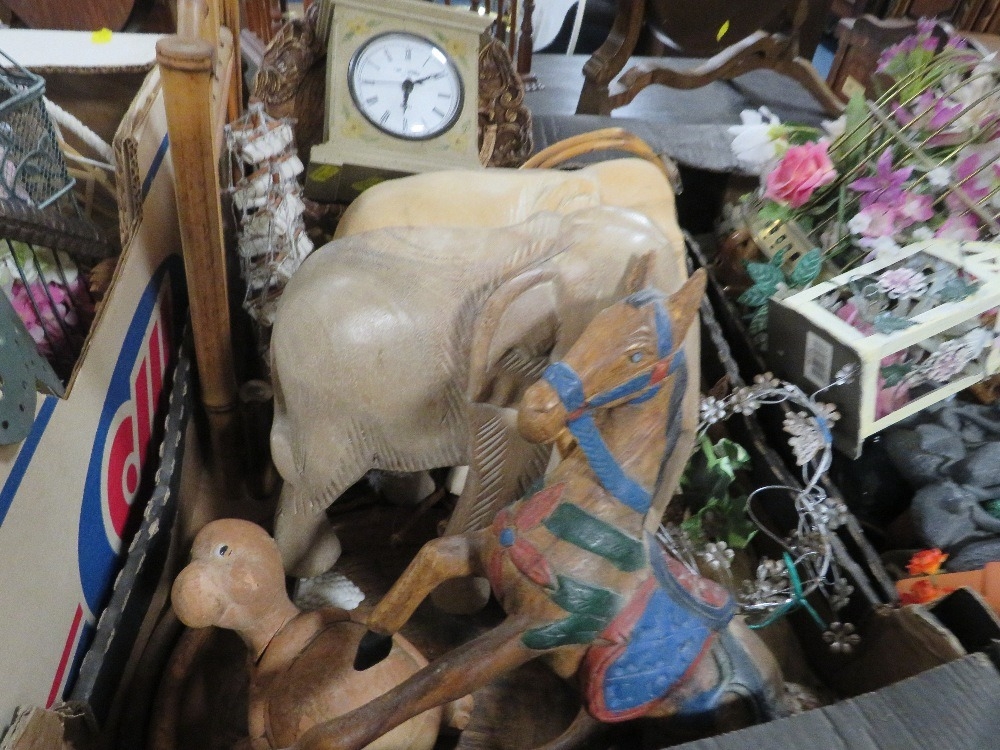 Four trays of assorted households decorative items to include clocks etc