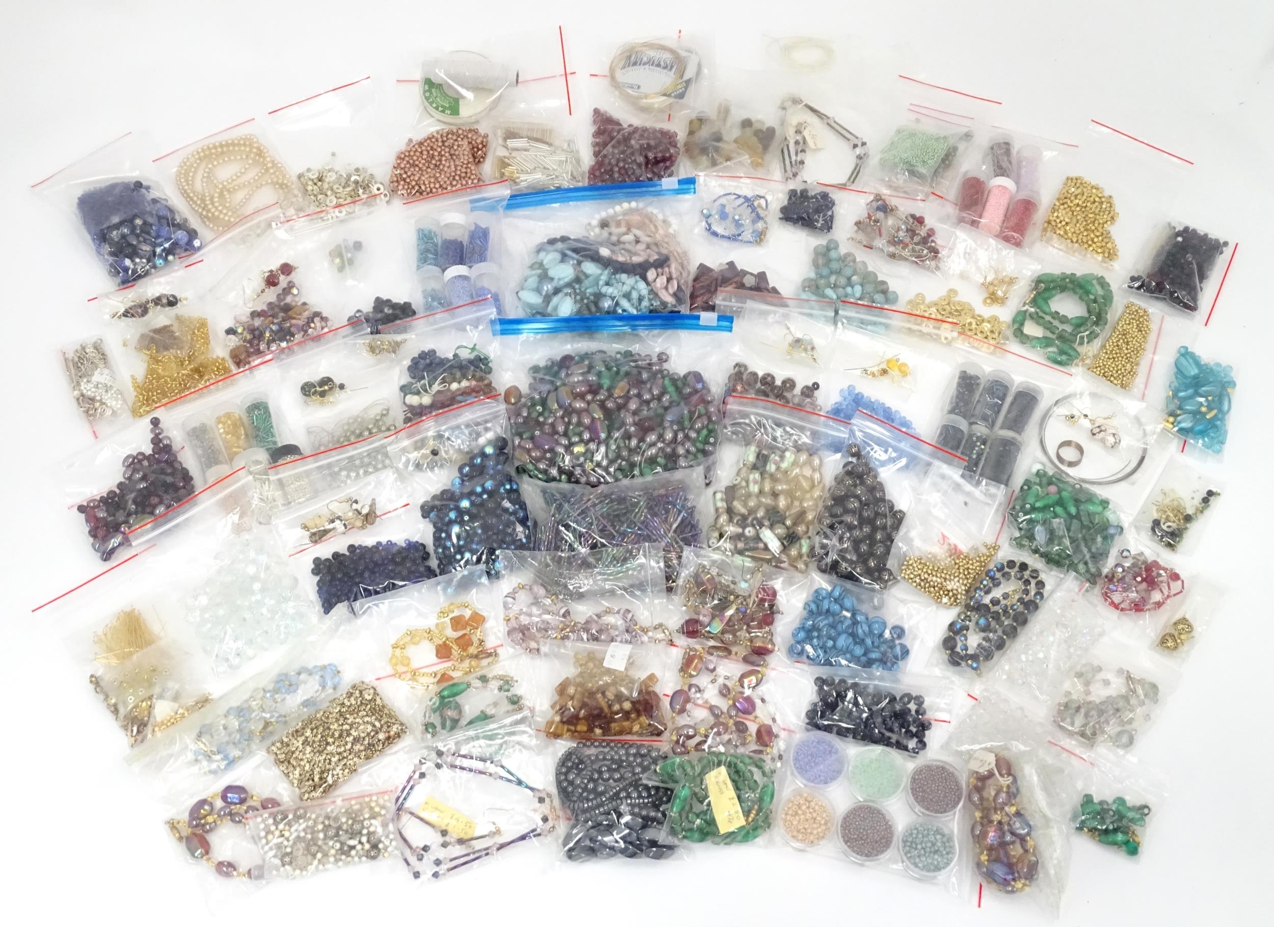 A quantity of jewellery making accessories to include various fastenings / fittings together with assorted beads.