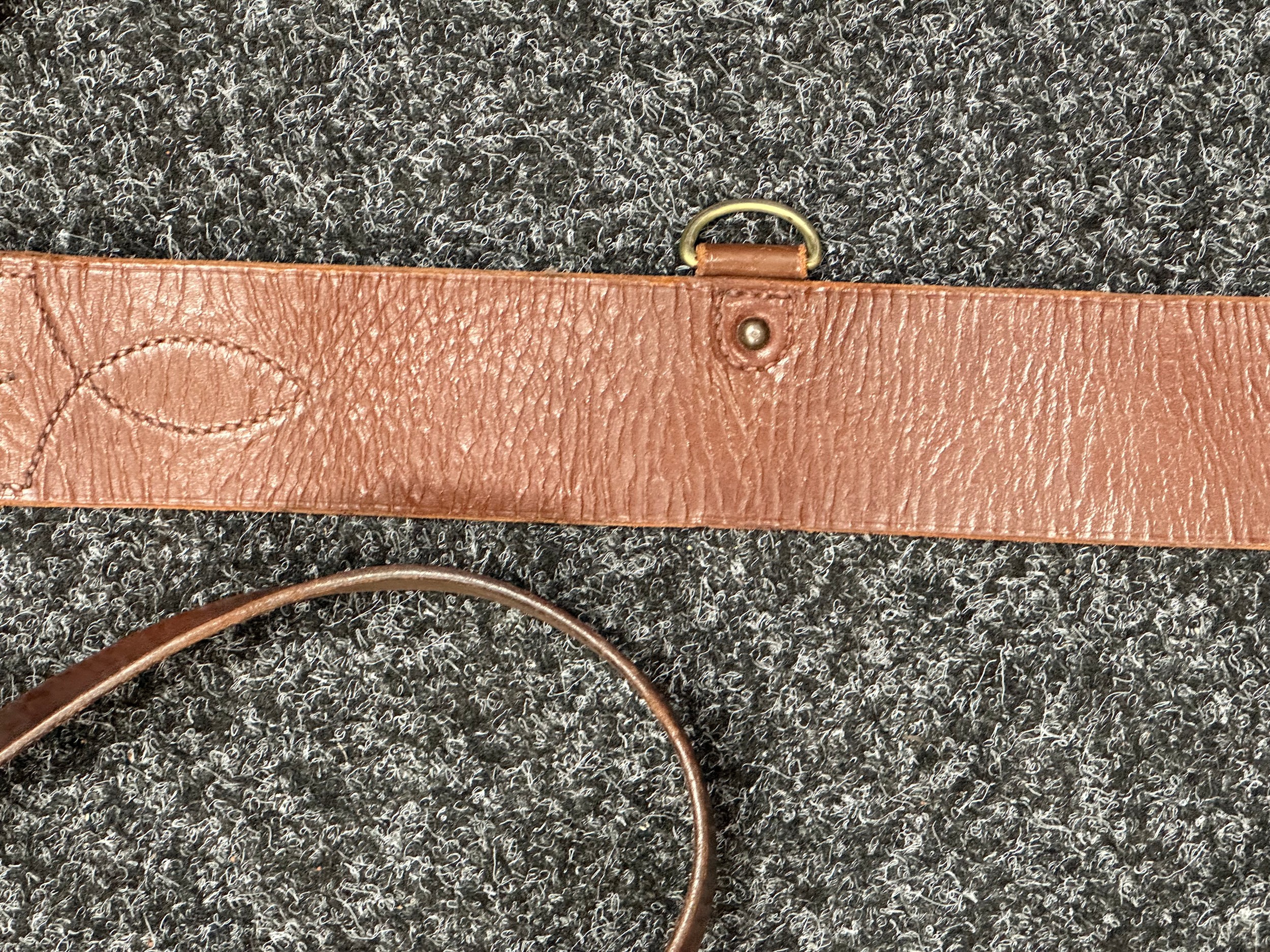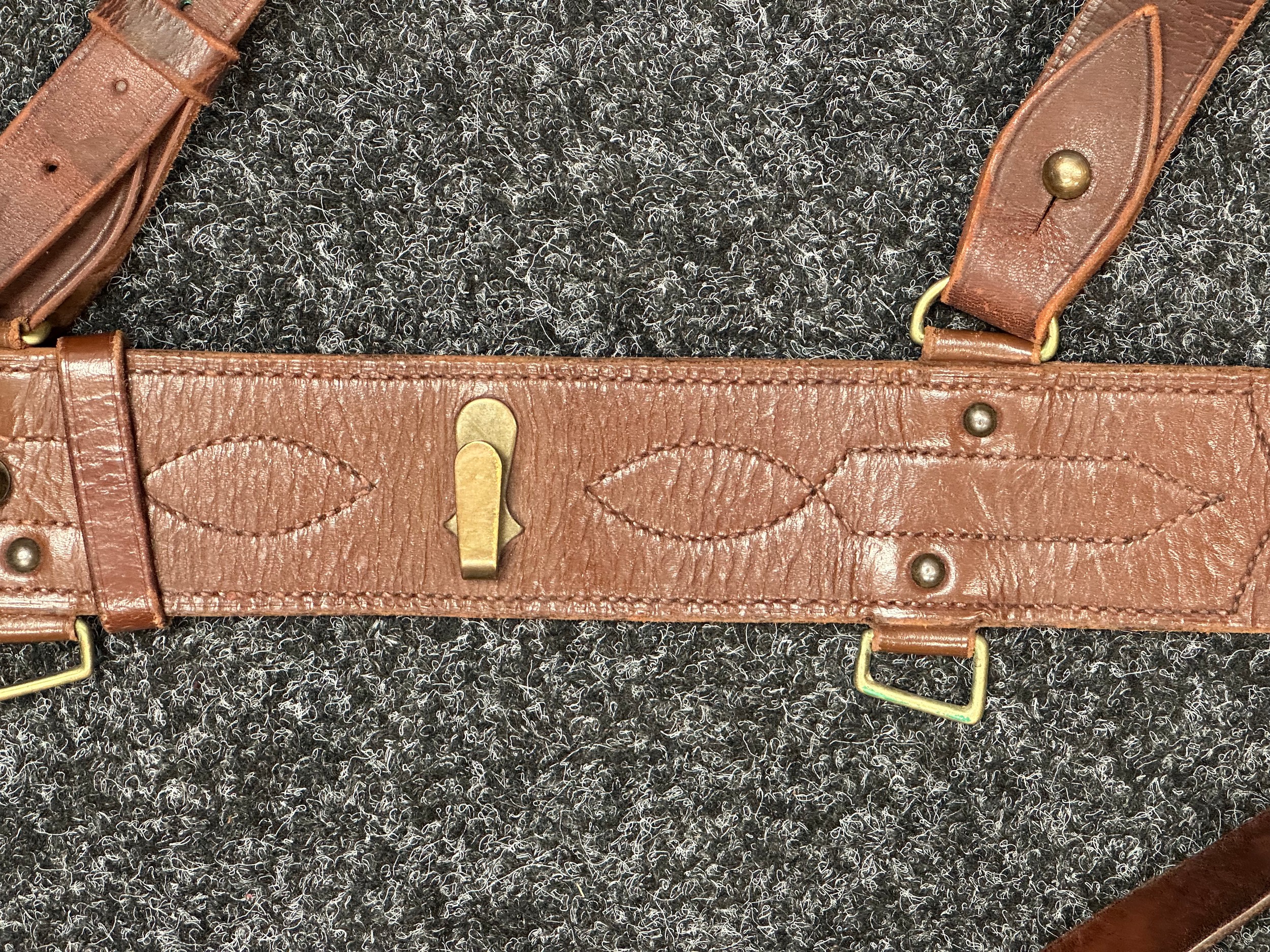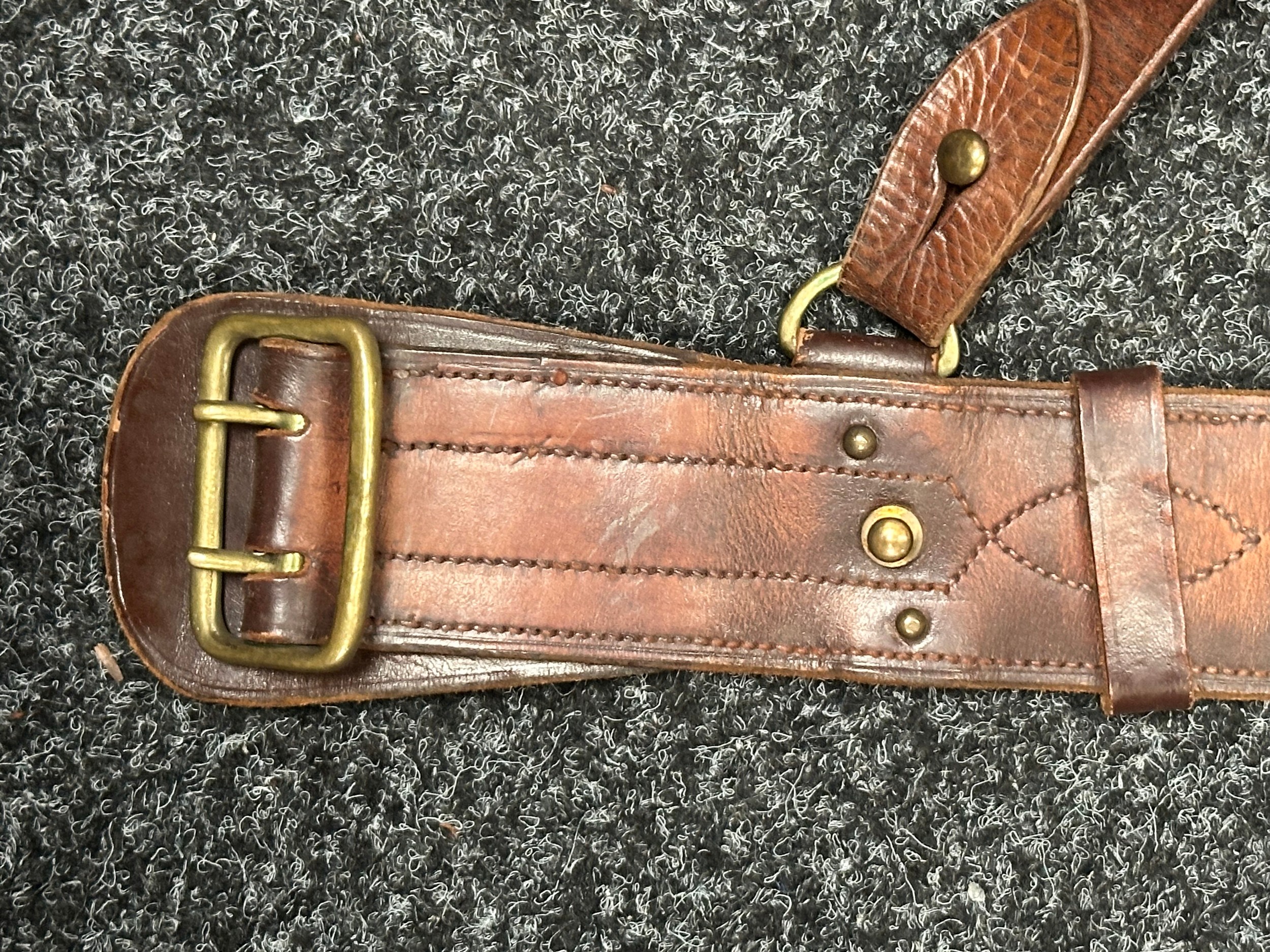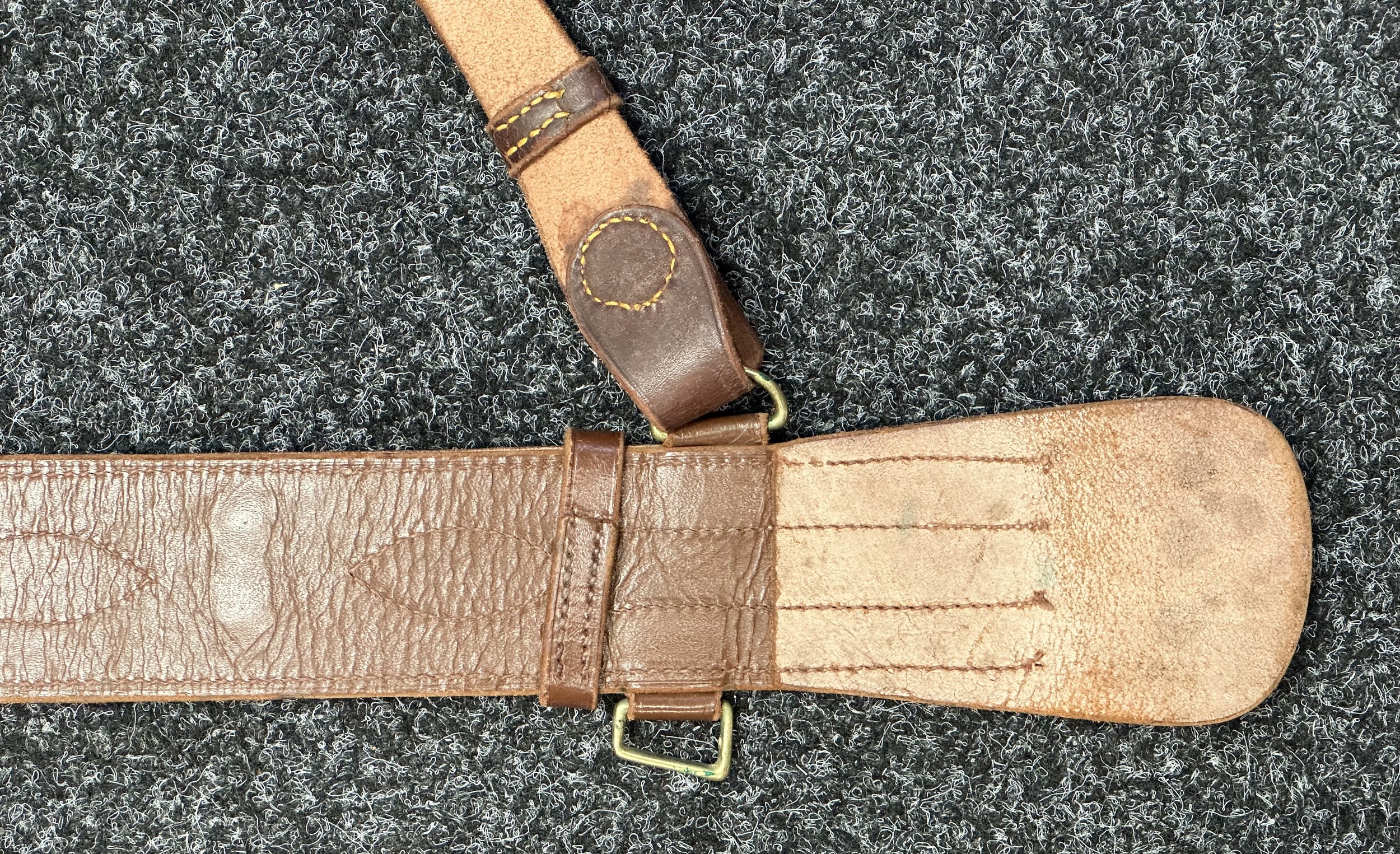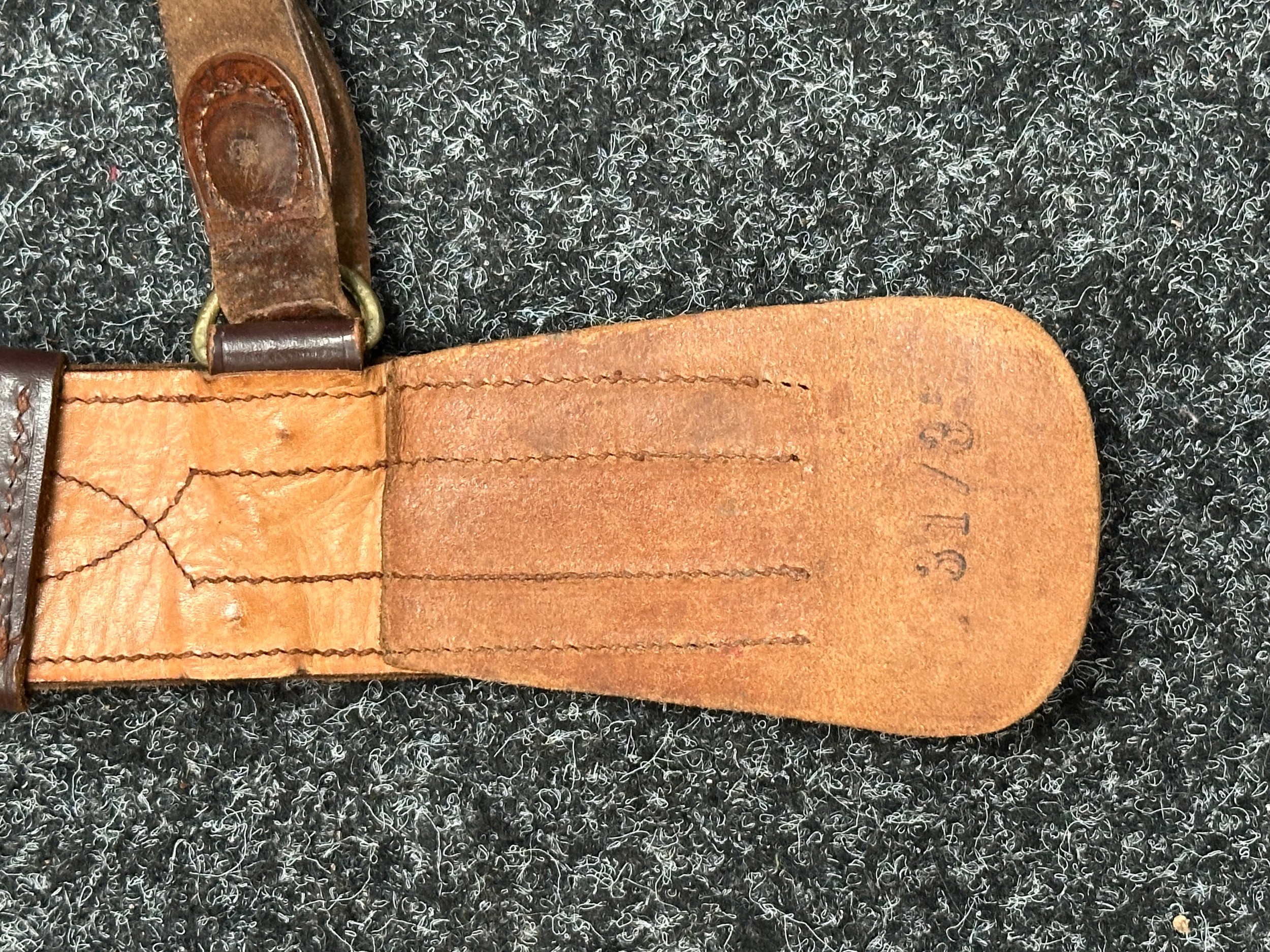 Good used condition. One missing a D ring for the sword frog. Unmarked, possibly South African Army issue.