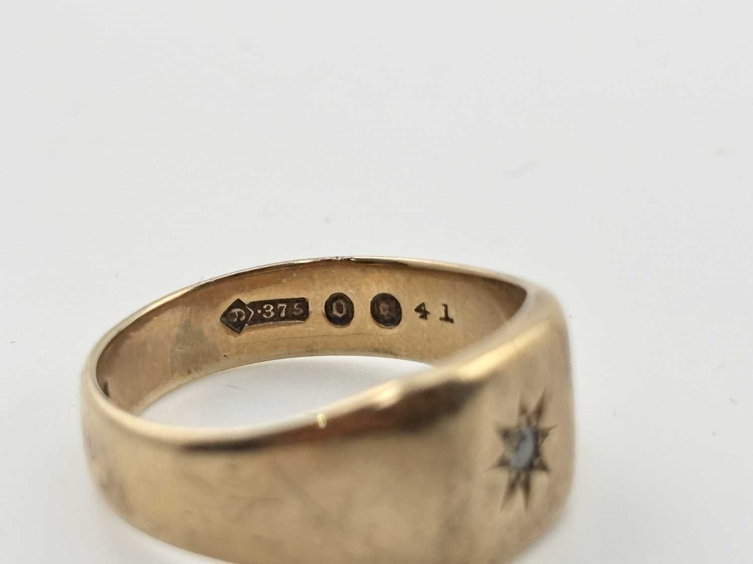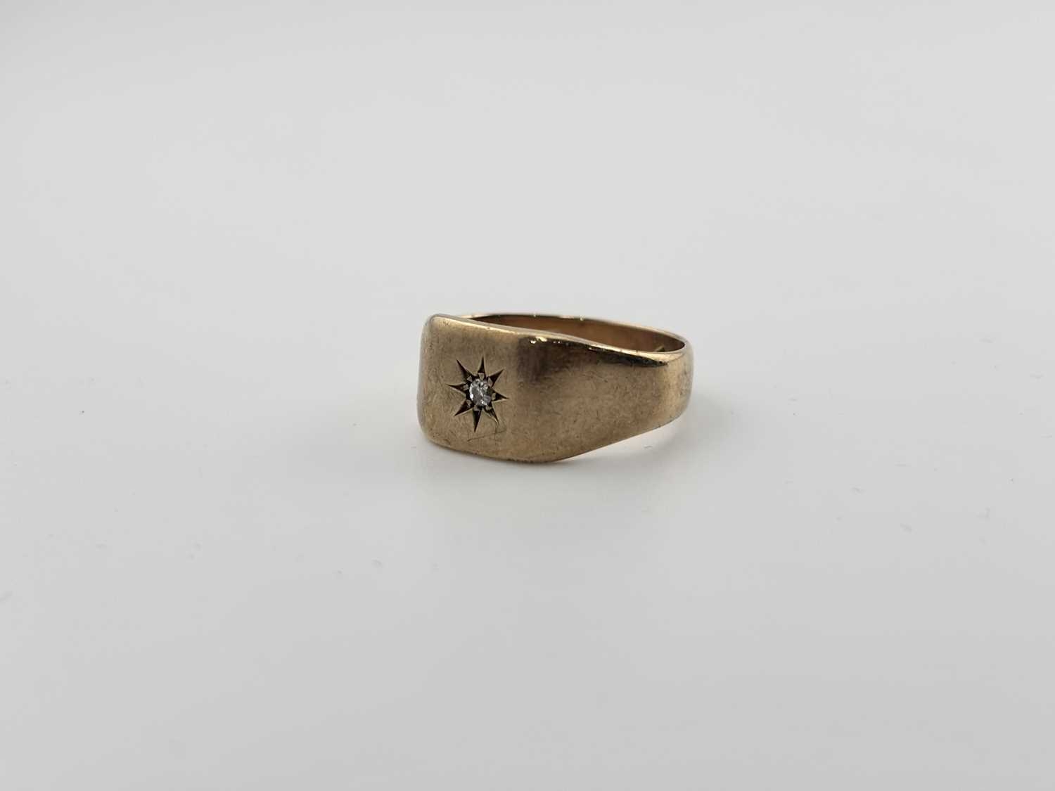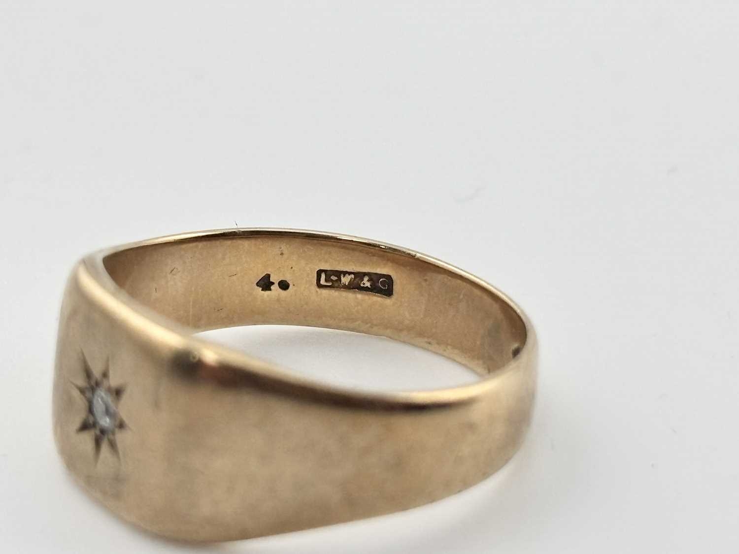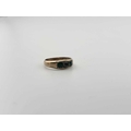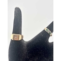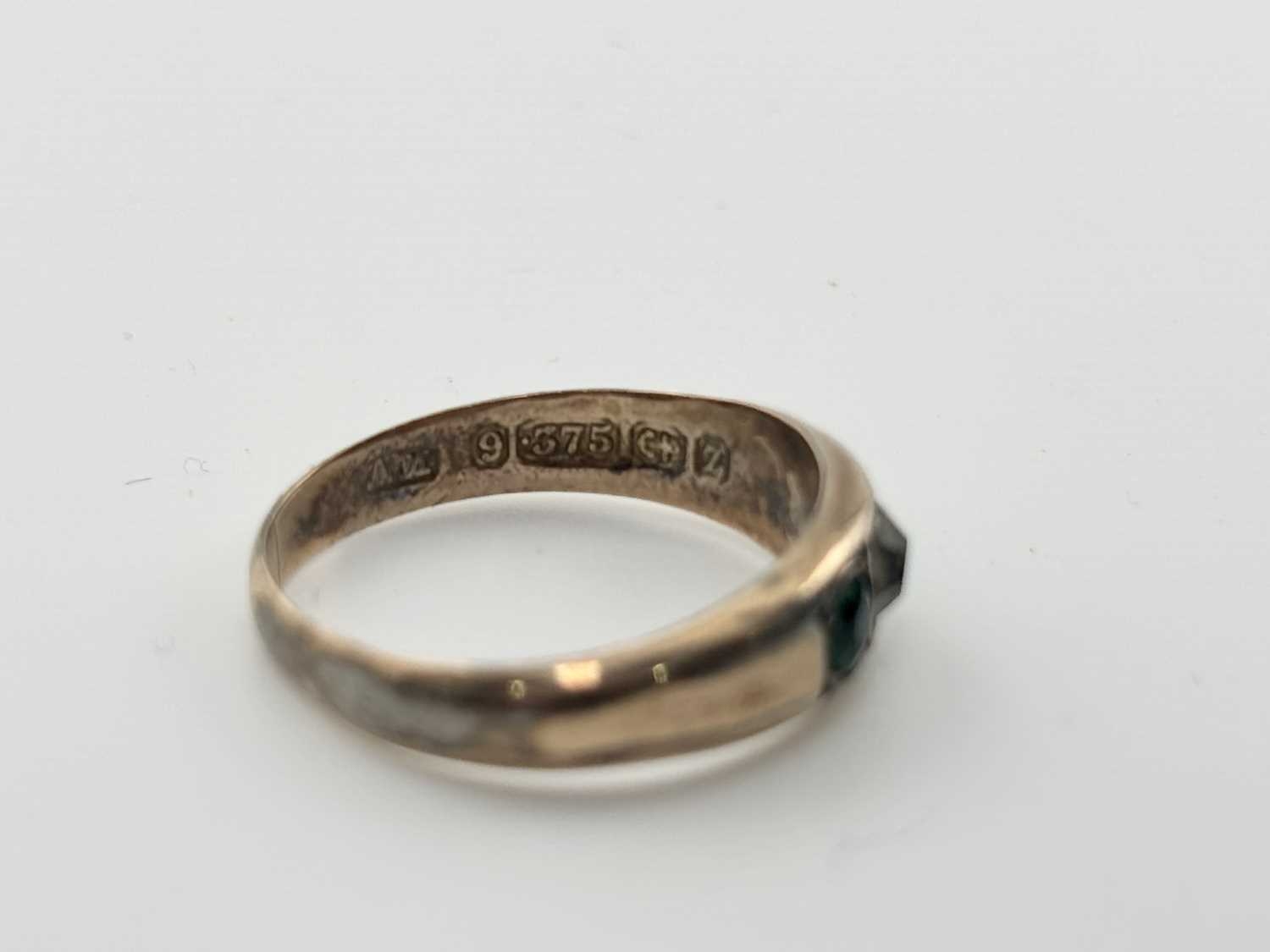Two 9ct gold rings, one set with a single white stone, the other a white stone between two green, gross weight 6.7grams (2)