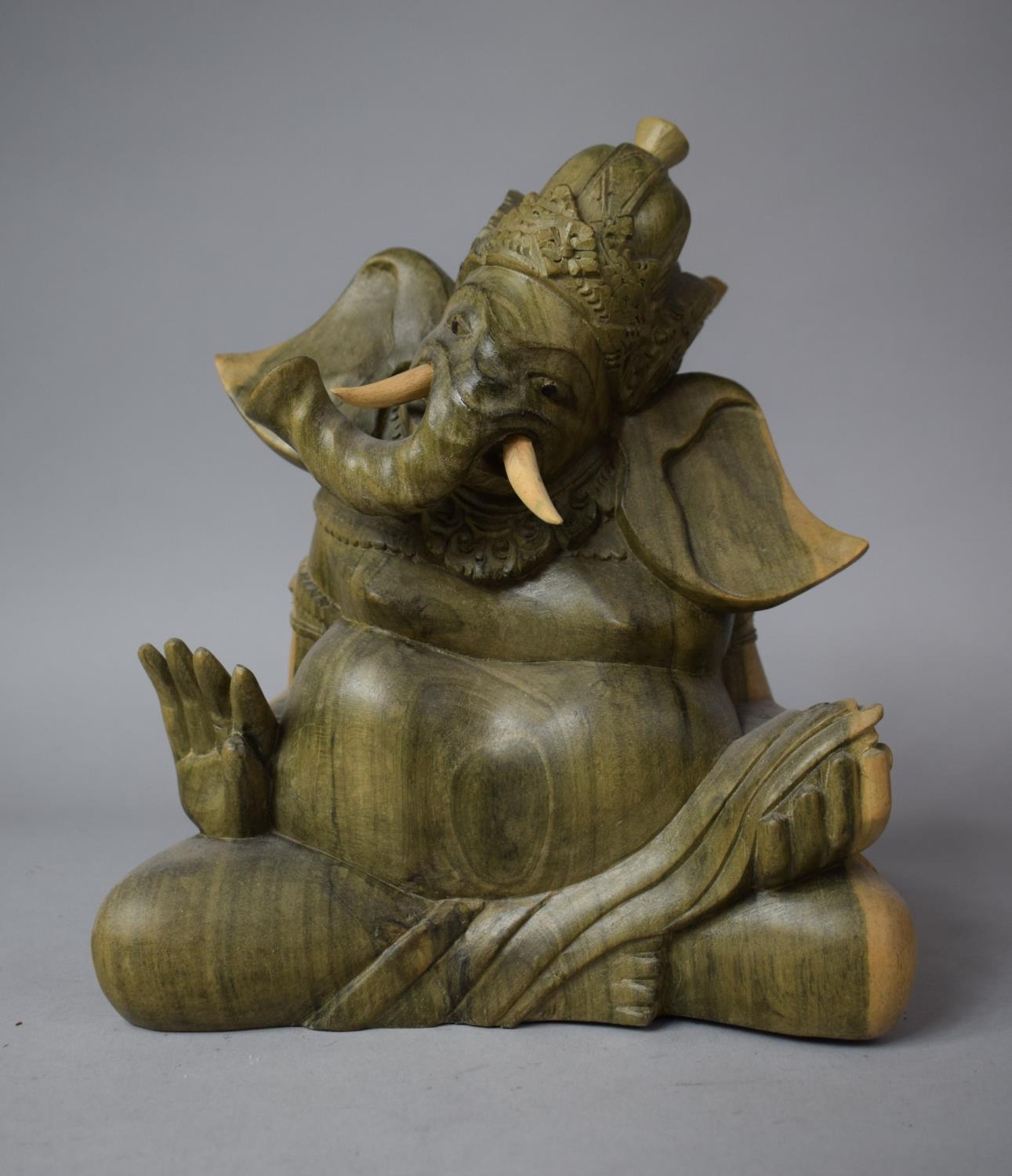 A Carved Wooden Study of Seated Ganesha, 23cm high