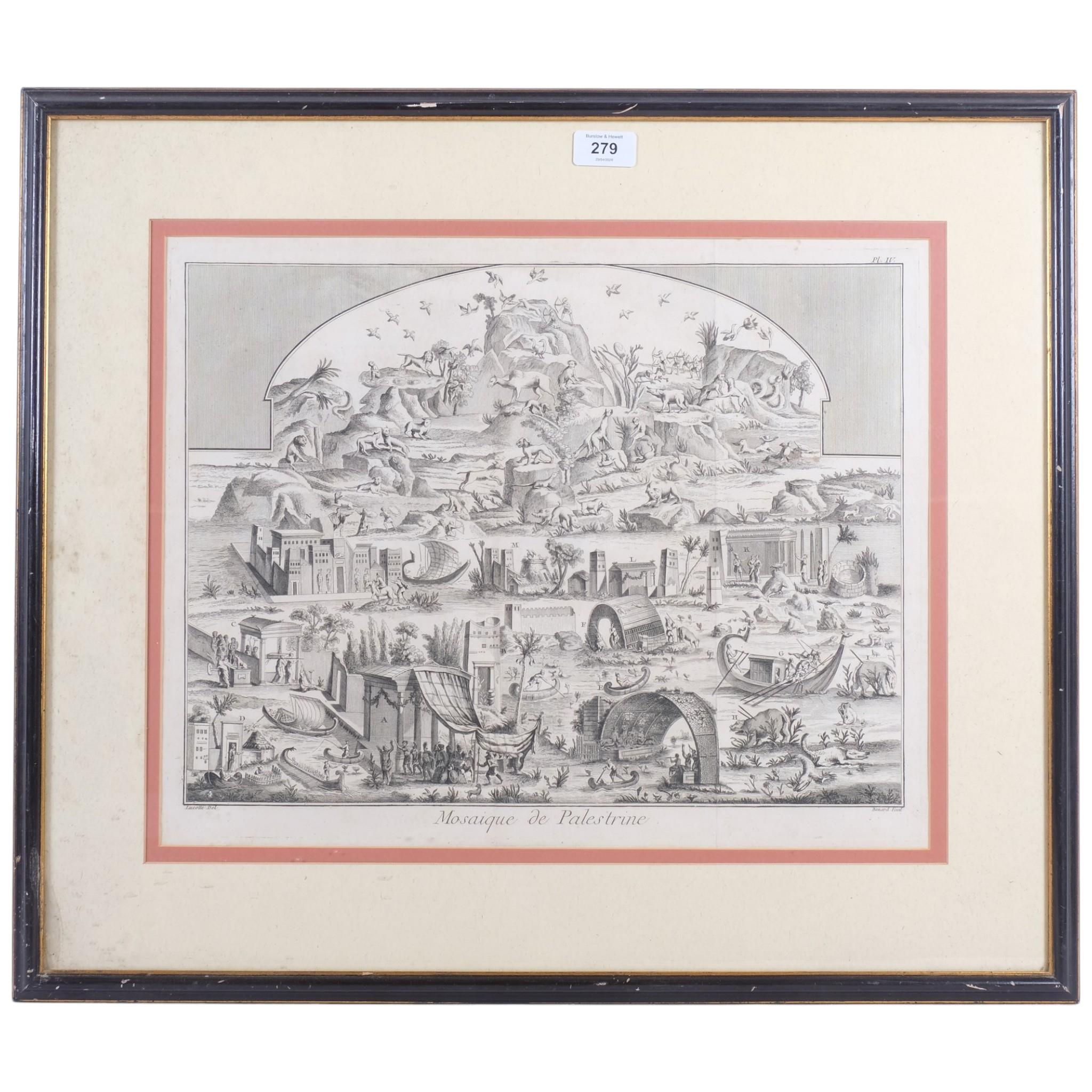 18th century engraving, Mosaique de Palestrine, plate 35cm x 45cm, framed