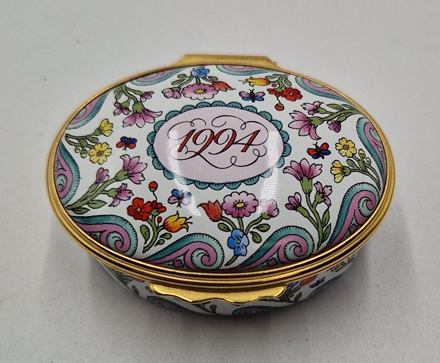 HALCYON DAYS ENAMEL HINGED LIDDED CIRCULAR TRINKET BOX