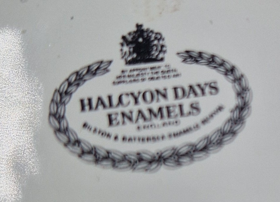 (HALCYON DAYS is a British business which has held 5 Royal Warrants and has been honoured to supply the Royal Family for over 50 years. His Majesty Kings Charles in 2024 granted the Royal Warrant to HALCYON DAYS. Royal Warrants to the British Royal Household as Suppliers of objets d'art – one of only 14 businesses to hold all five.[1]