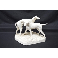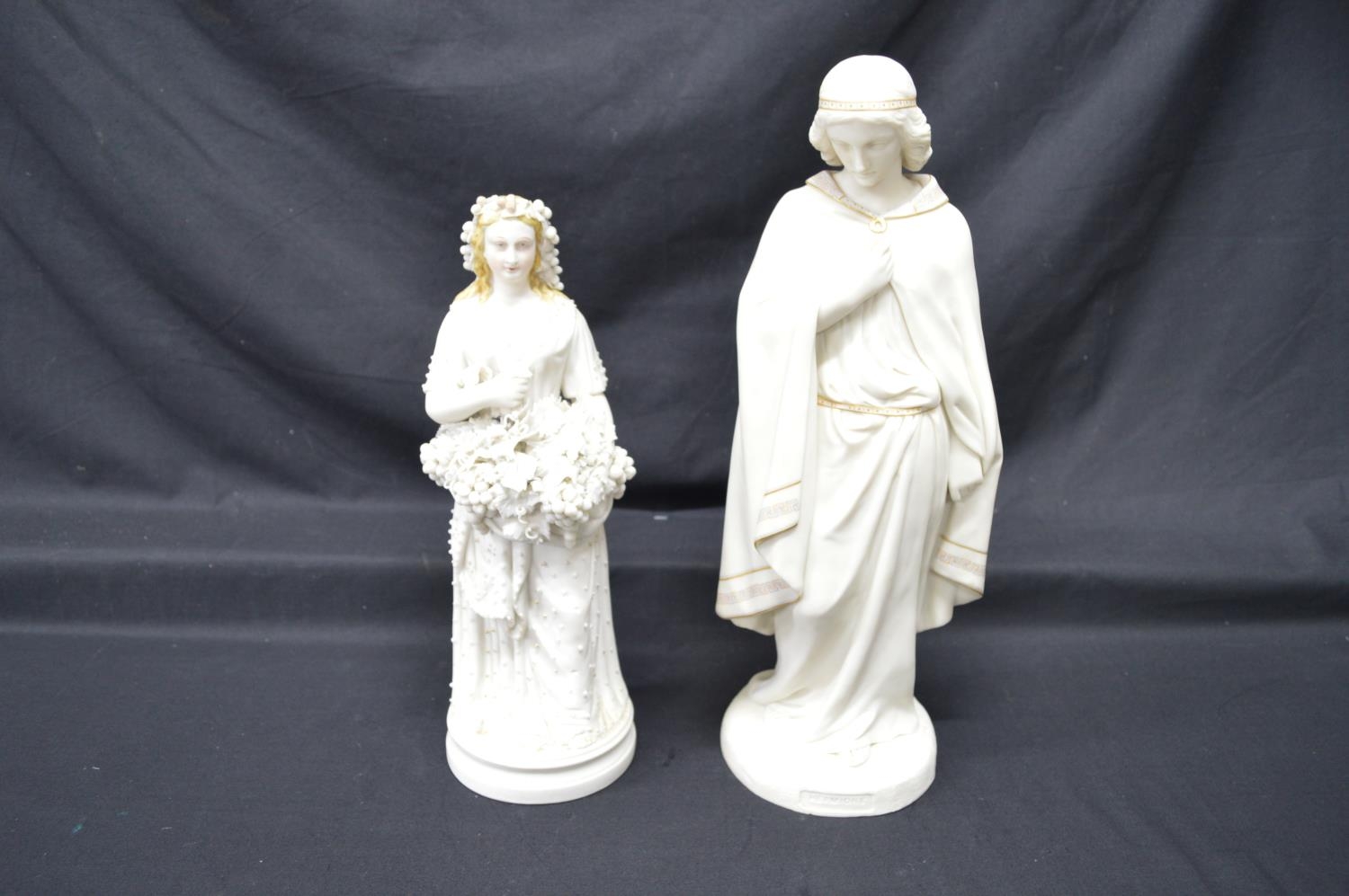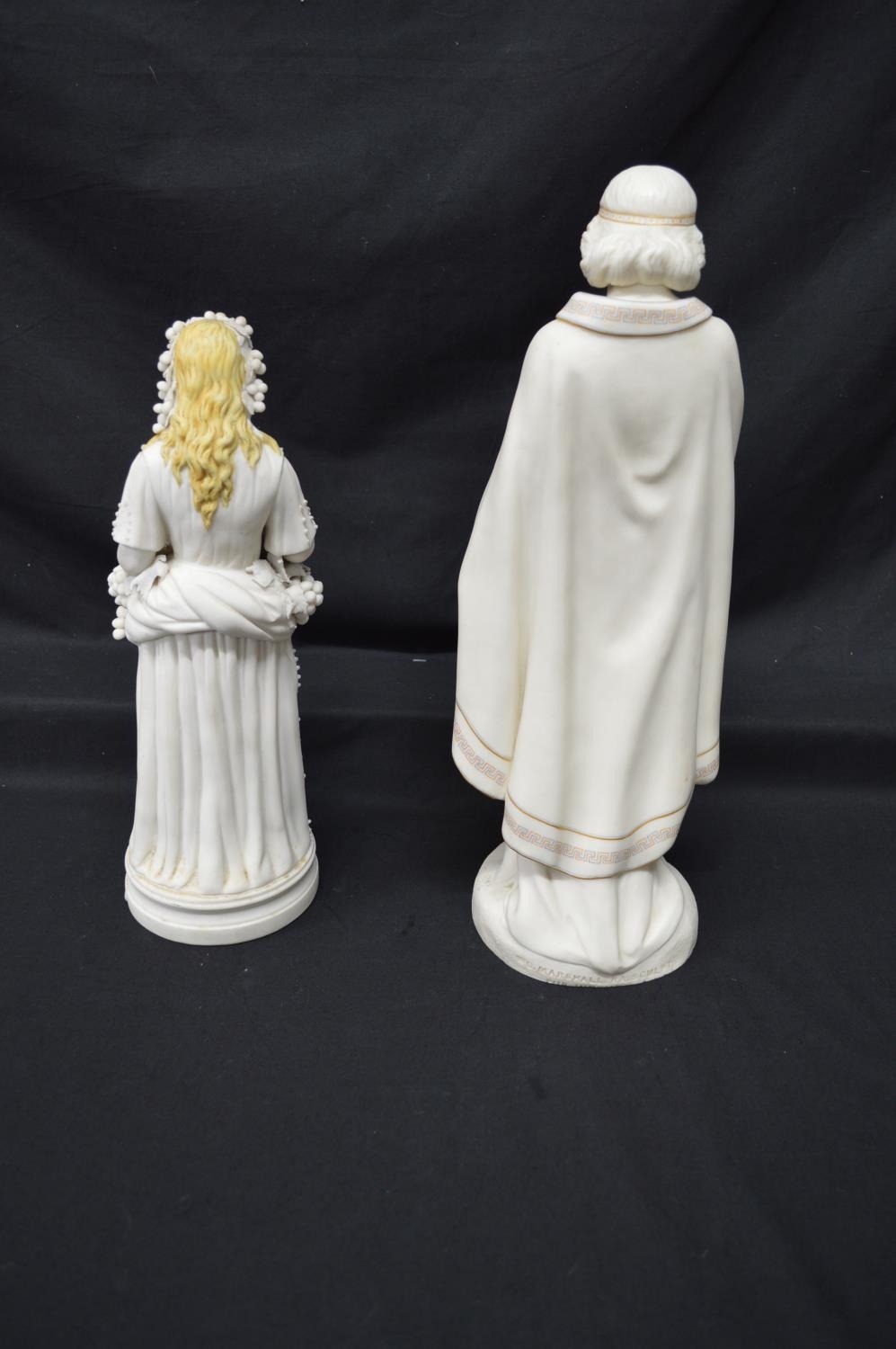 WC Marshall Parianware figure of Hermione with gilt highlights and impressed marks - 16" tall together with one other - 13.25" tall