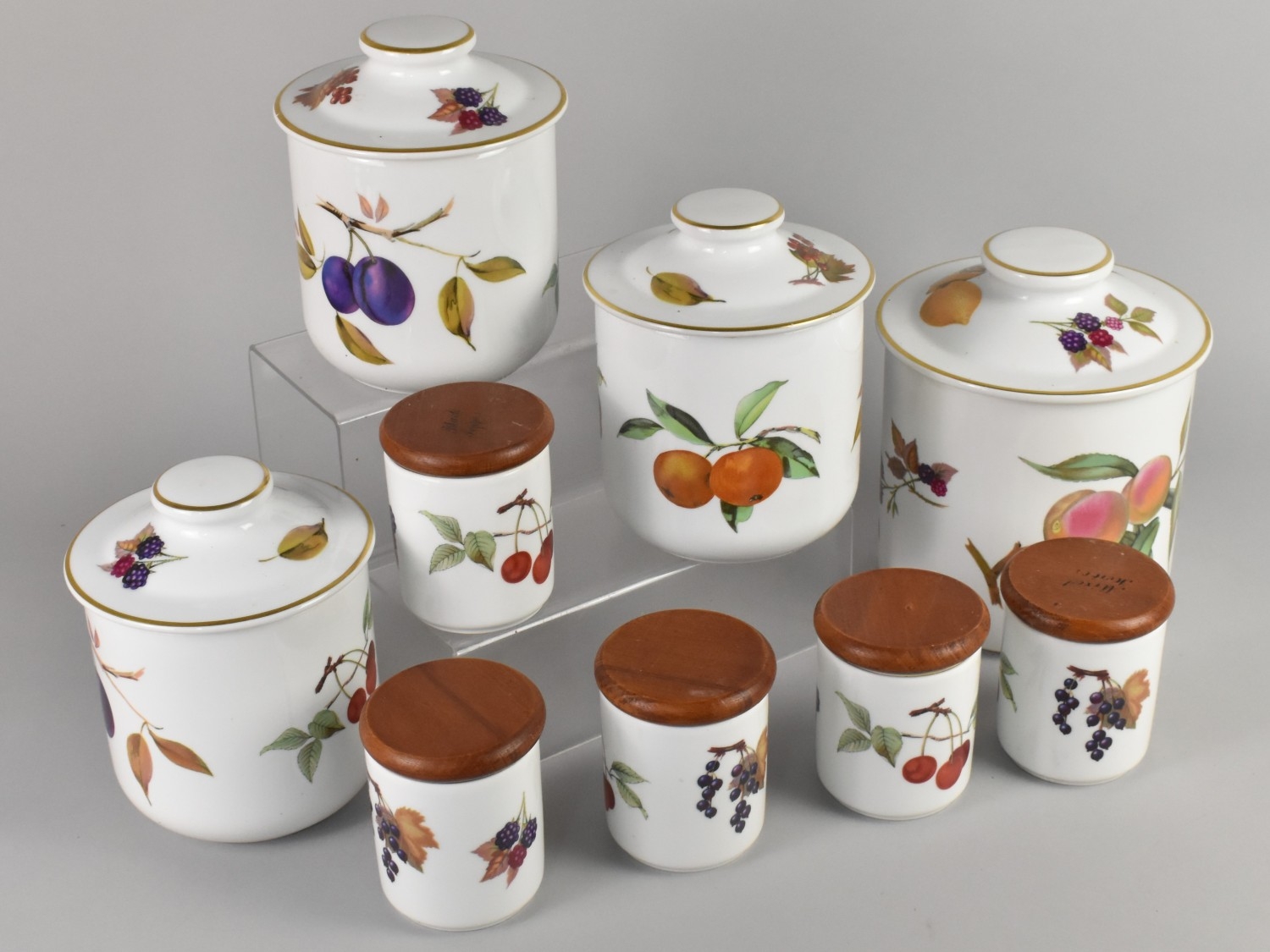 Nine Pieces of Royal Worcester Evesham to Comprise Four Storage Jars and Five Spice Jars