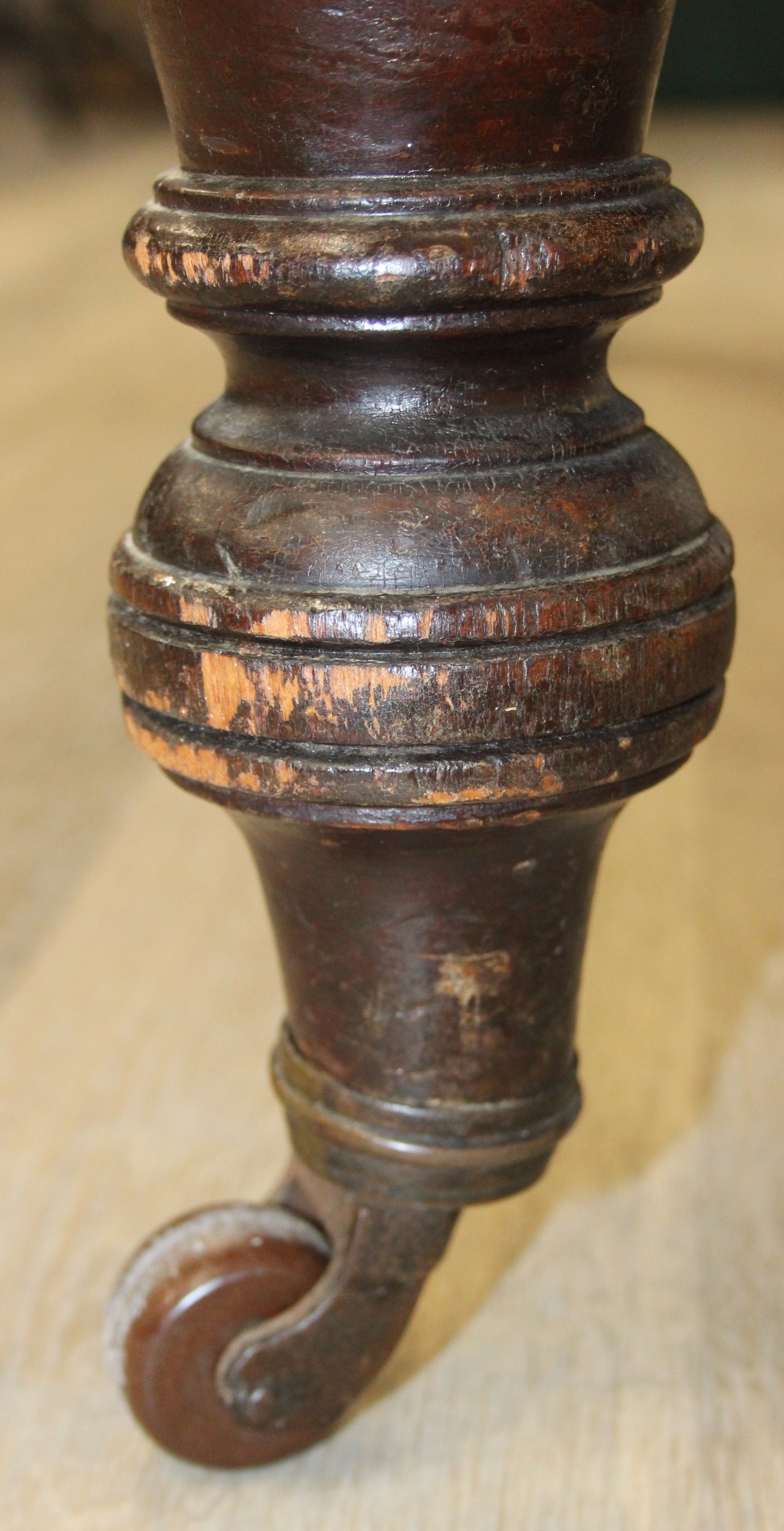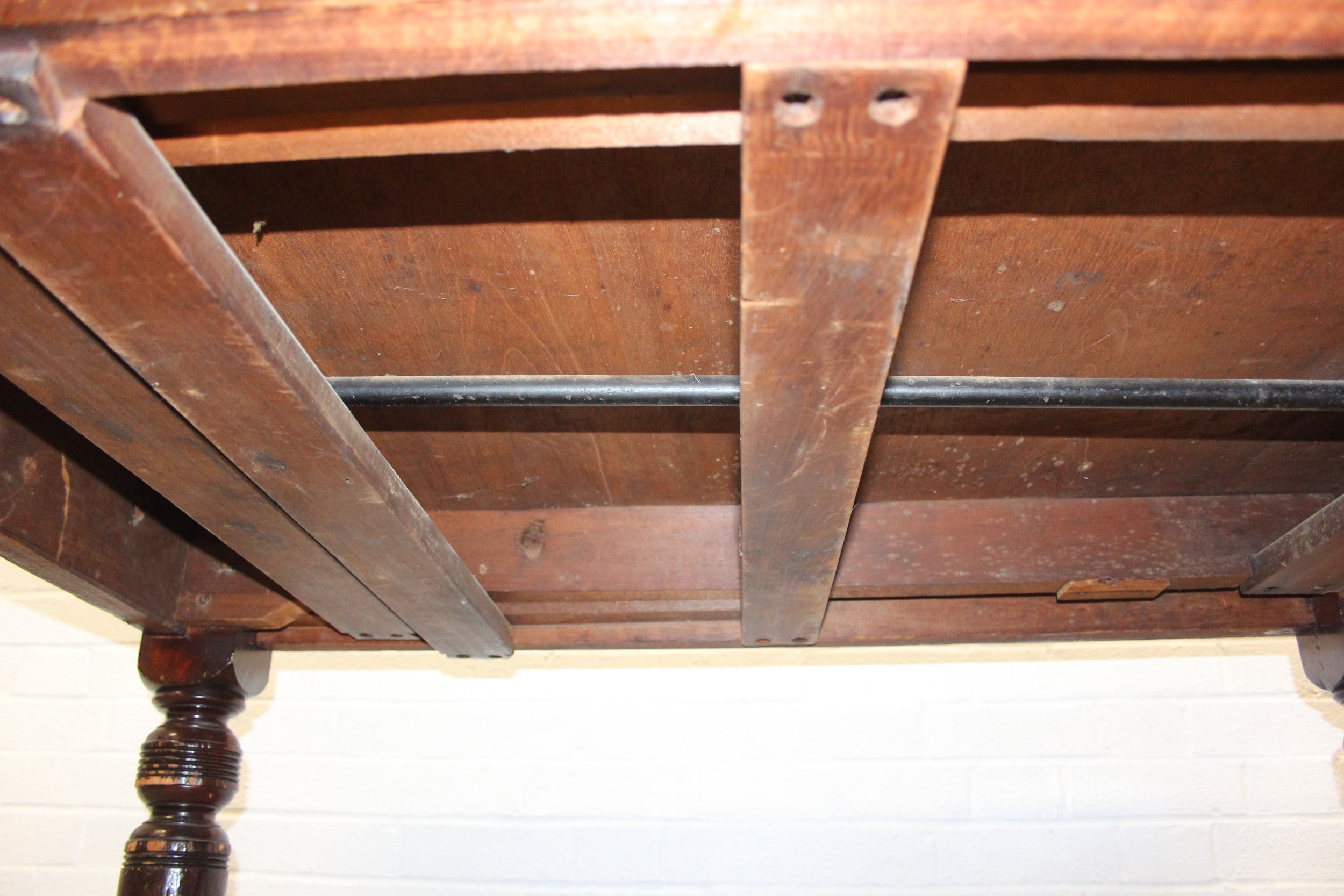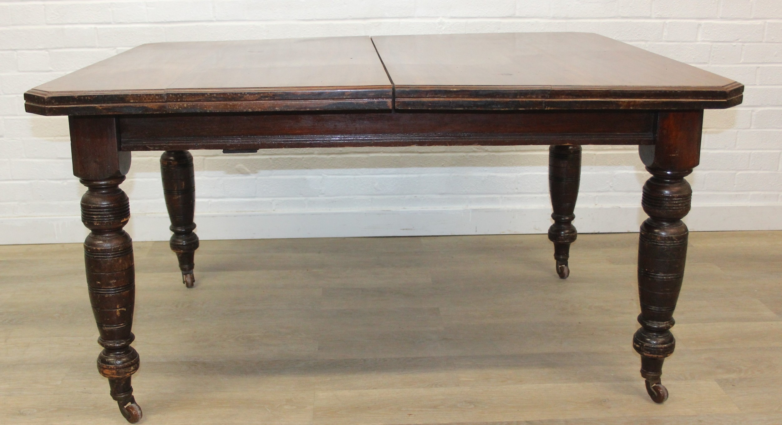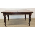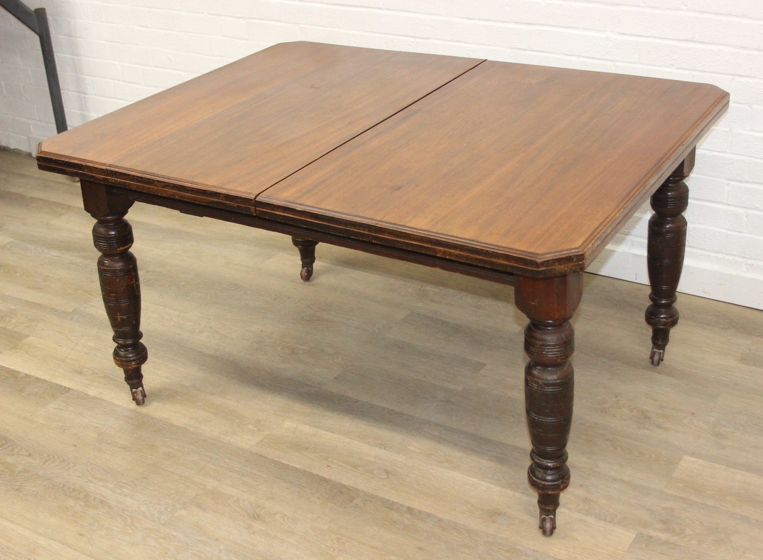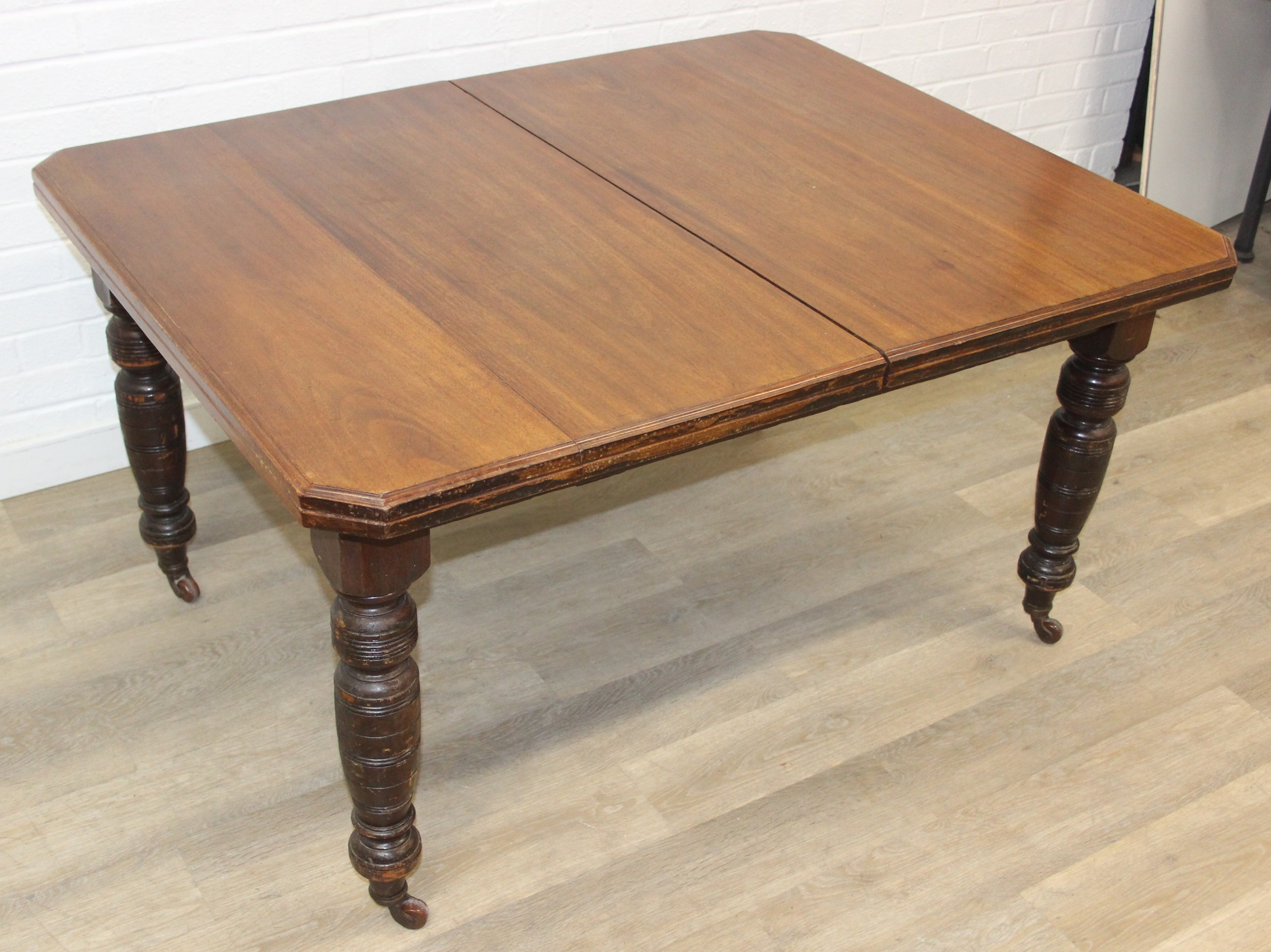 Antique mahogany dining table with turned legs, 134cm x 104cm x 72cm