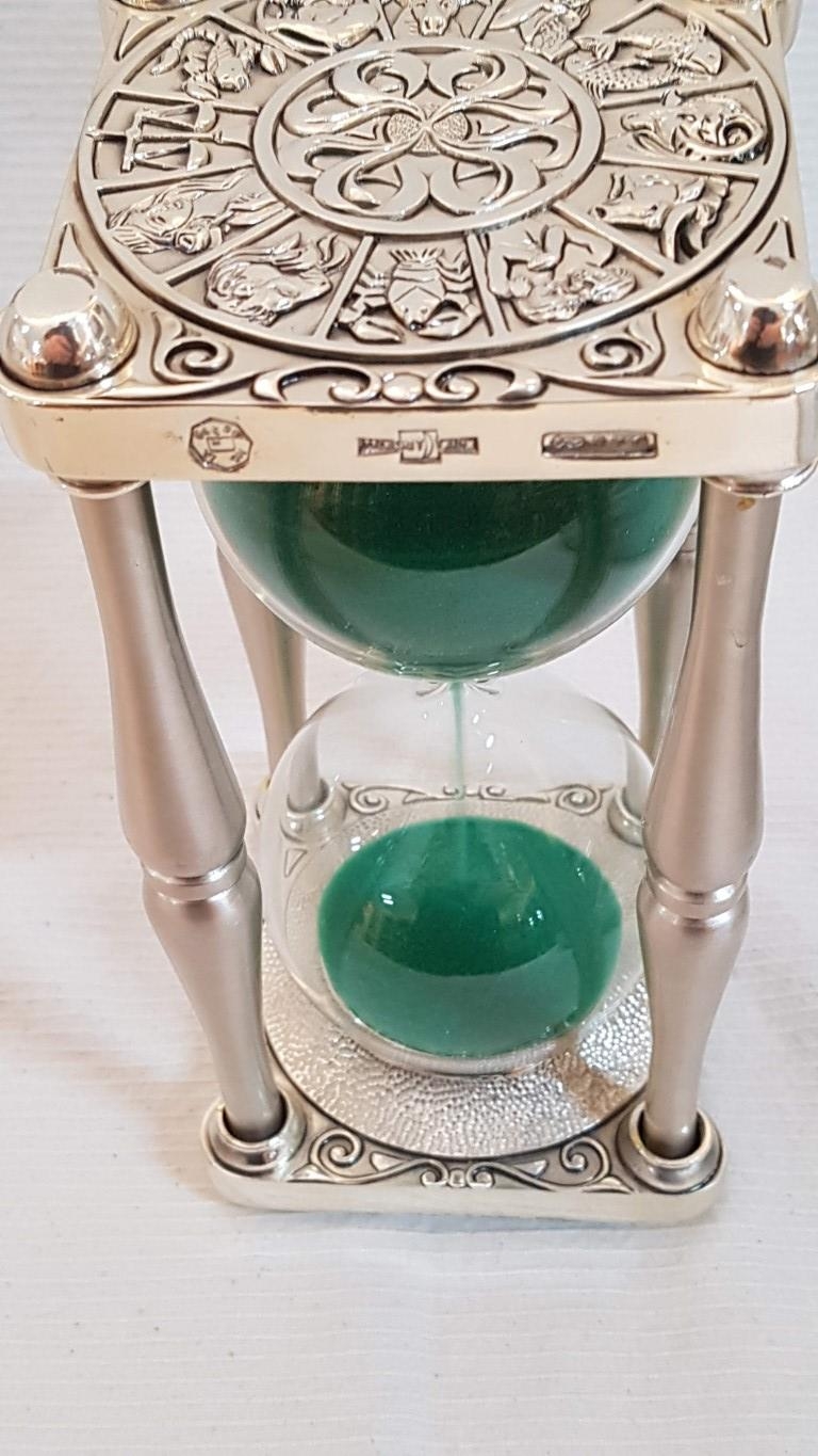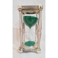 Large 'Linea Argenti' Ornate White Metal Hour Glass with Green Sand, Approx. H: 20m