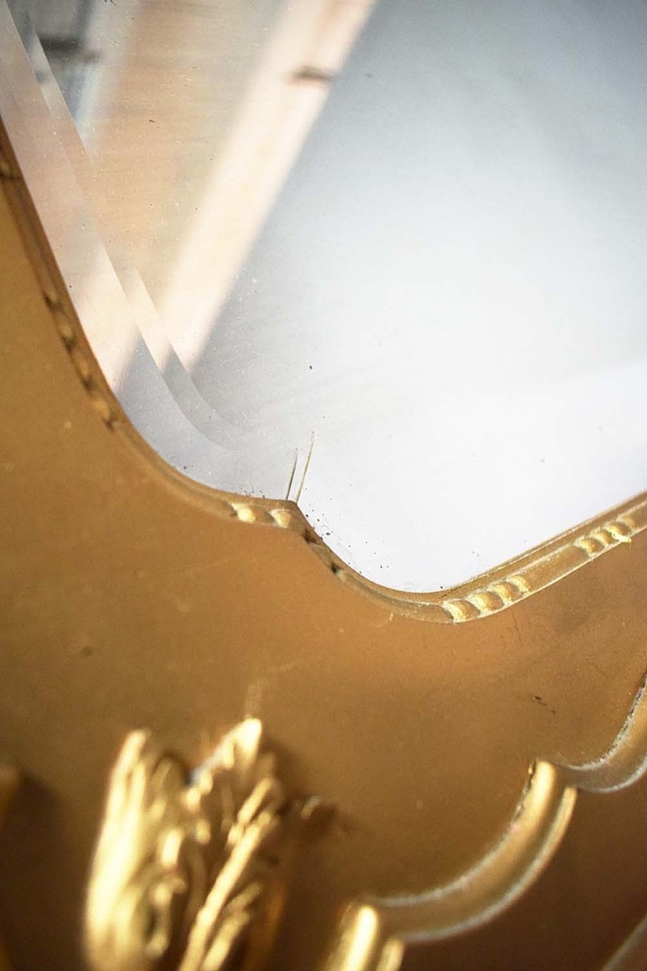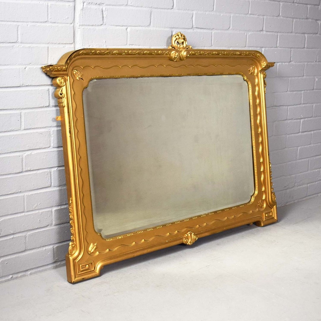 OVERMANTEL MIRROR. with a gilt frame and a bevelled plate 123cm w x 94cm t.