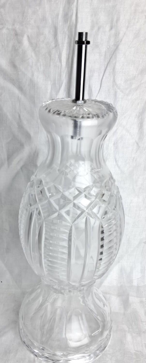 Tyrone crystal lamp base with intricate geometric patterning and polished chrome fittings.