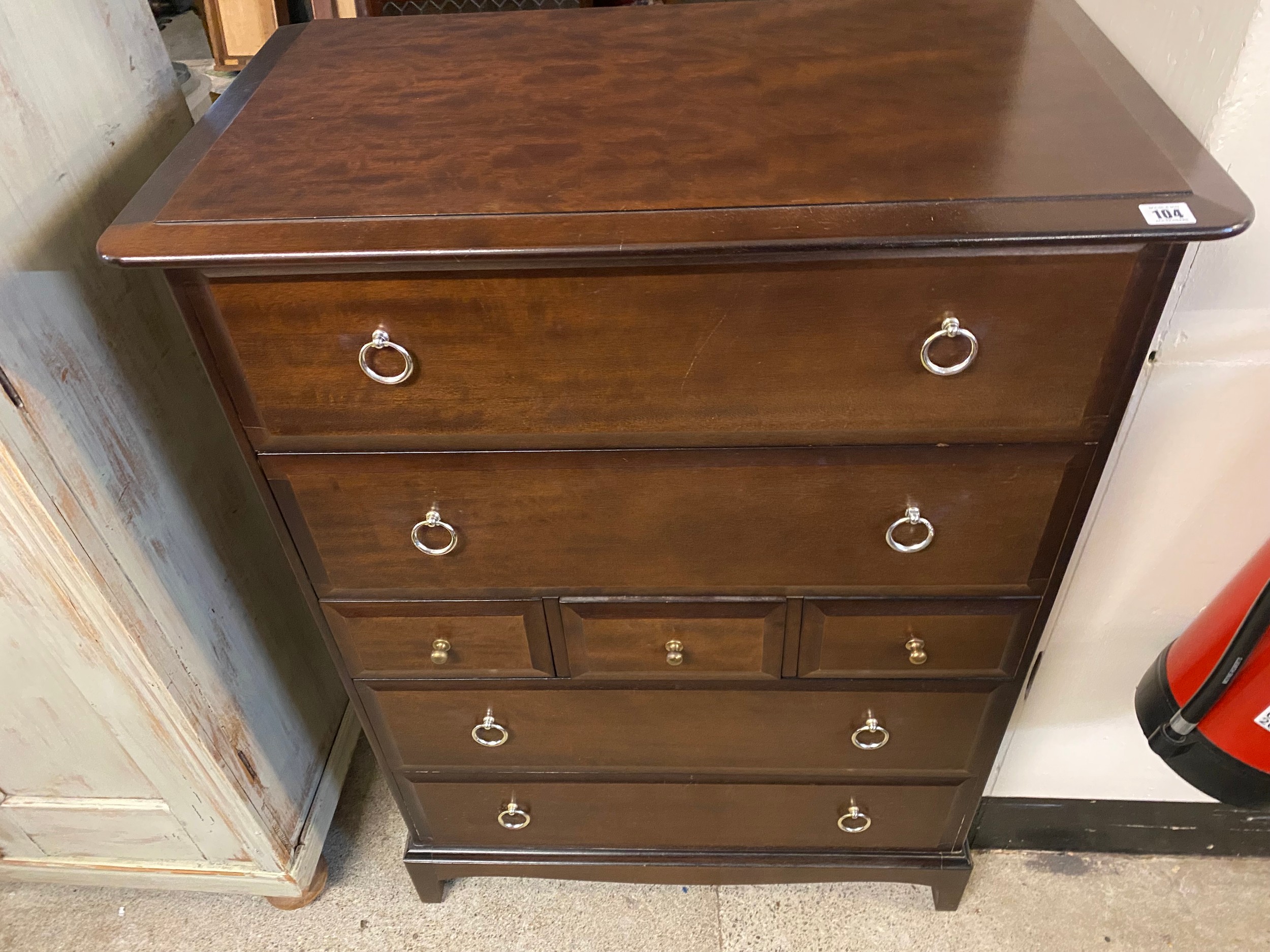 A Stag Minstrel mahogany chest fitted three narrow and four wide drawers - 32in. wide