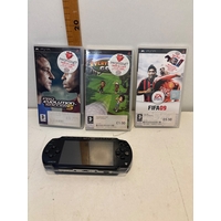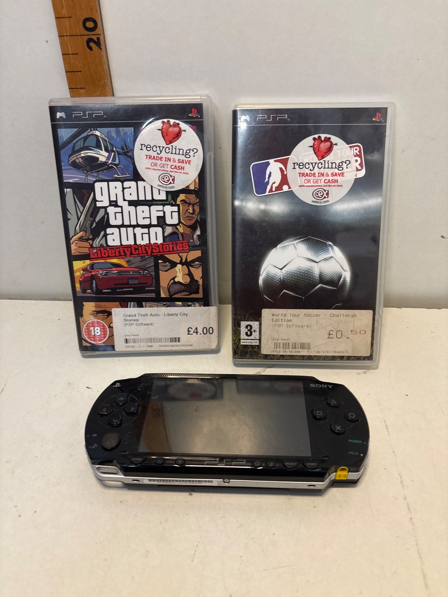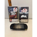 Sony PSP console with Grand Theft Auto and FIFA games.