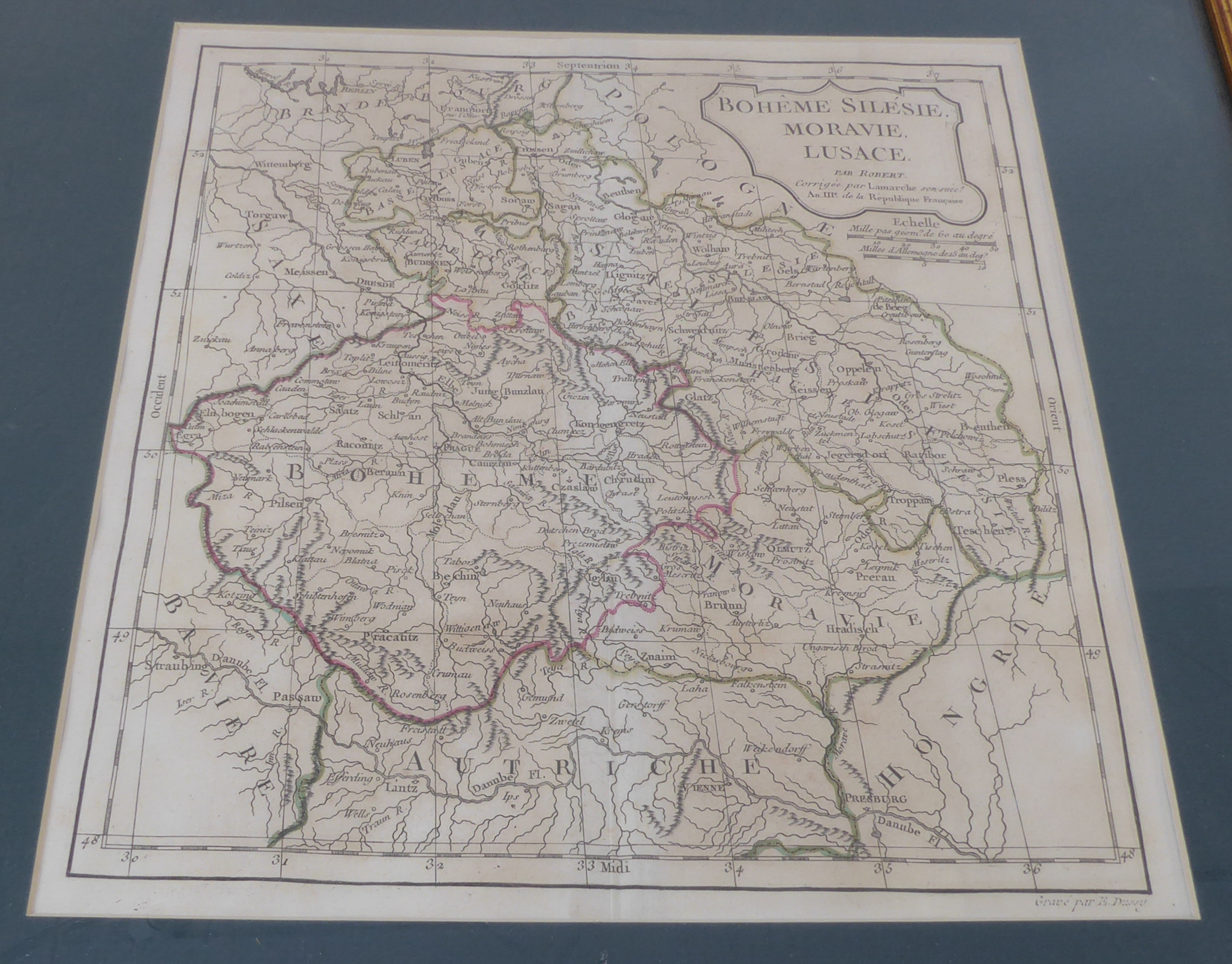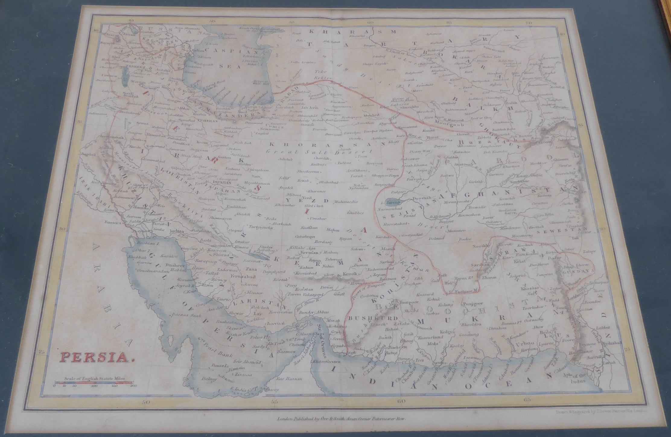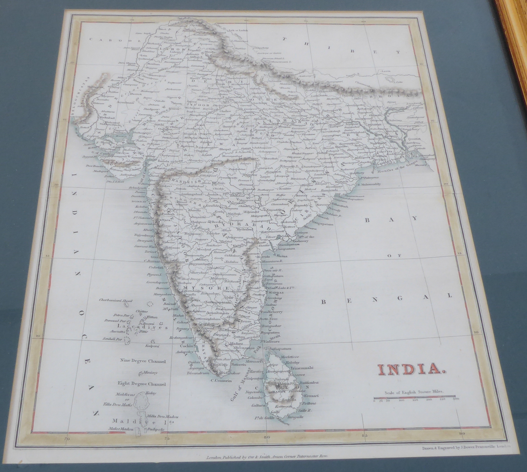 Seven mostly 19th century hand-coloured antiquarian map engravings to include India, bird's-eye view of St. Petersburg, Iceland by Edward Weller, Bohême Silésie Moravie Lusace (18th / 19th century), Turkey in Asia, Australia and Persia. Later glazed gilt frames. Some fading commensurate with age, but mostly in good condition.