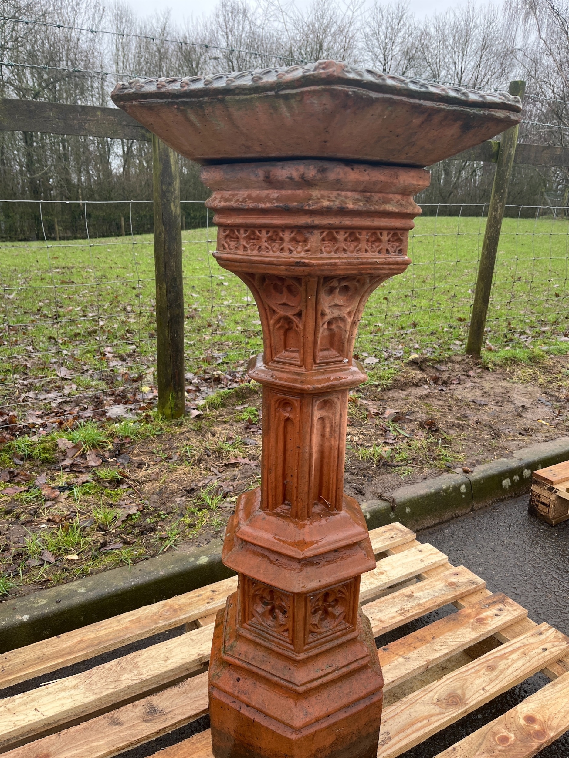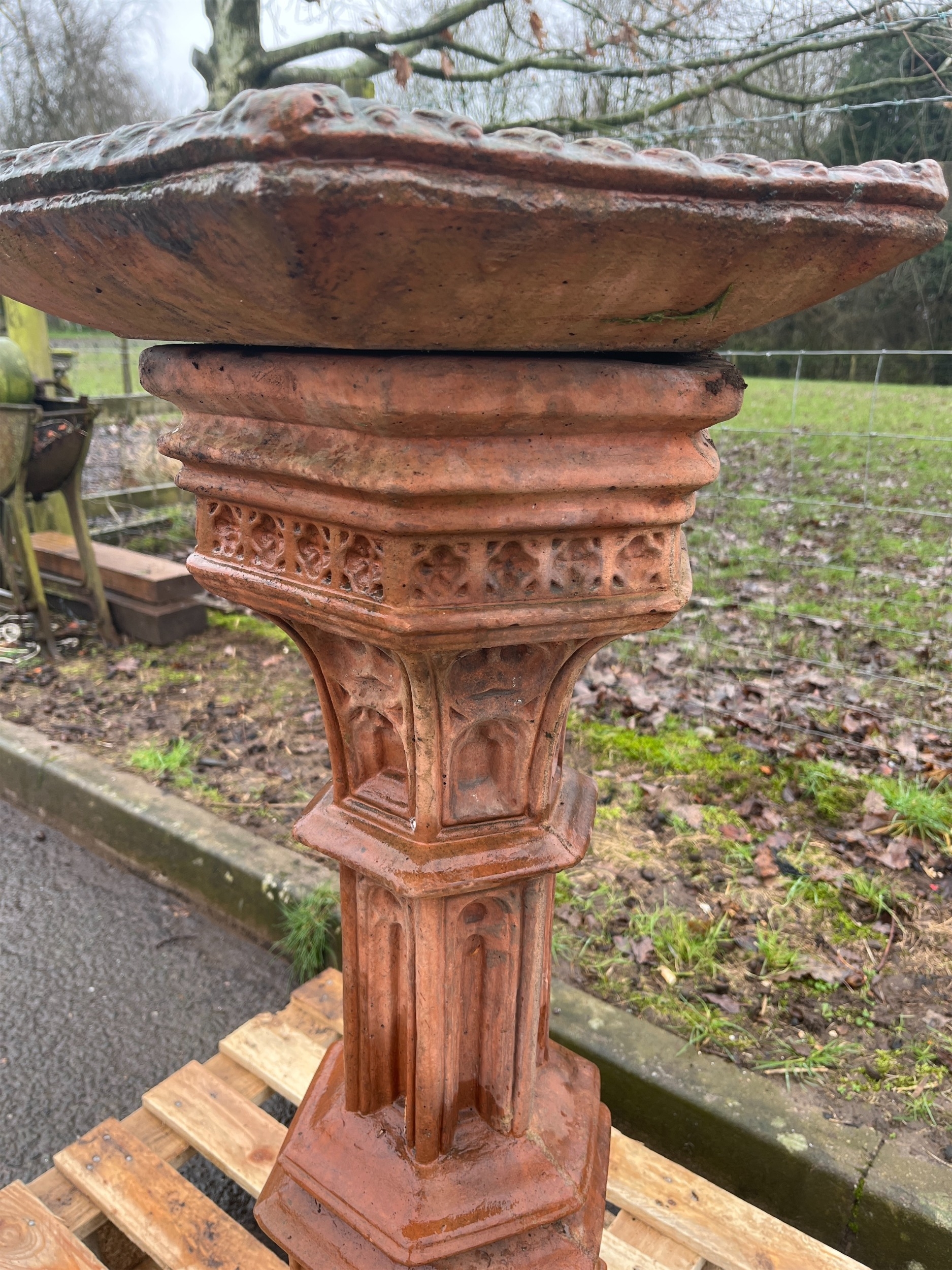 TERRACOTTA GOTHIC BIRDBATH