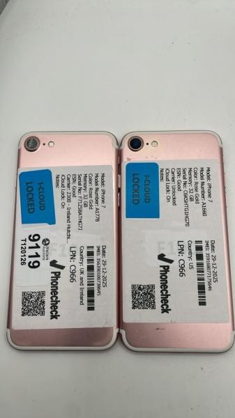X2 APPLE IPHONES: IPHONE 7 / A1778 / 32GB / IMEI: 359168077175646 & IMEI: 356390100738645 / I-CLOUD LOCKED