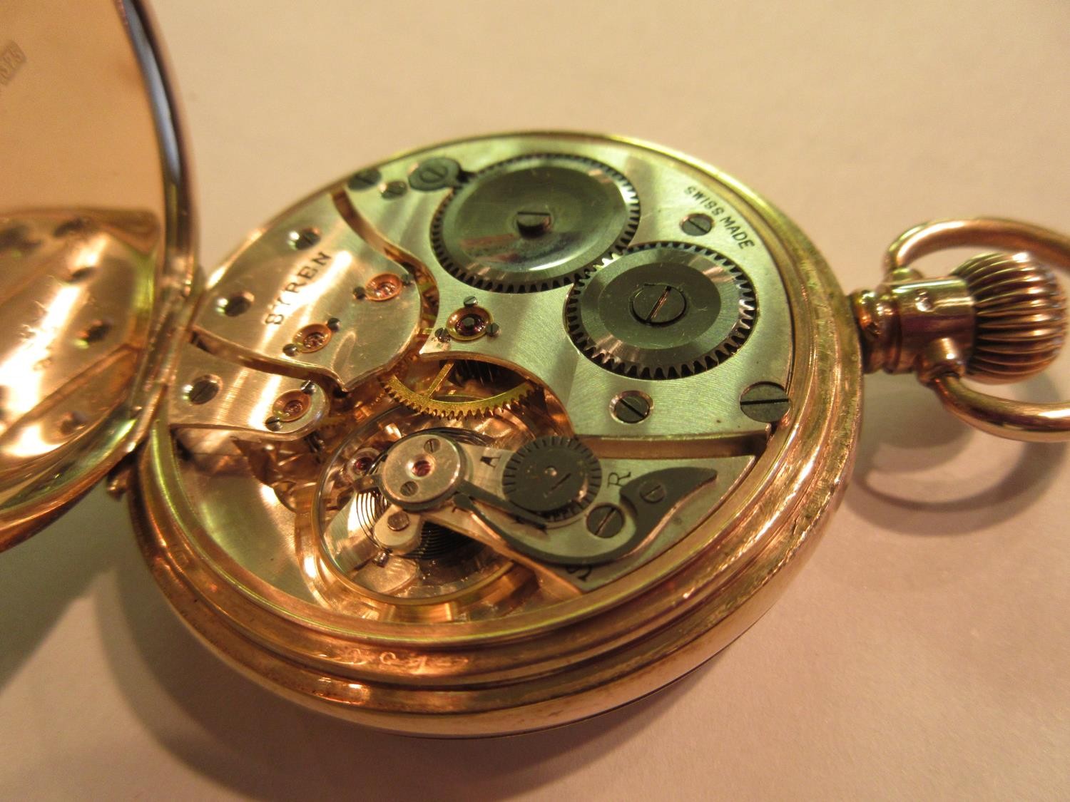 20th Century 9ct gold open face crown wind pocket watch, the enamel dial with Arabic numerals and subsidiary seconds inscribed Bravingtons Renown, together with an original presentation case