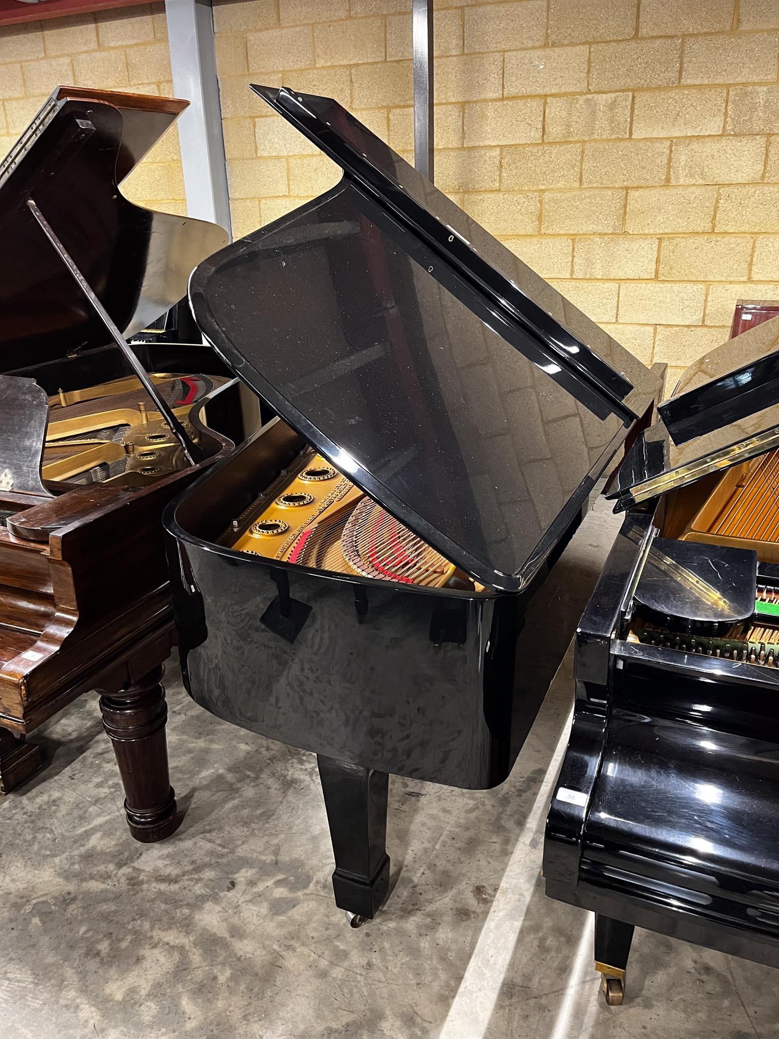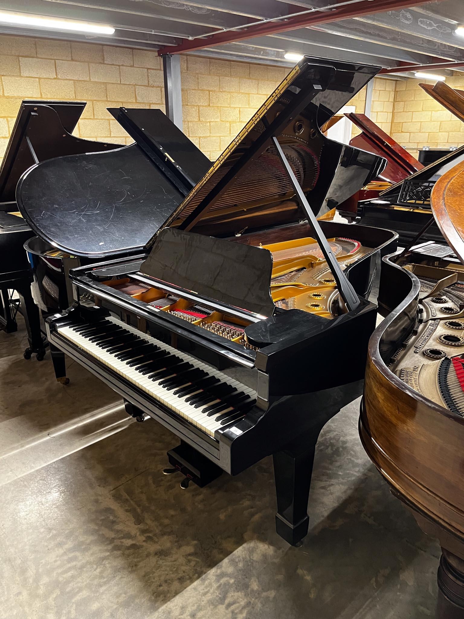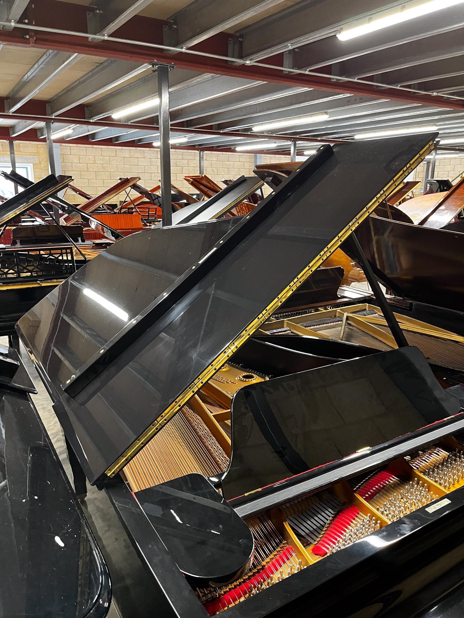A 7ft 2in early Model C grand piano in a bright ebonised case on later square tapered legs. This instrument has been fully restored. IRN: HAYCS3BW