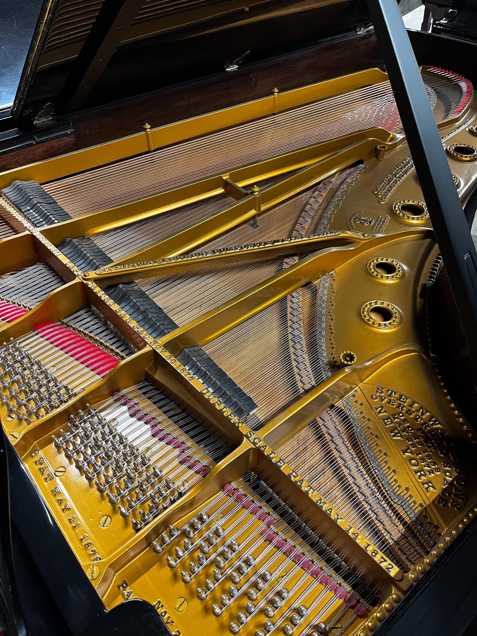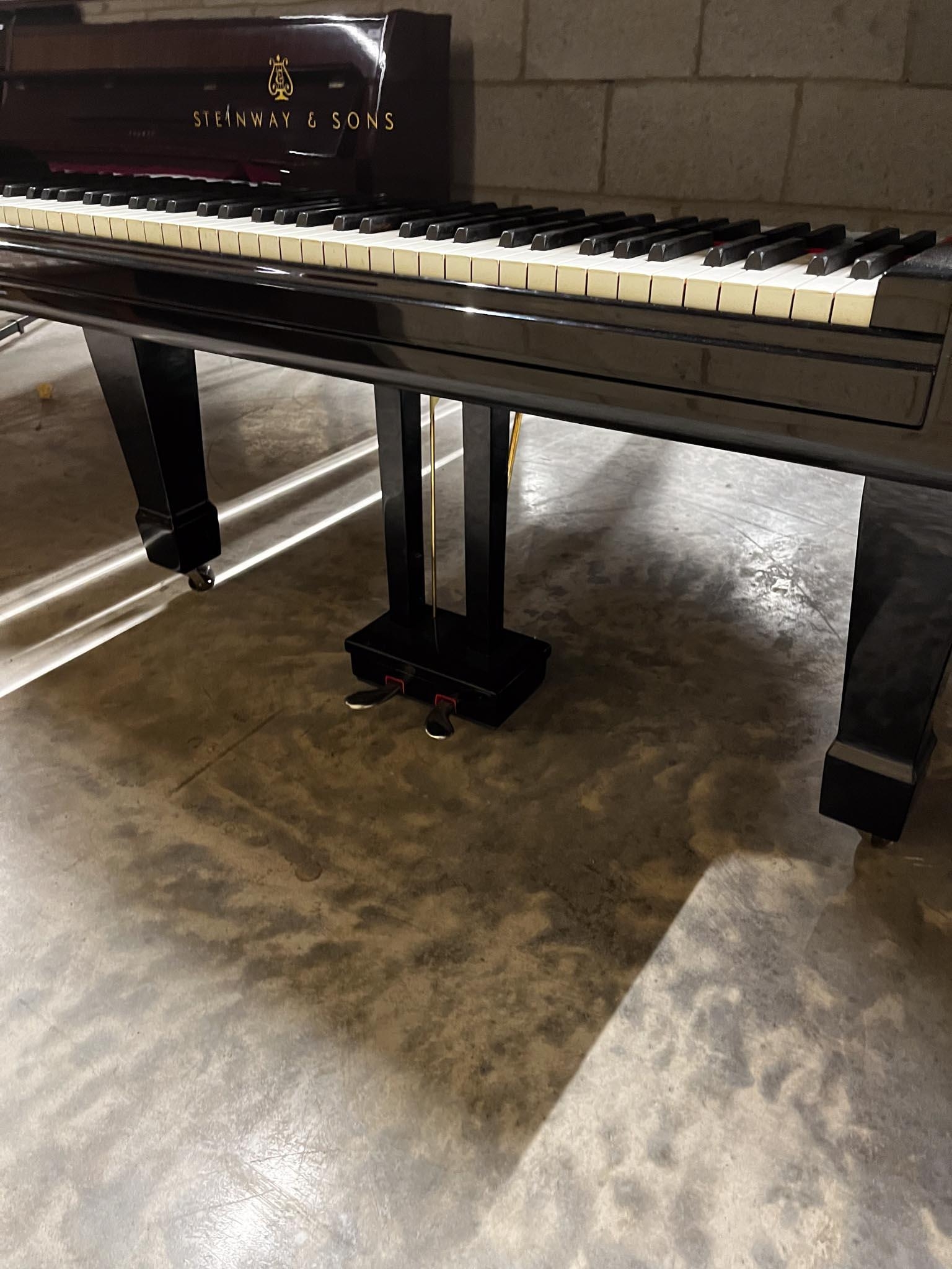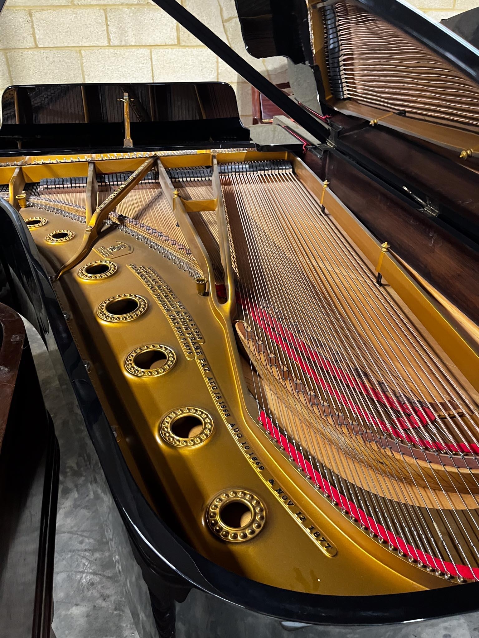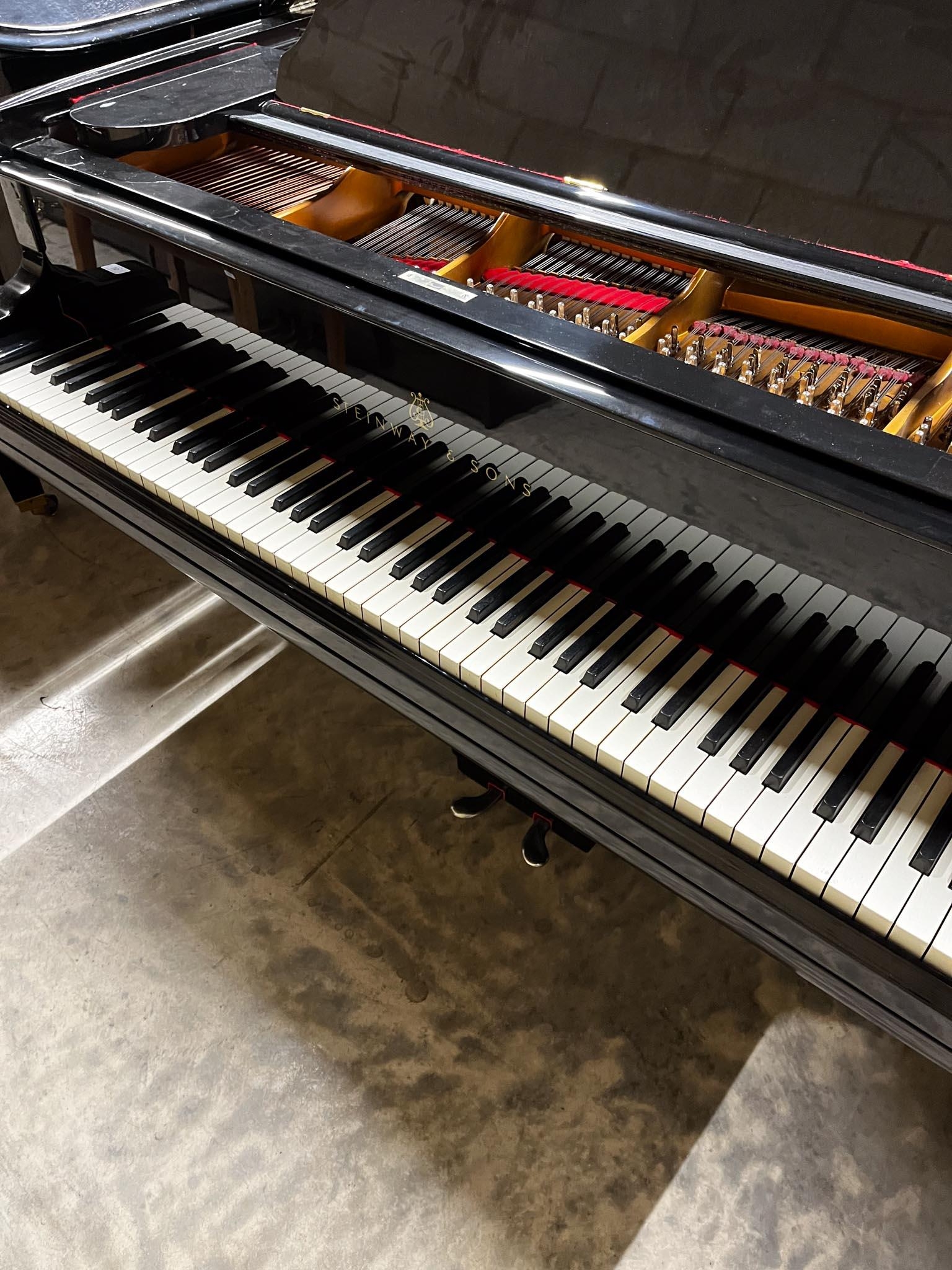 A 7ft 2in early Model C grand piano in a bright ebonised case on later square tapered legs. This instrument has been fully restored. IRN: HAYCS3BW