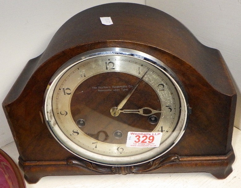 Royal Doulton 'Pansy - Mottled Ground' pedestal bowl together with a Westminster Chime 8day mantle clock (2)