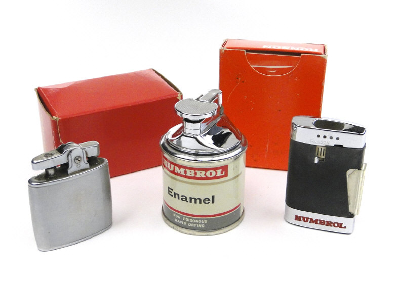 Boxed Humbrol advertising lighter, boxed Ronson Comet lighter and Ronson Standard lighter