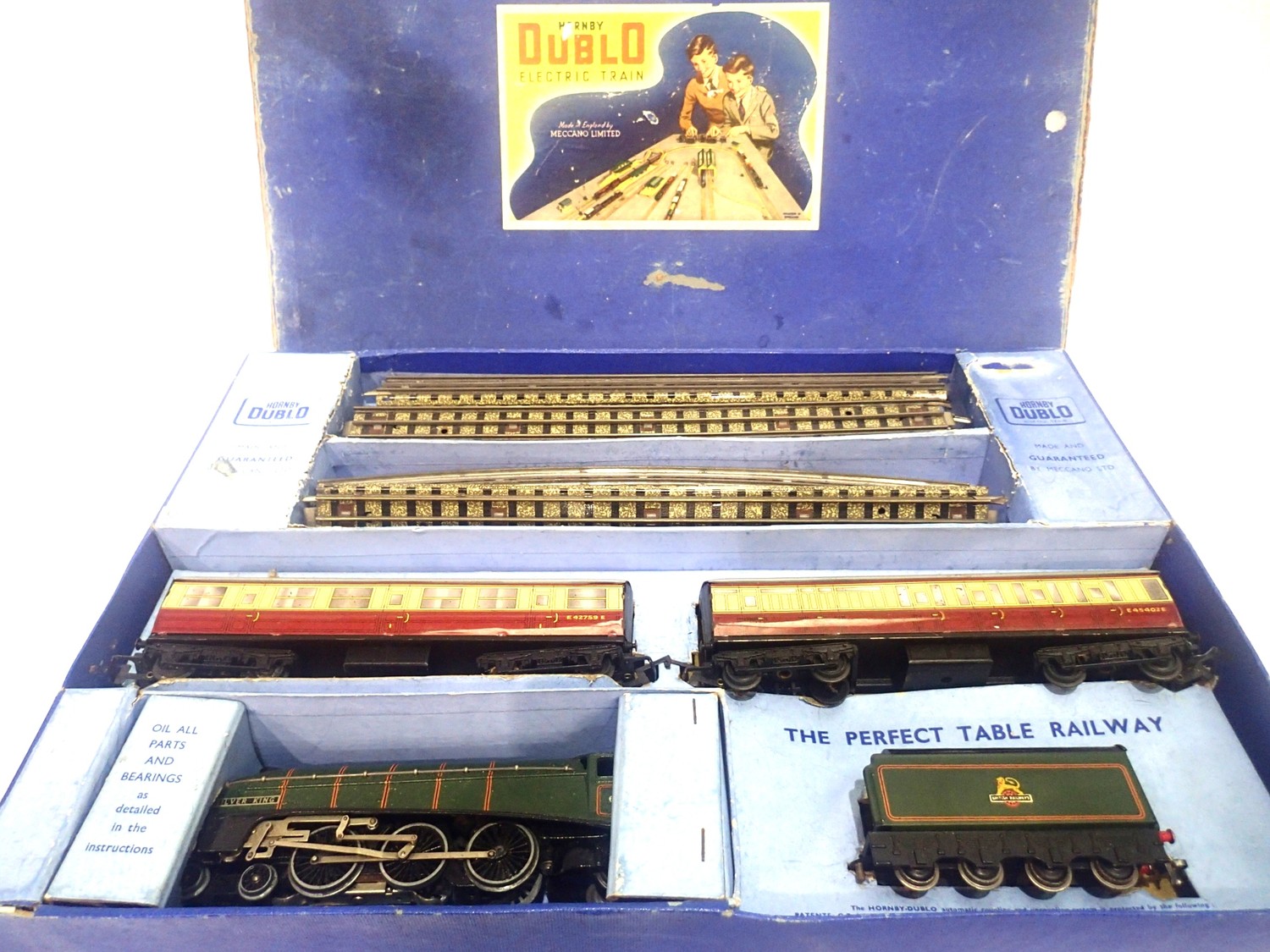Hornby Dublo 3-Rail EDP11 'Silver King' Passenger Train Set Contents Remain Unchecked, Box Lid is poor with Tape Repairs on Corners - P&P Group 2 (£18+VAT for the first lot and £3+VAT for subsequent lots)