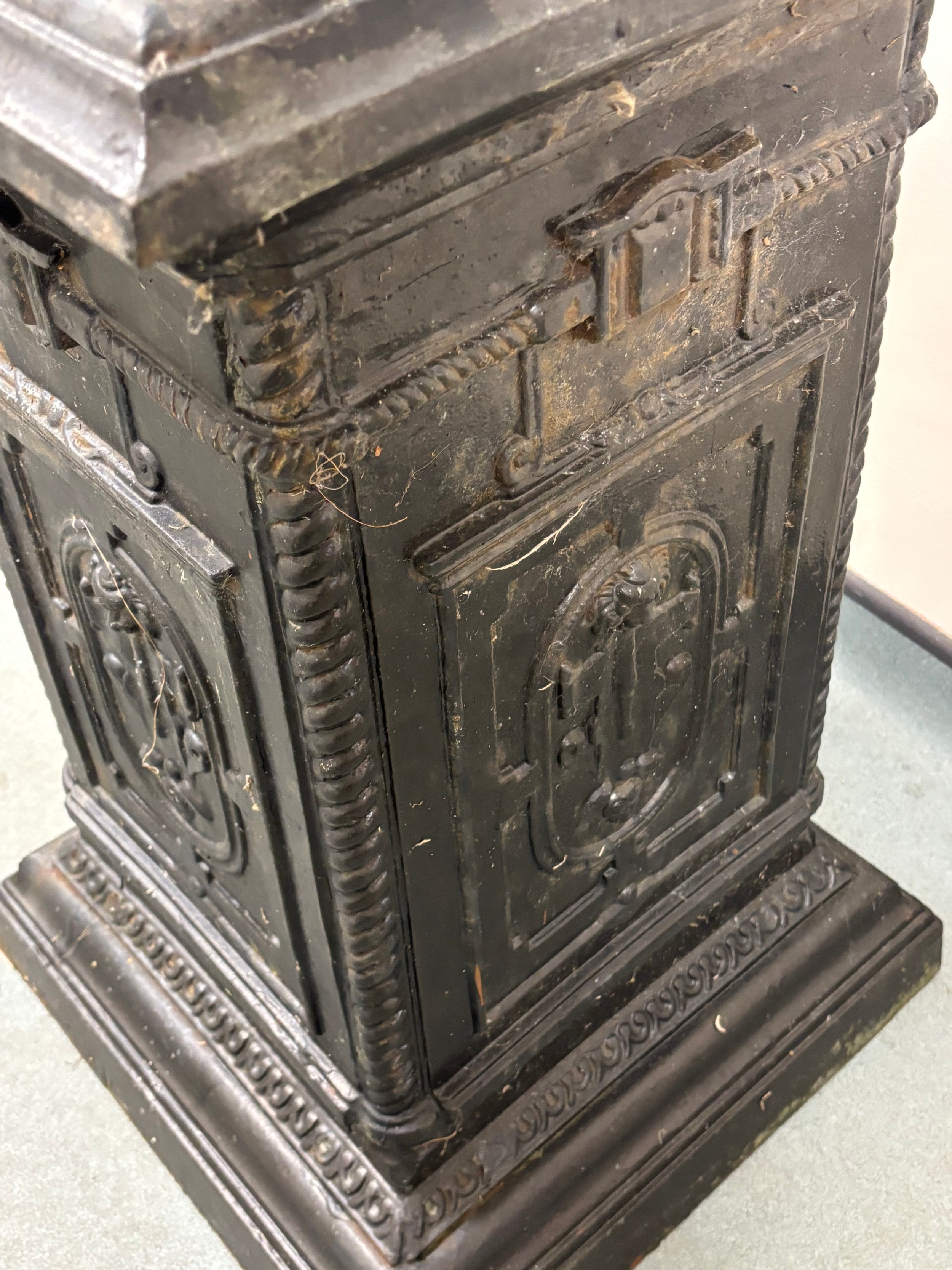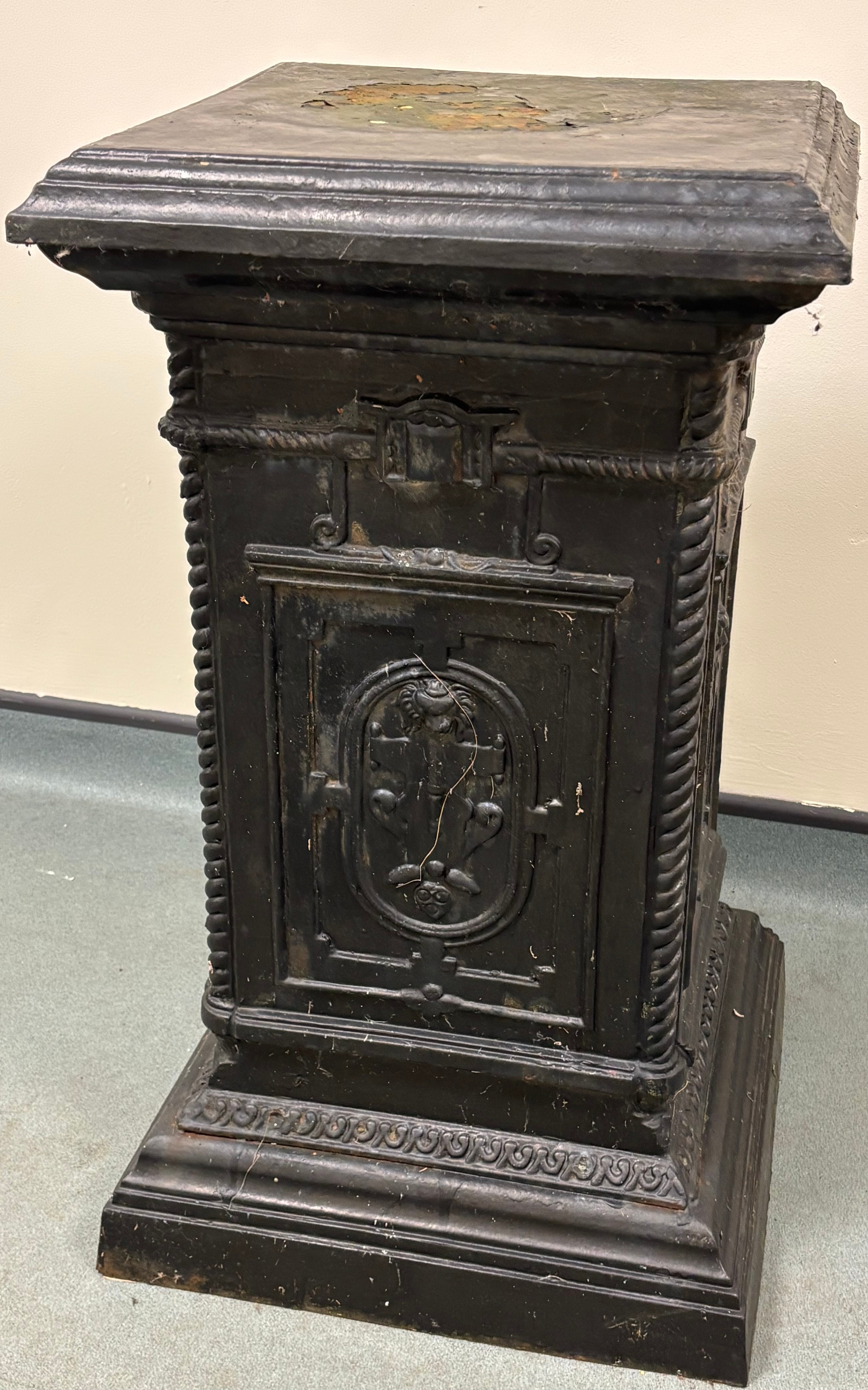 19th Century Victorian Cast Iron Garden Pedestal. 83x46x46cm.