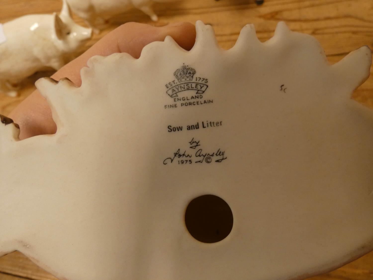 Two Beswick models of pigs, a small Doulton pig and two Aynsley pigs