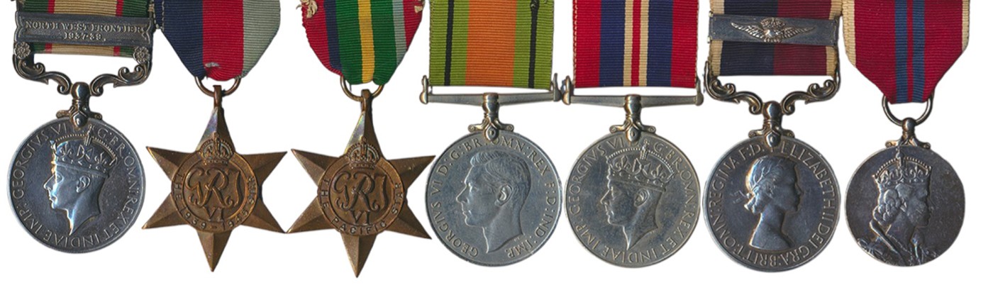 Medal range with IGSM with North West Frontier 1937-39 clasp to 568115 A.C.I. R W McGill. R.A.F., WWII 1939-45, Africa Stars, Defence Medal, War Medal, RAF LSGC Medal with second award bar to 568115 Act. F. Sgt. R.W. McGill. R.A.F., QEII silver Jubilee Medal, plus miniatures swing mounted as worn, WWI BWM to S-5439 Pte. R.W. Mc Gill. R. Highrs. and range of postcards, cigarette cards etc. mixed condition. (½B)