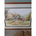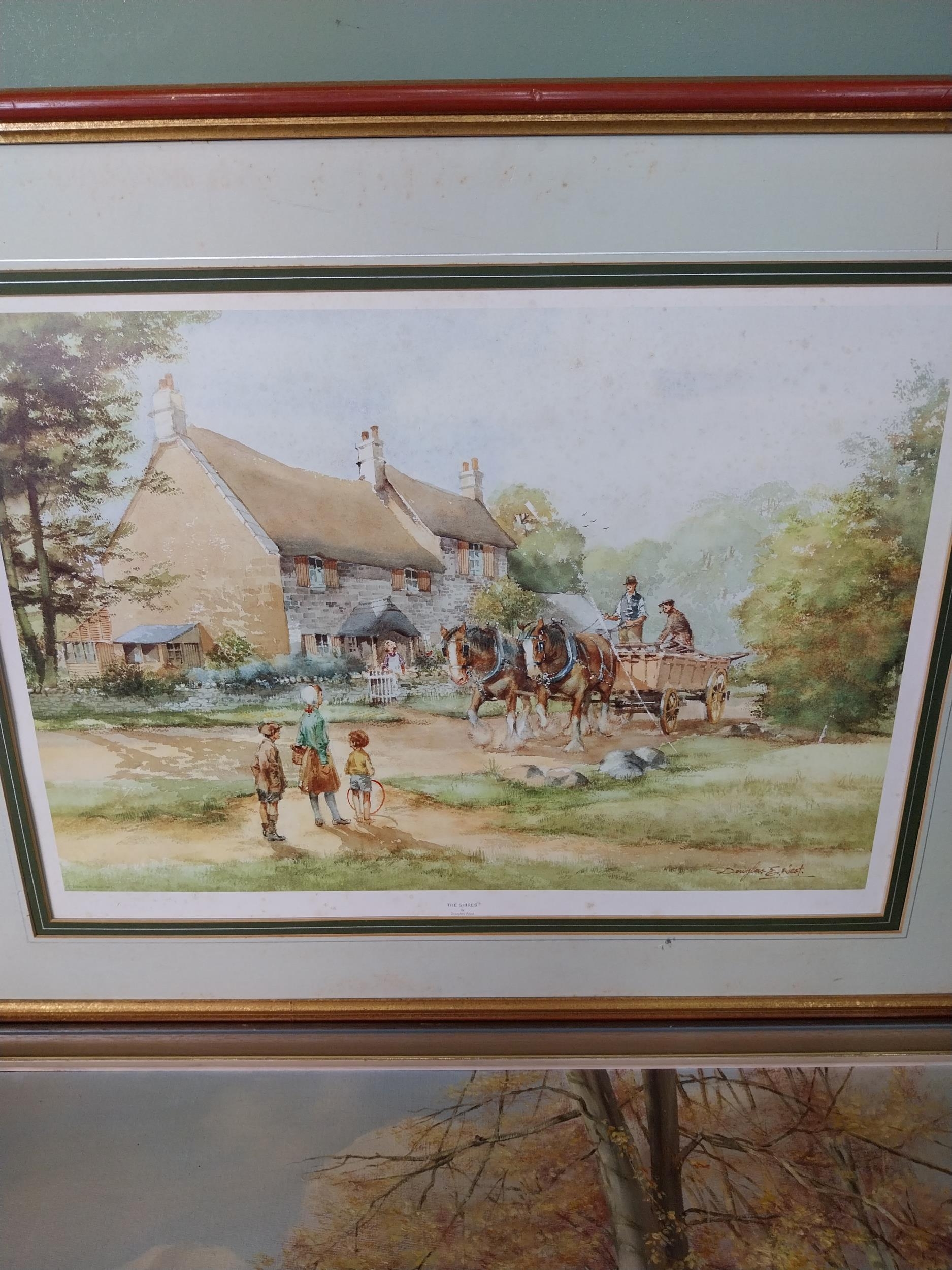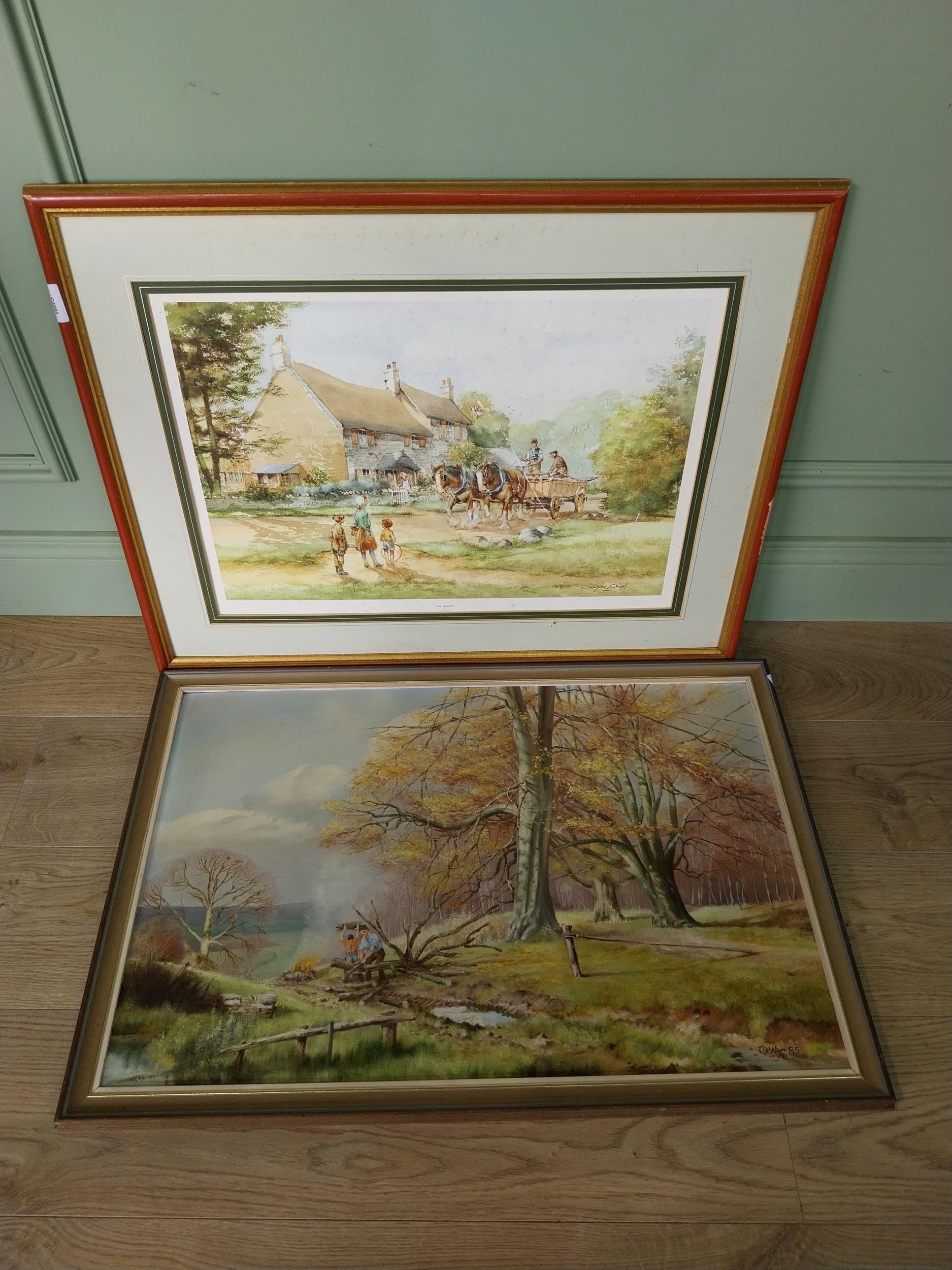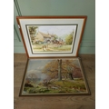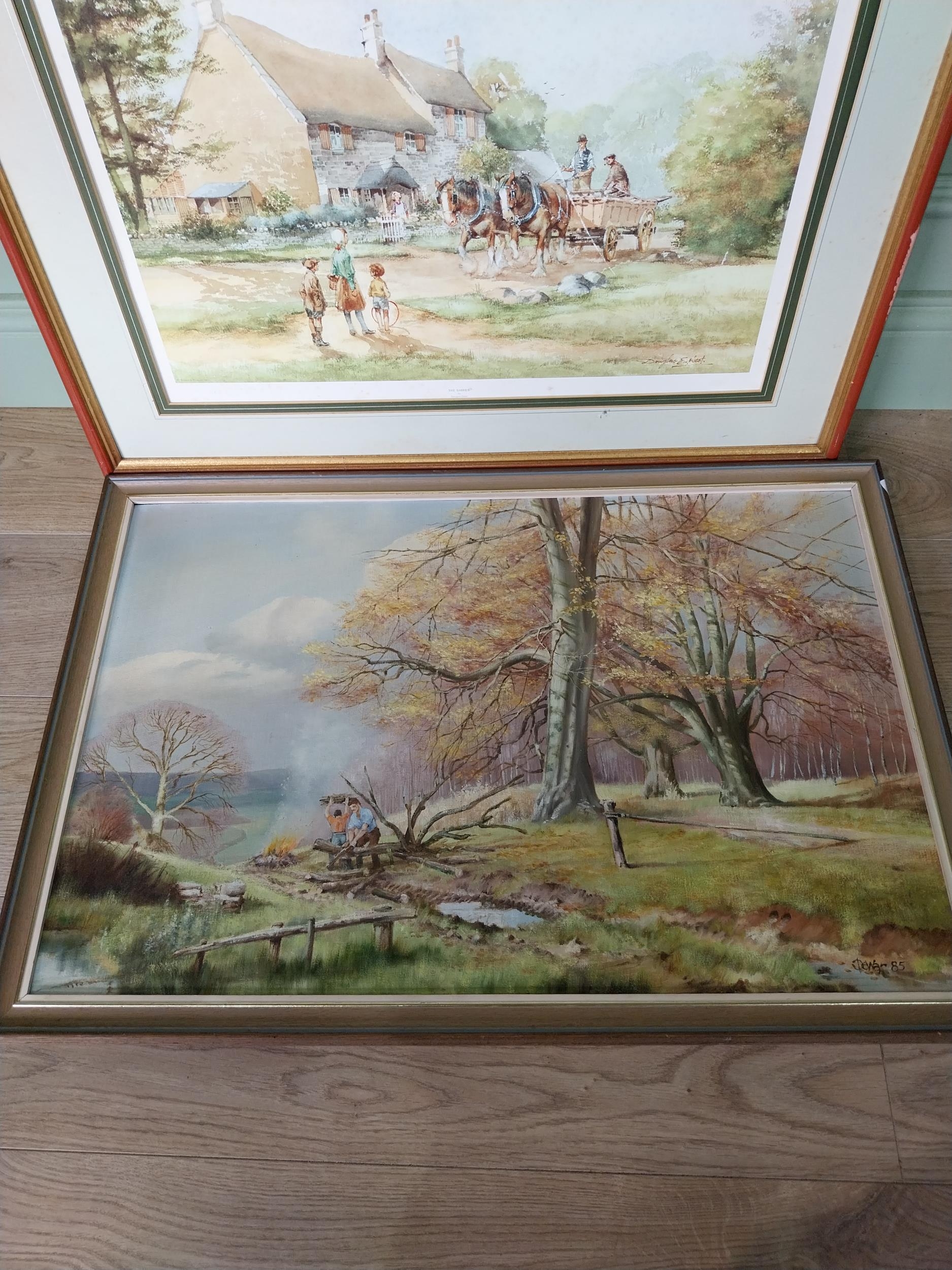 Framed coloured print The Shires {61 cm H x 78 cm W} and oil on canvas Woodland Scene {55 cm H x 80 cm W}.
