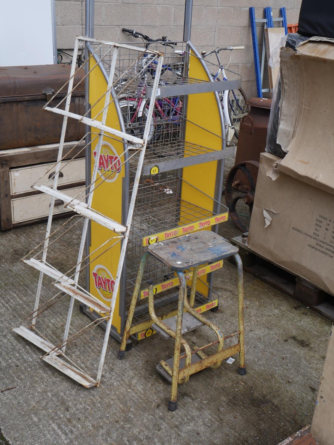 SHOP DISPLAY SHELVES AND STOOL