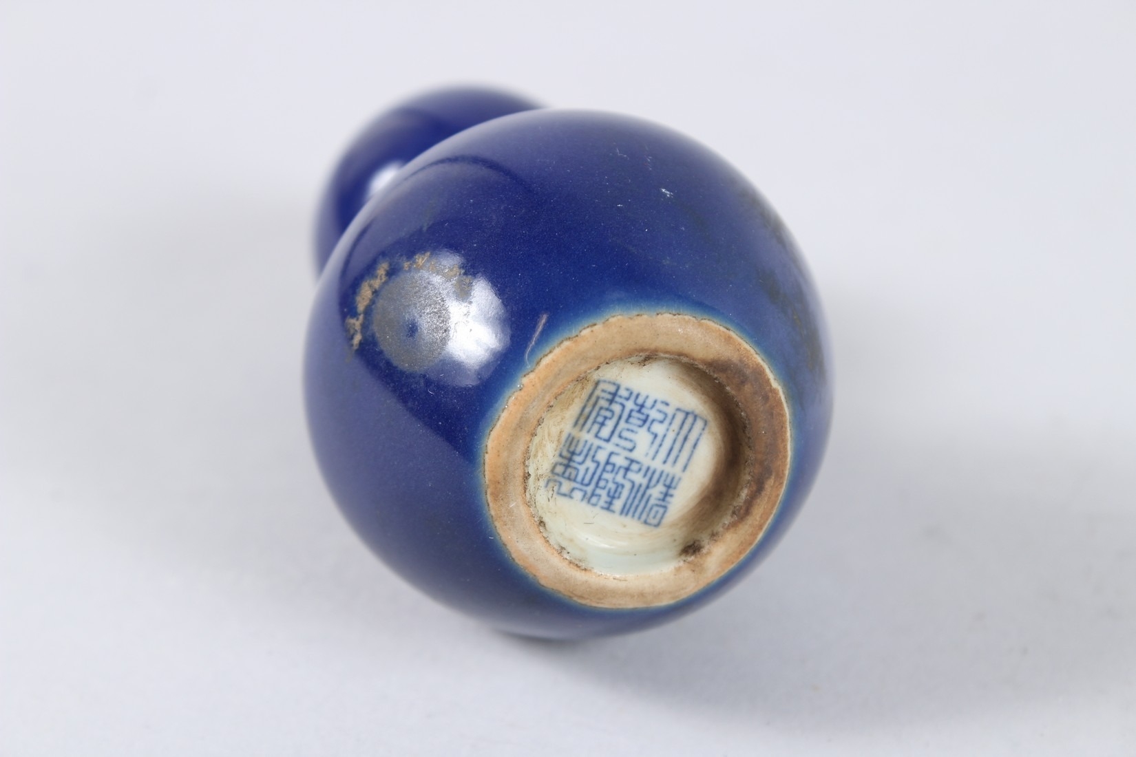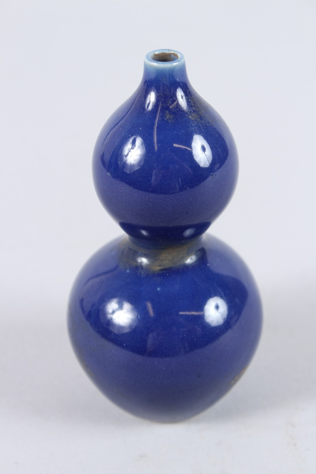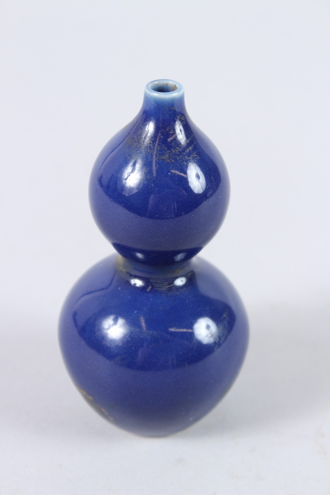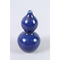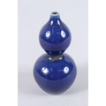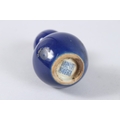 A CHINESE PORCELAIN BLUE GROUND MINIATURE GOURD SHAPE VASE. 11cms high.