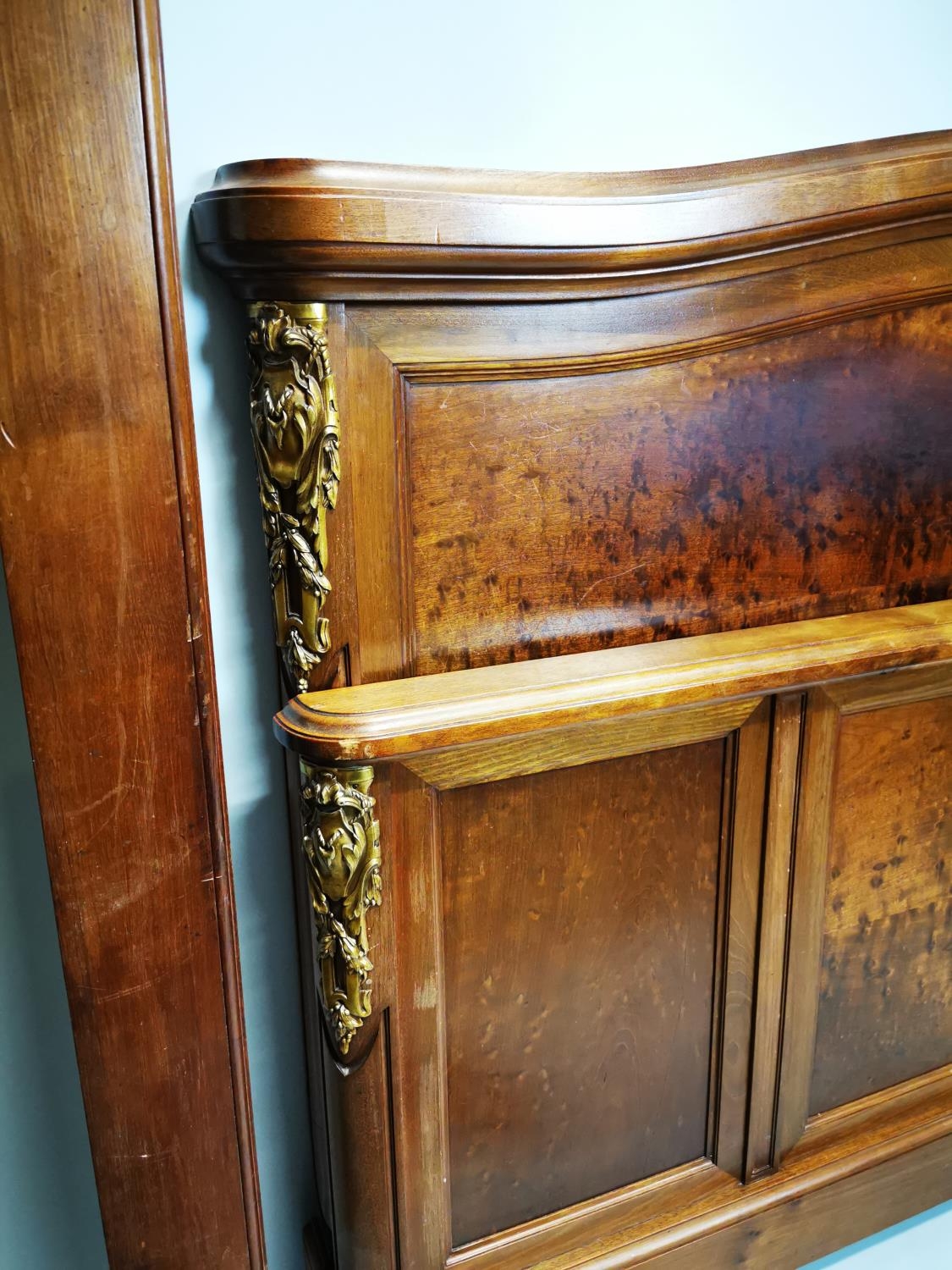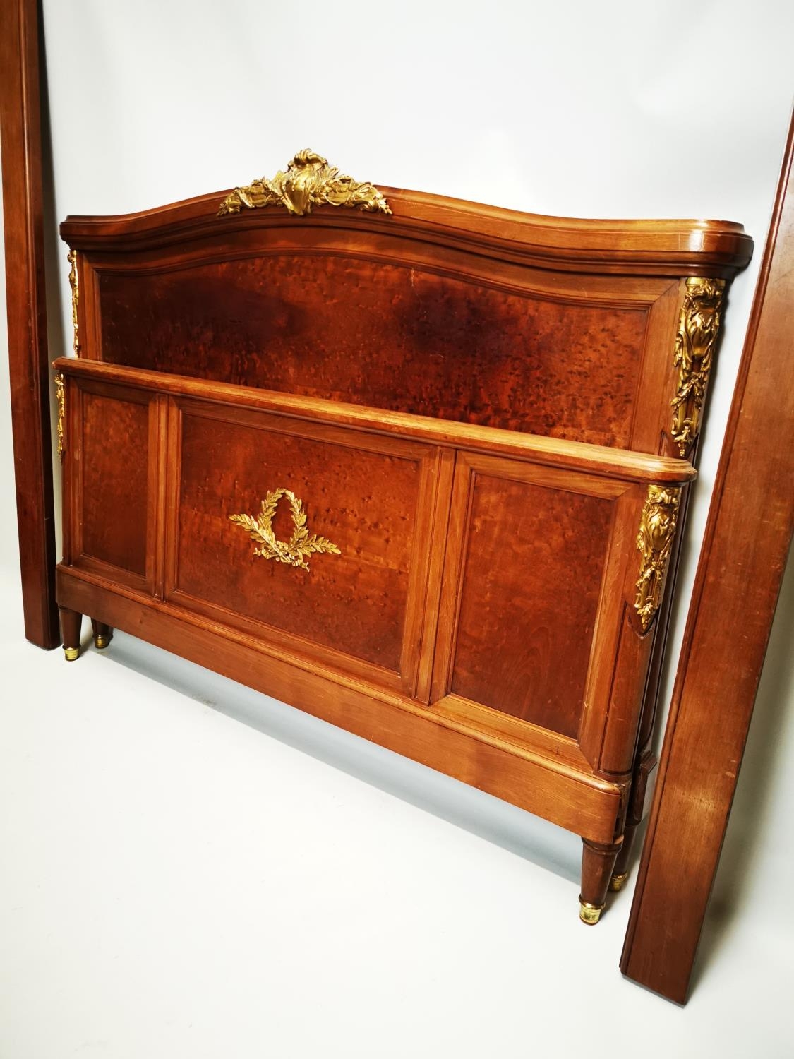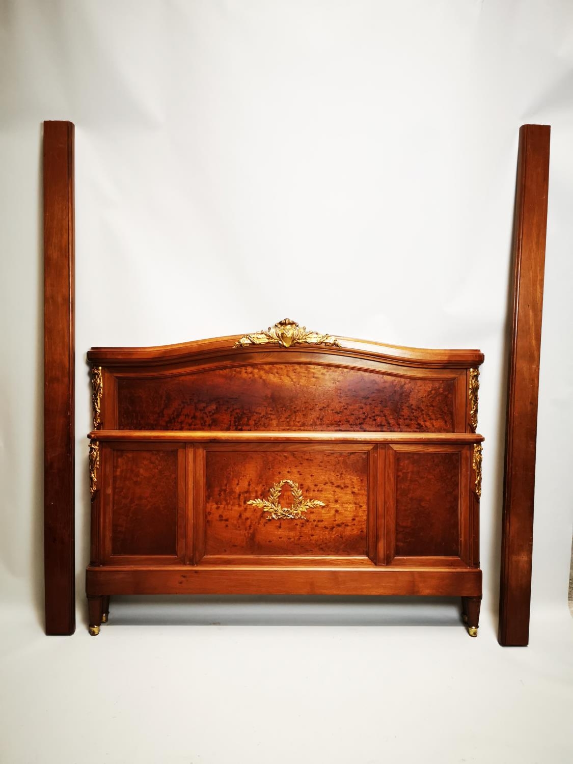 Exceptional quality 19th. C. French mahogany bed decorated with gilded mounts raised on four turned legs. {129cm H X 166cm W }.