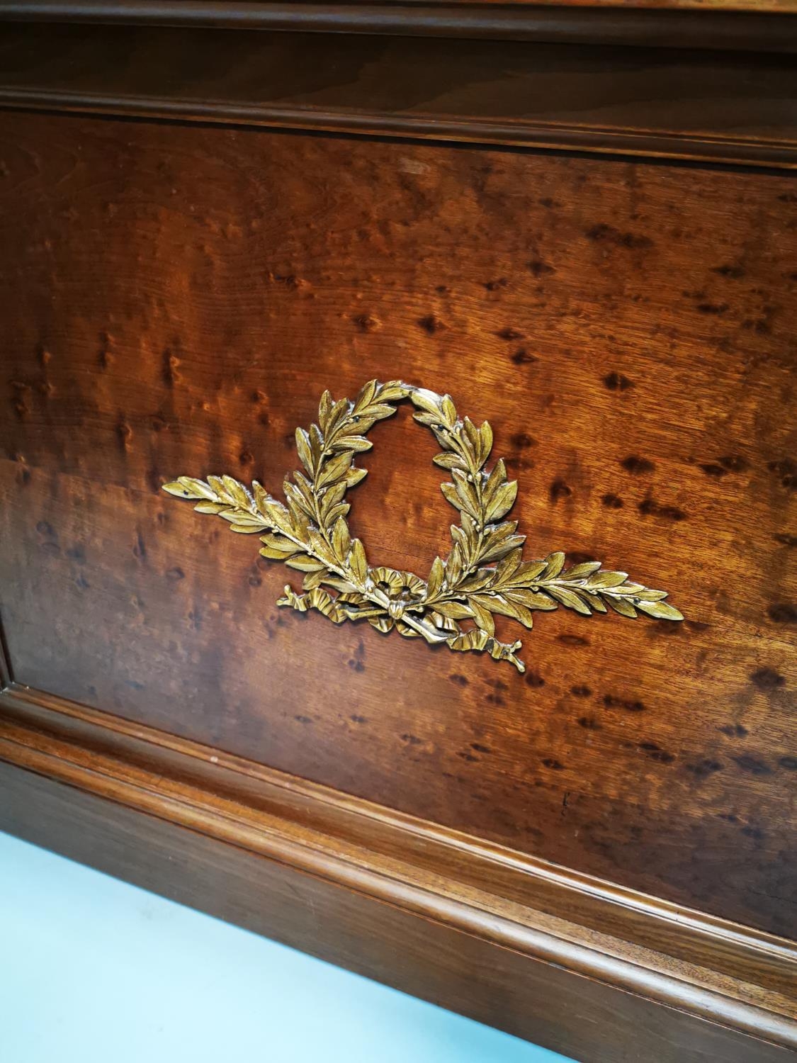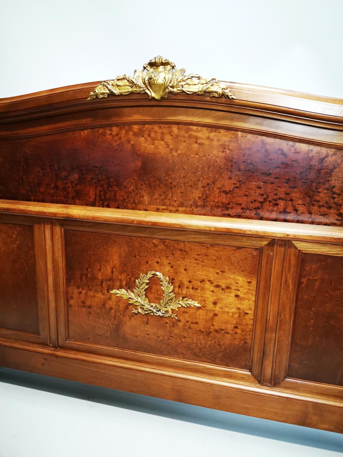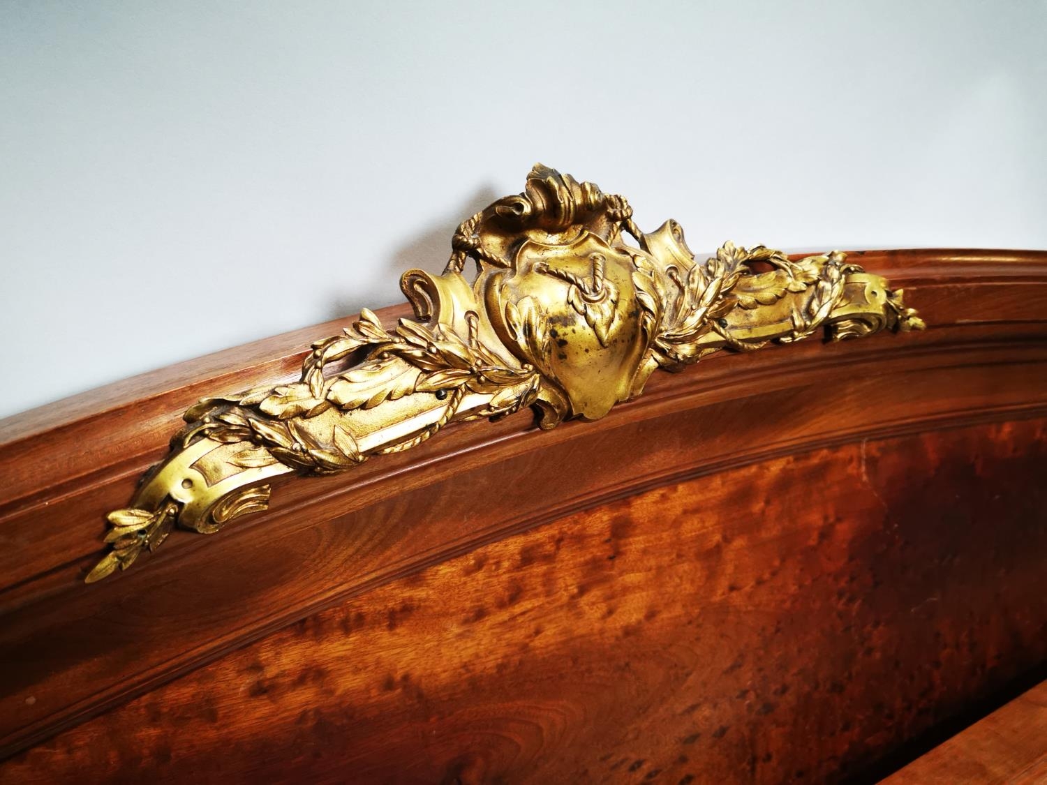 Exceptional quality 19th. C. French mahogany bed decorated with gilded mounts raised on four turned legs. {129cm H X 166cm W }.