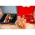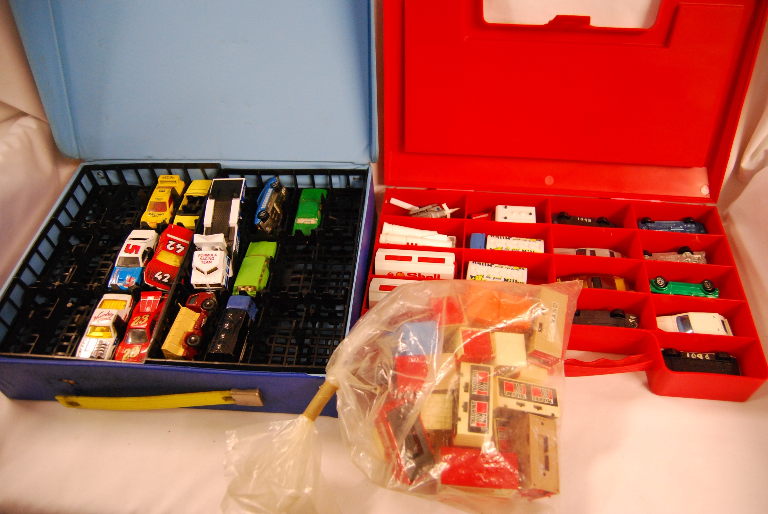 MATCHBOX CARRY CASE CONTAINING 12 VEHICLES, ETC AND 3 X MATCHBOX CARRY CASE CONTAINING 12 VEHICLES AND PACK OF CONTAINERS