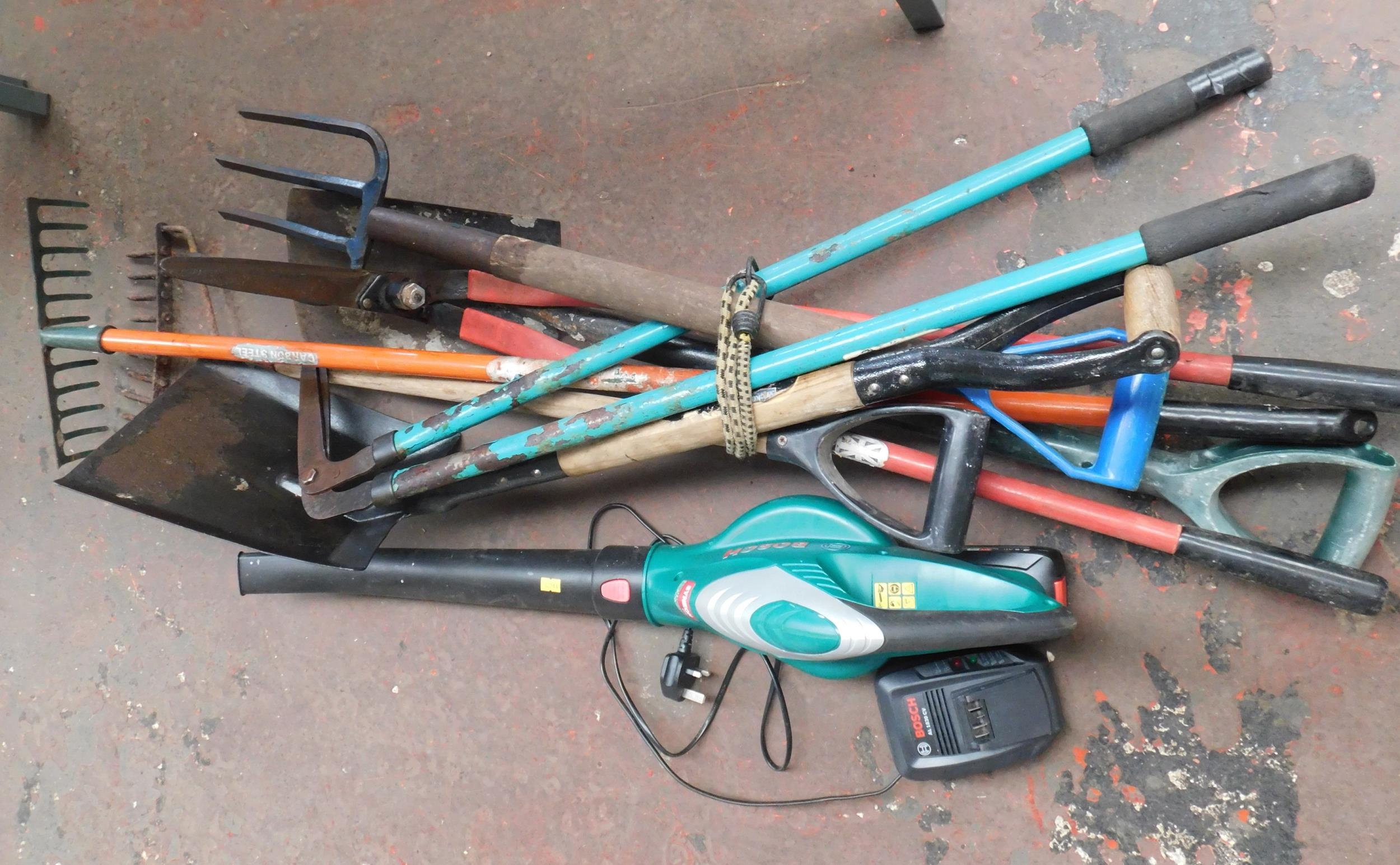 Joblot of garden tools - incl. battery operated blower W/O etc.