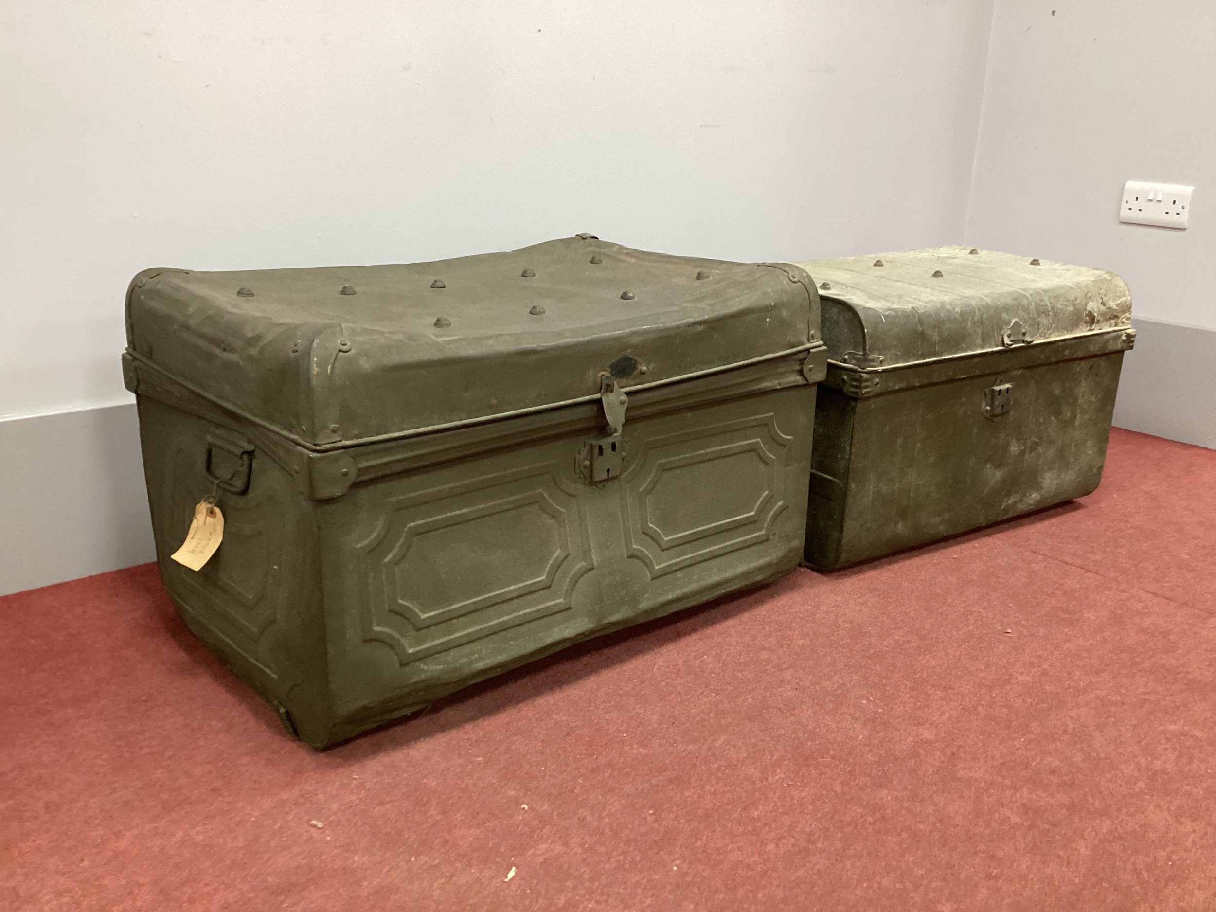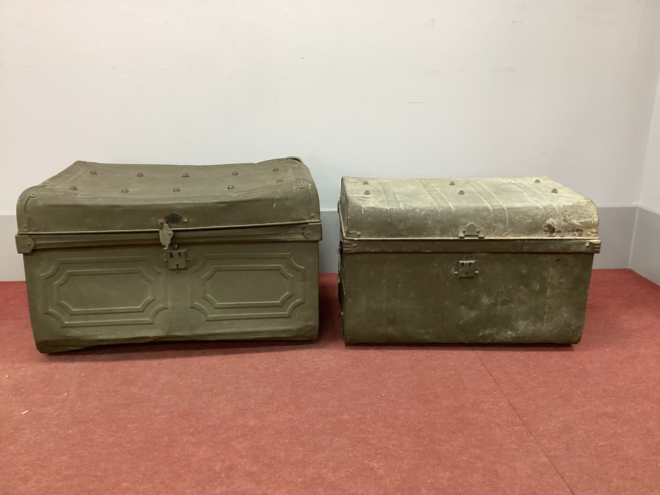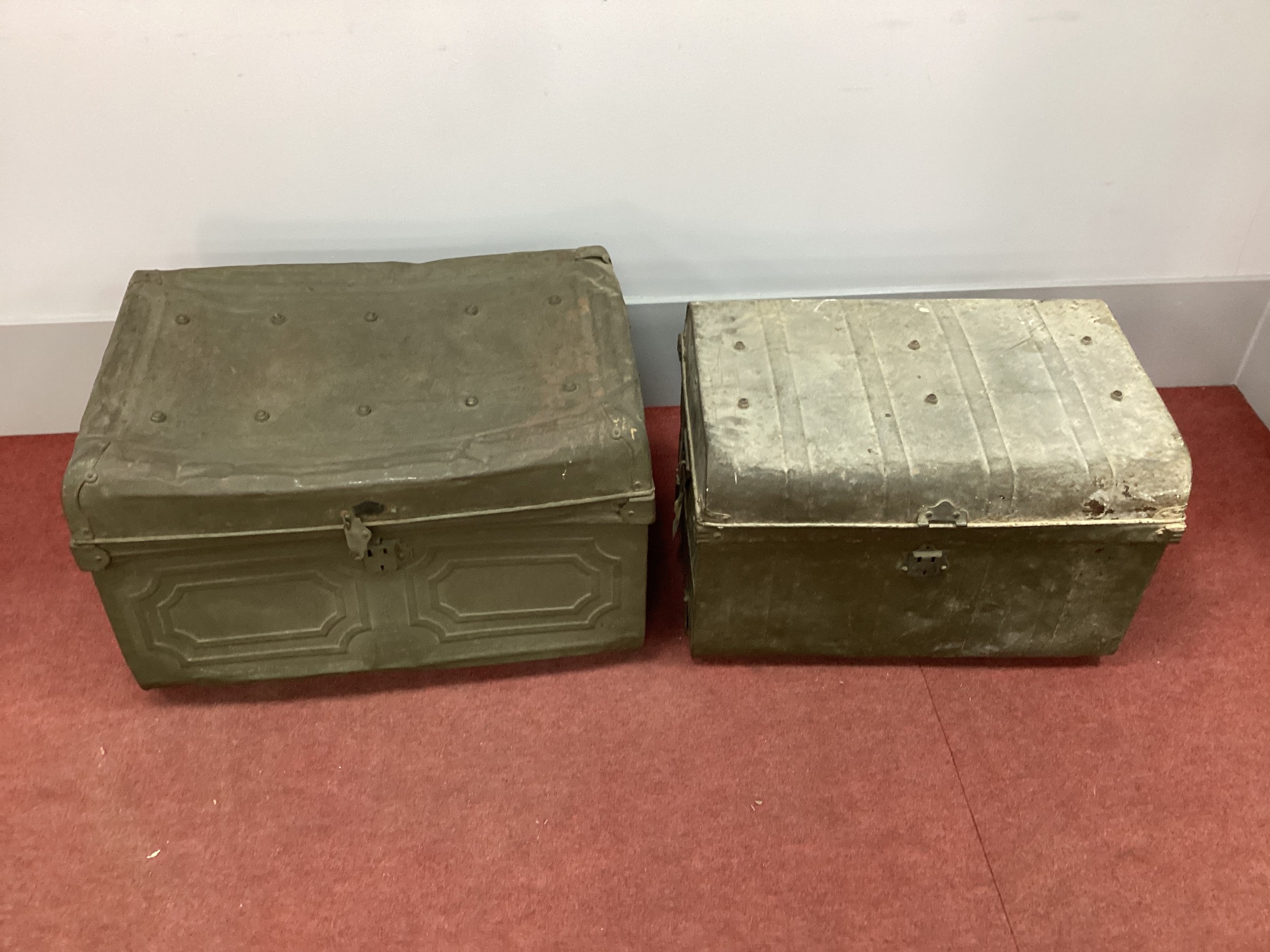 Two XIX Century Green Painted Tin Trunks. (2)