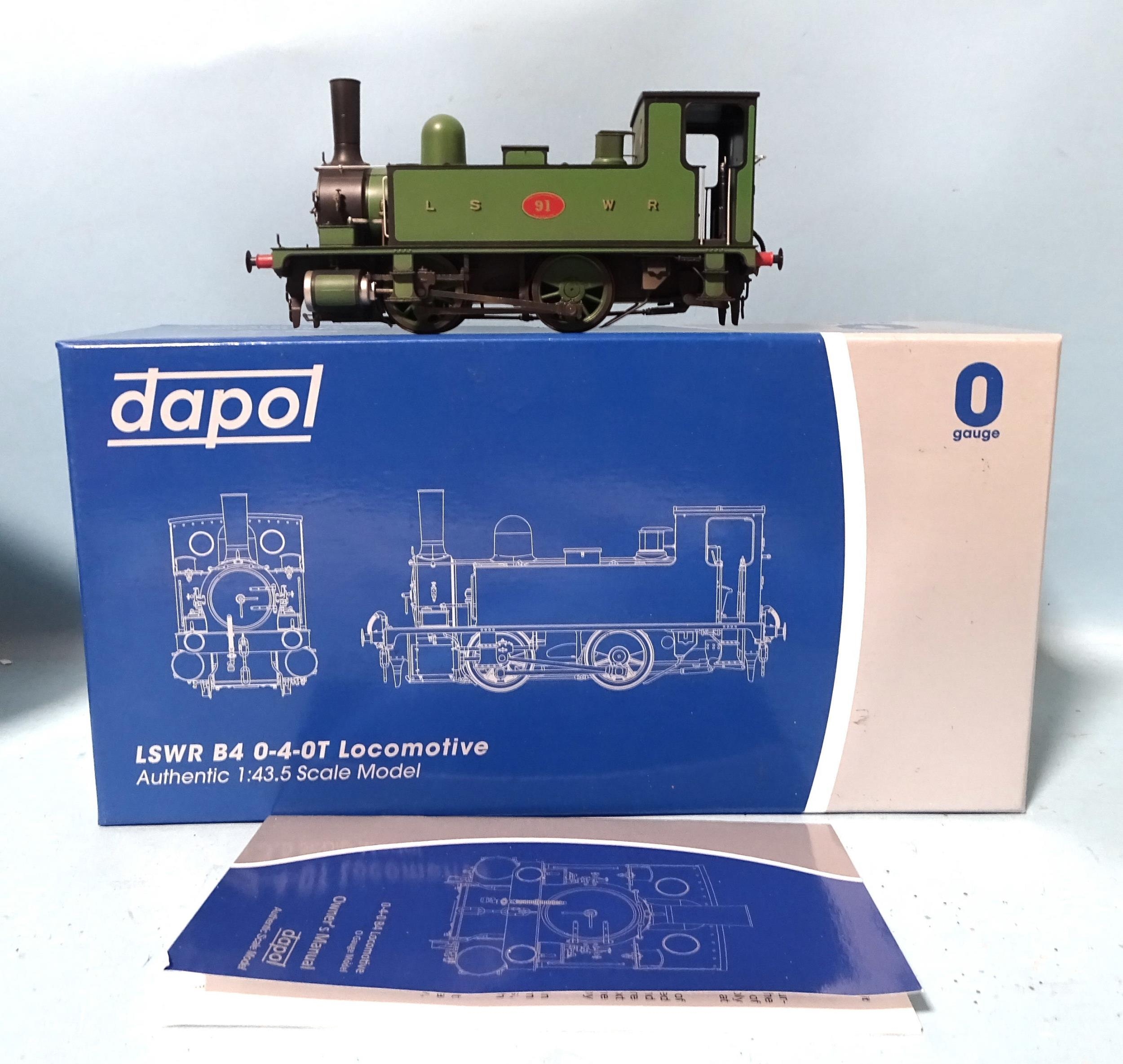 Dapol, O gauge, 7S-018-066 LSWR Class B4 0-4-0T locomotive RN91, with Perspex stand, (boxed).