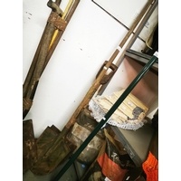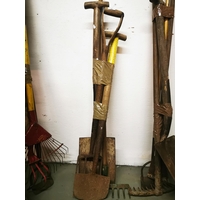 Vintage metal garden tool bundle; shovel, rake , hoe