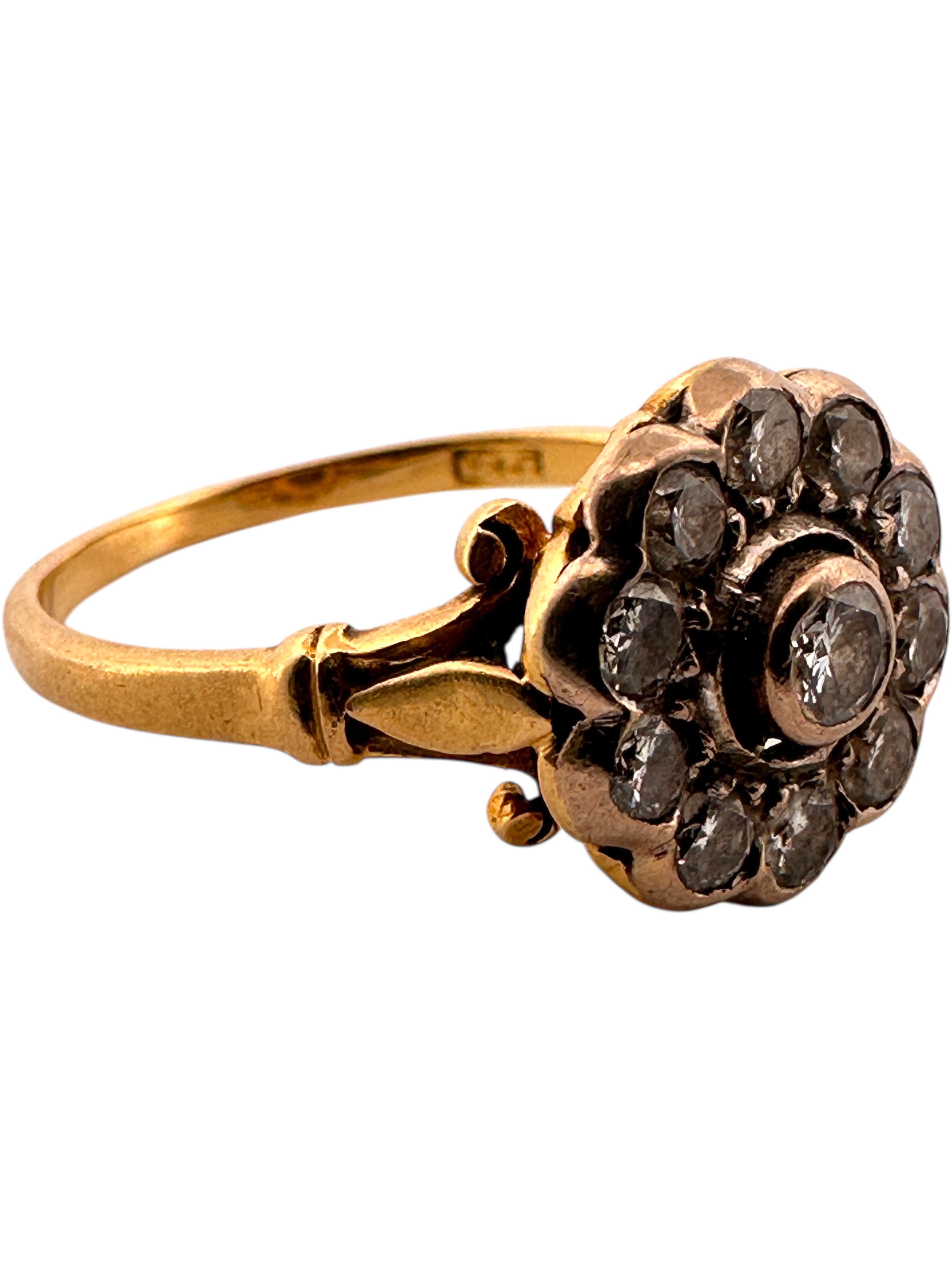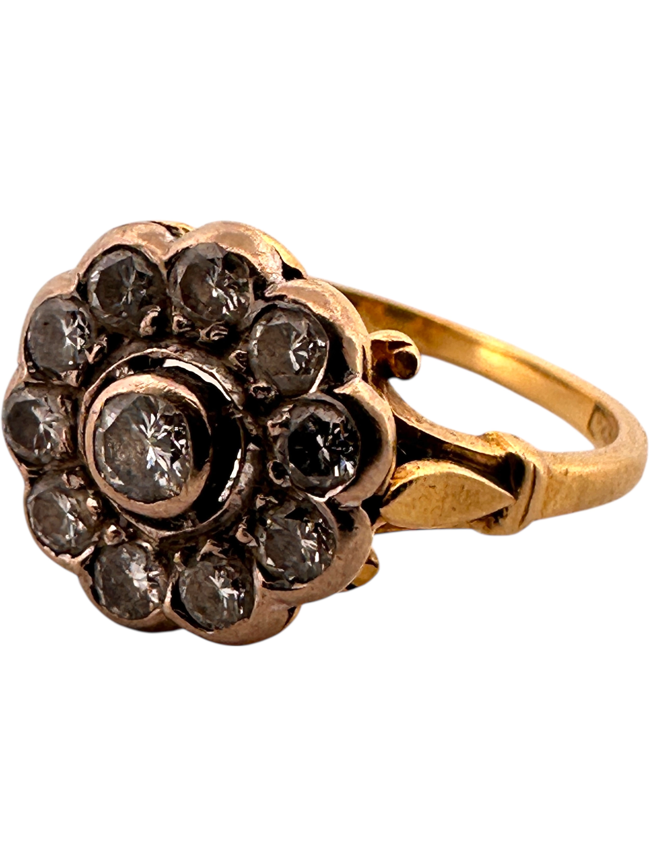 Eighteen Carat Gold and Diamond Cluster Ring set with Eleven Diamonds. Size P. 3.63g