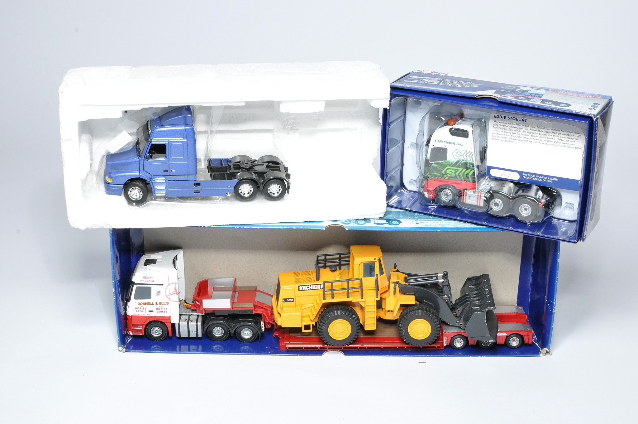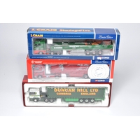 Corgi and others (boxed) 1/50 diecast model truck issues comprising sets in the livery of Ellis, Stobart and one other. Look to be mostly without obvious sign of notable (damage) faults, albeit, not checked for absolute completeness Note part boxes for two in lot.