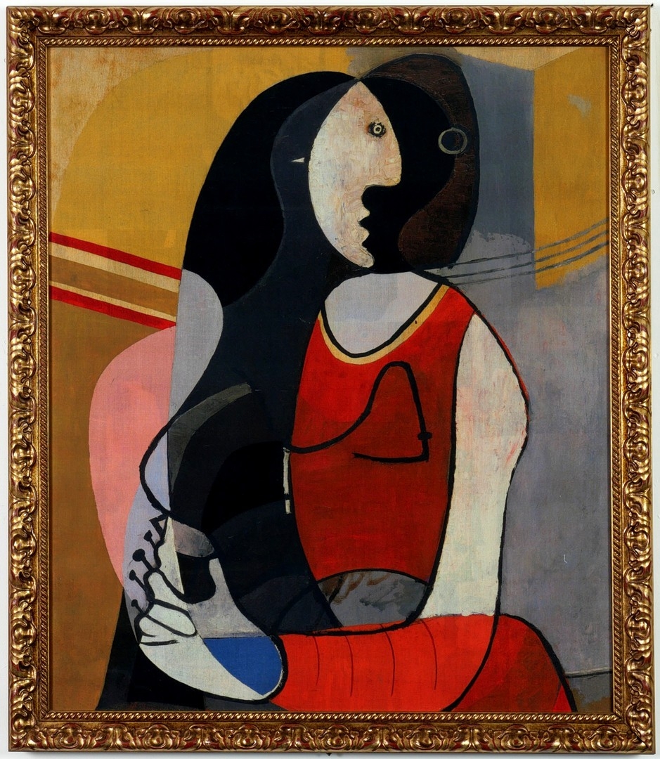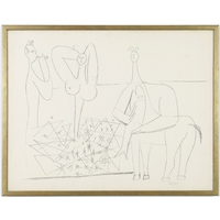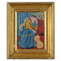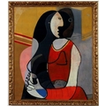 AFTER PABLO PICASSO. SEATED WOMAN ON COTTON. French frame, 89cm x 73cm.