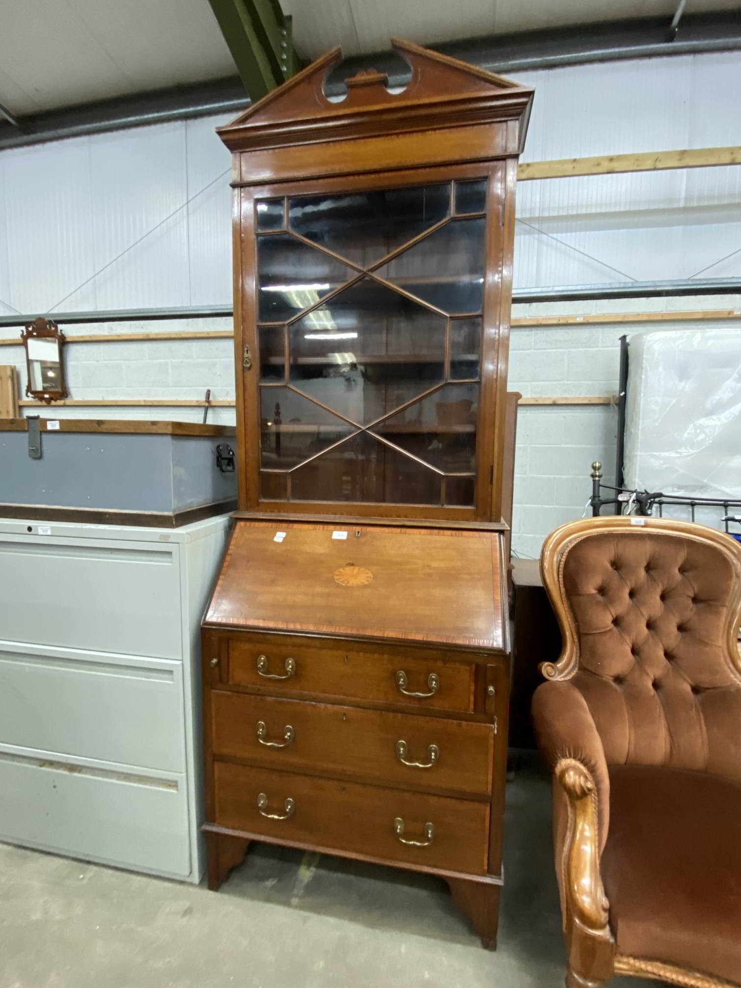 Edwardian mahogany inlaid bureau bookcase 221H 79W 42D
