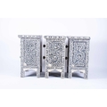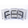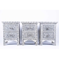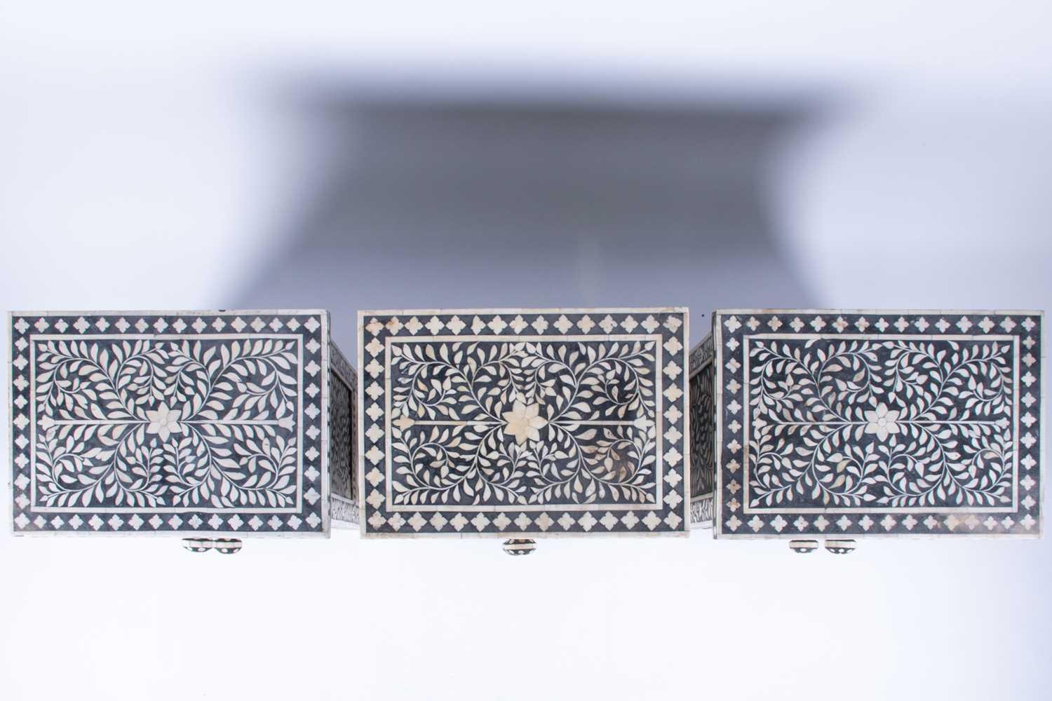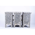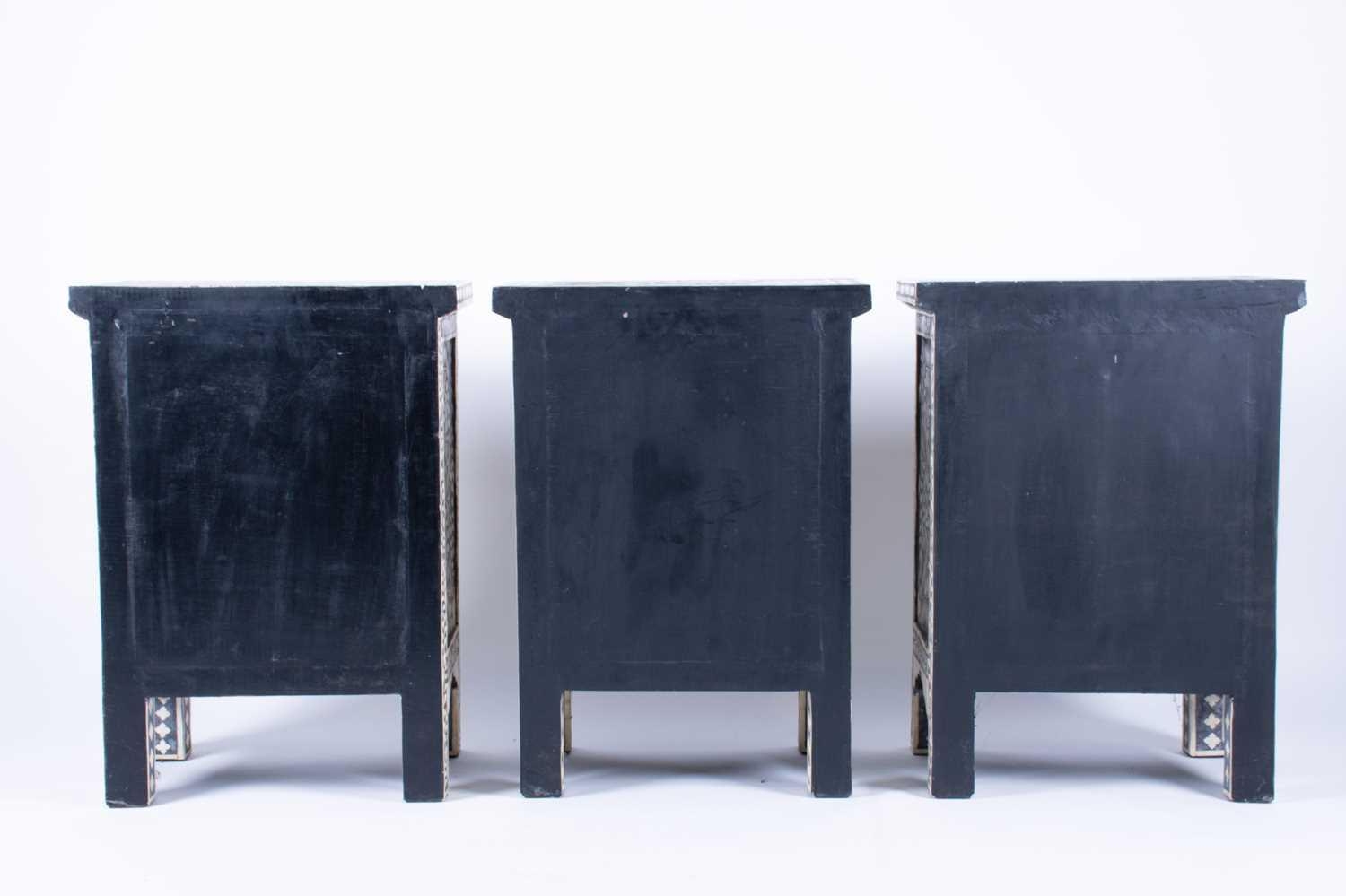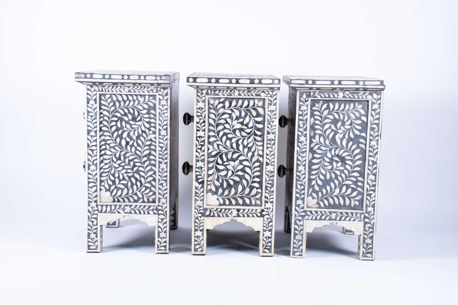 A set of three ebonised and bone inlaid narrow chests each with two drawers, on plain legs. (Dimensions: 61 cm high x 44 cm x 30 cm) (Qty: 3)
