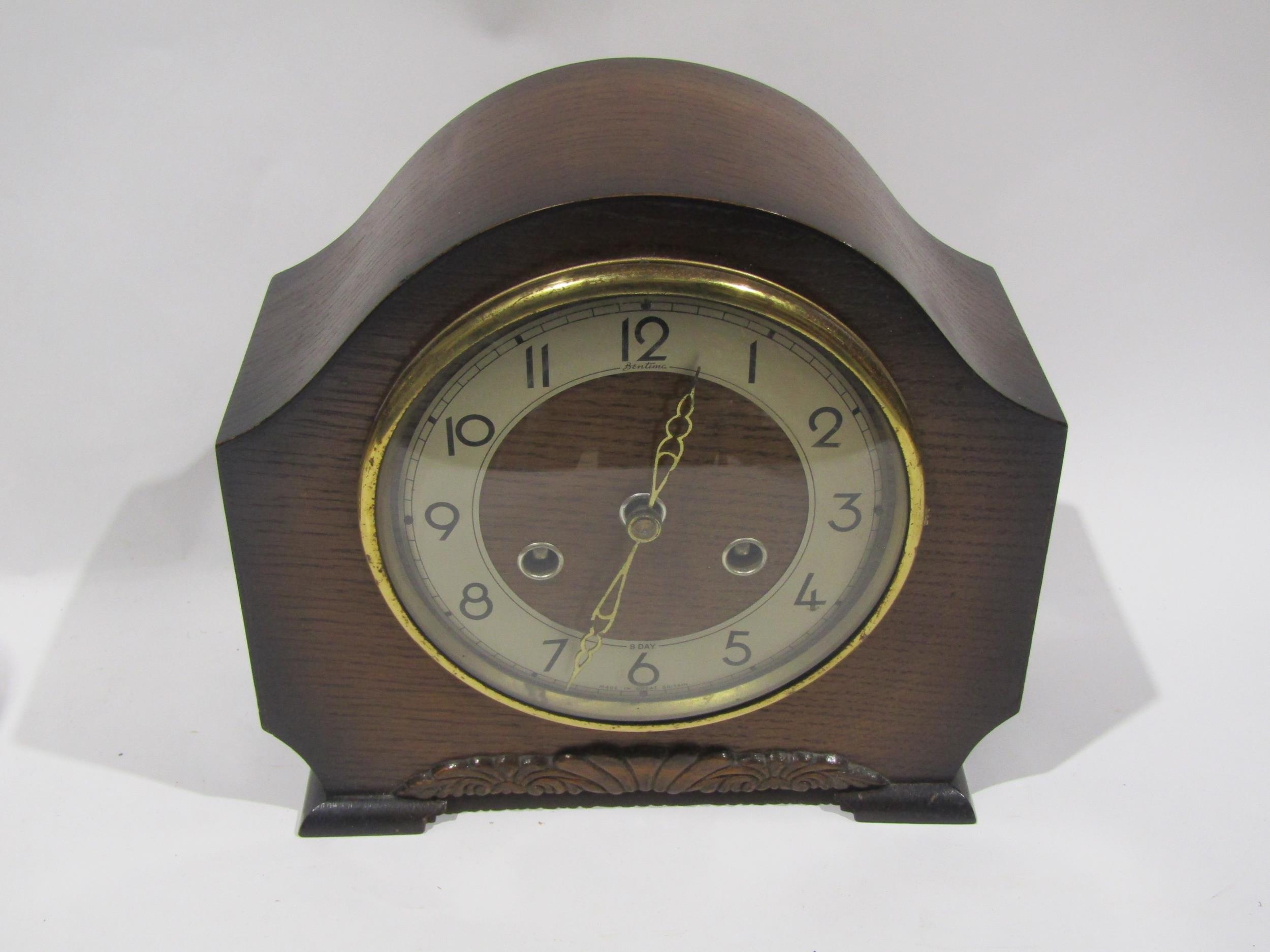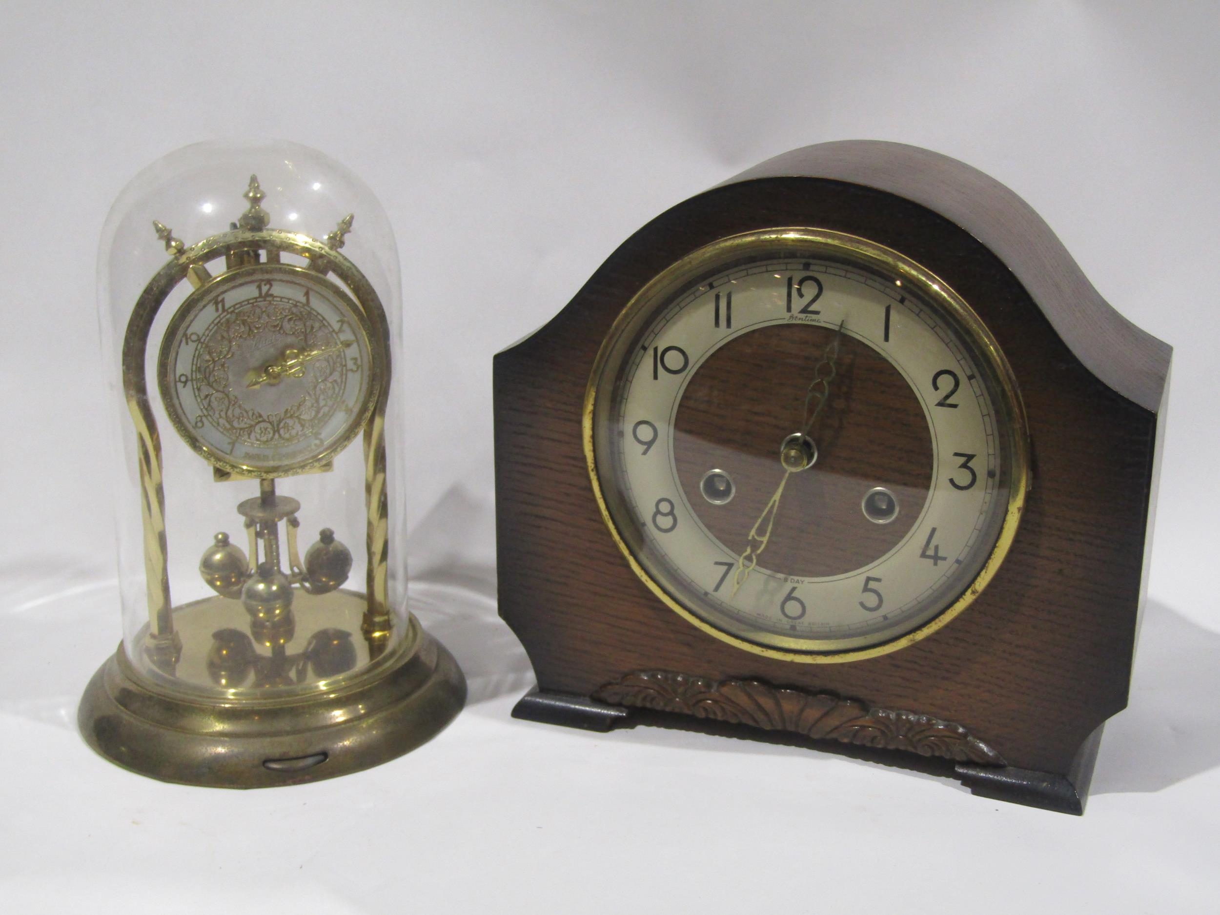 An 8 day Bentina mantel clock and a Schatz glass domed anniversary clock (2)