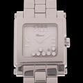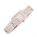 CHOPARD - a lady's stainless steel diamond Happy Sport quartz calendar bracelet watch, ref. 8495, white dial with quarterly Roman numeral hour markers, sword hands, sweep centre seconds hand, date aperture and 7 floating diamonds, 7 jewel movement with calibre 956.112, serial no. 278496, case no. 1347315, case width 30mm